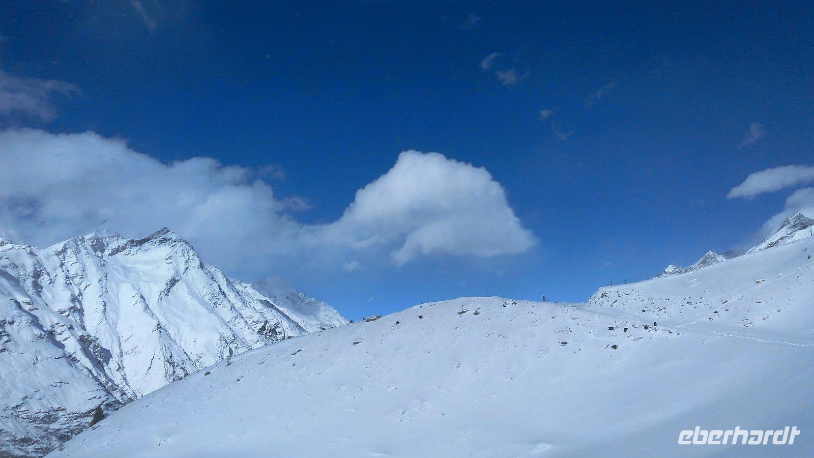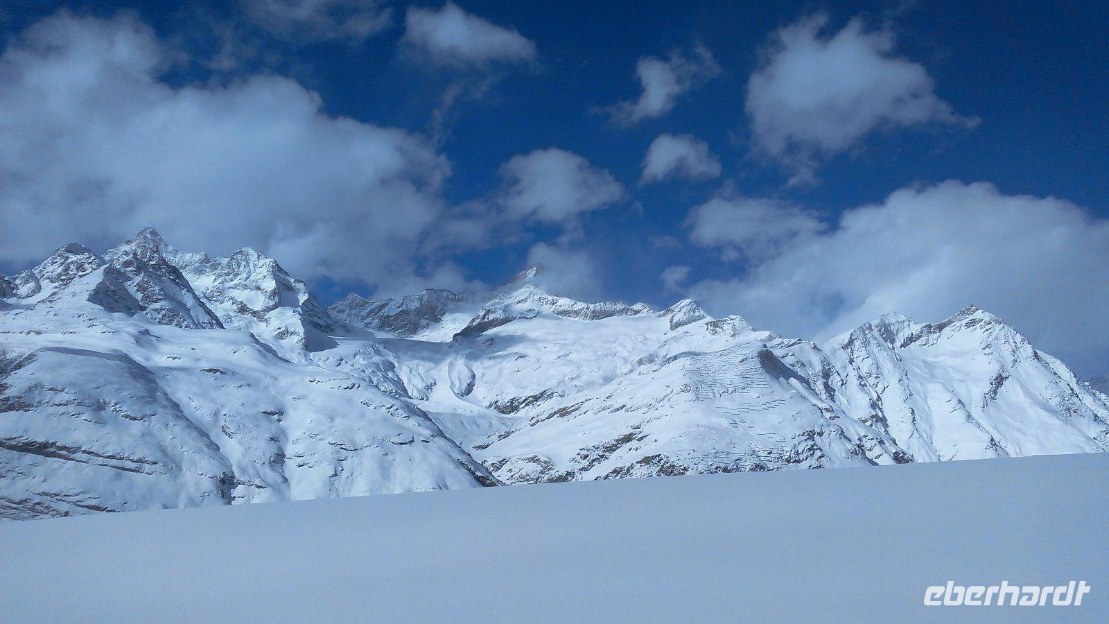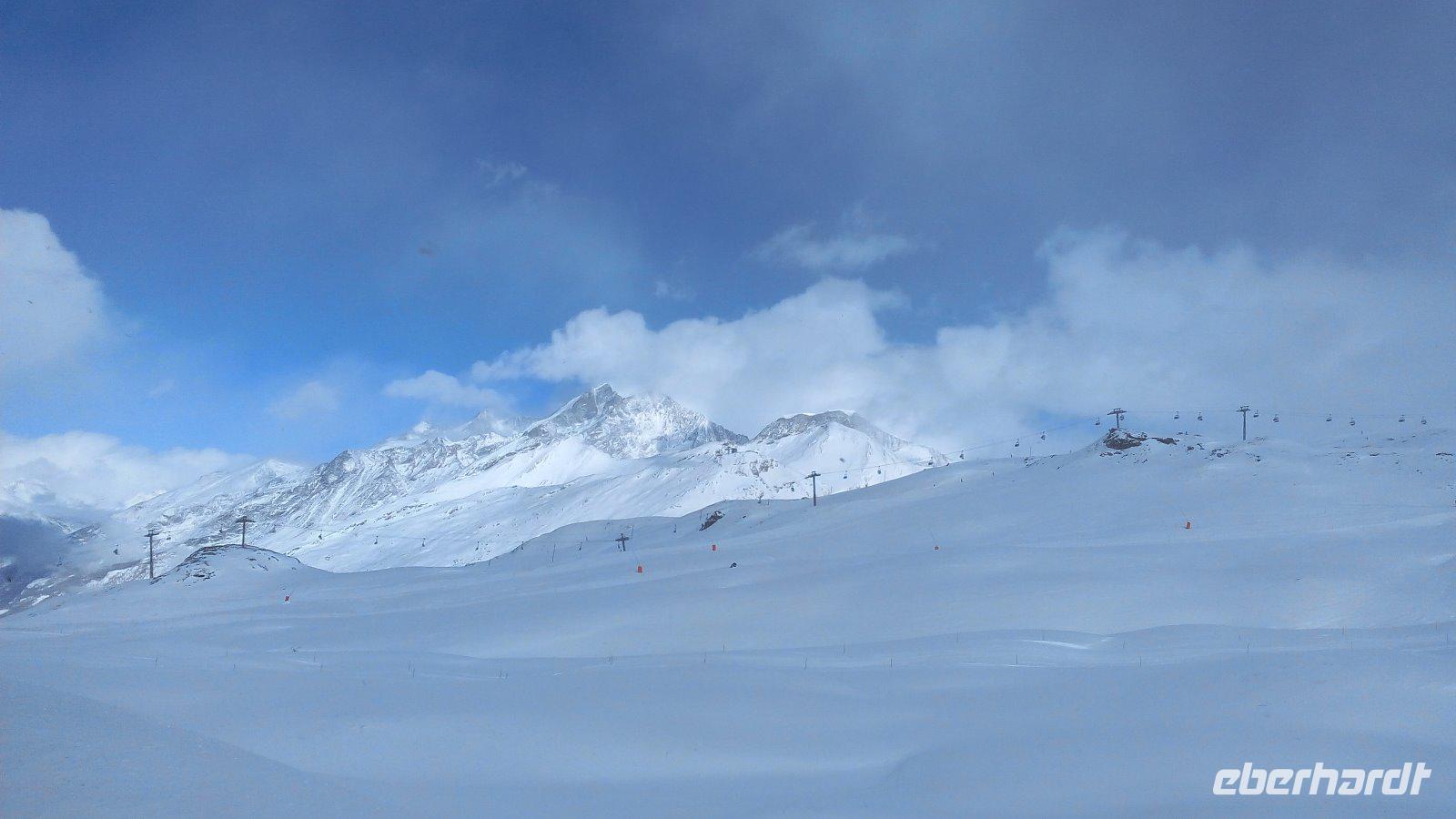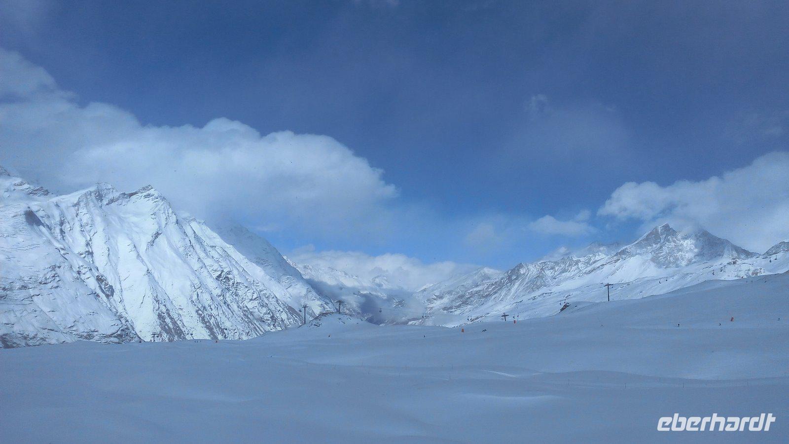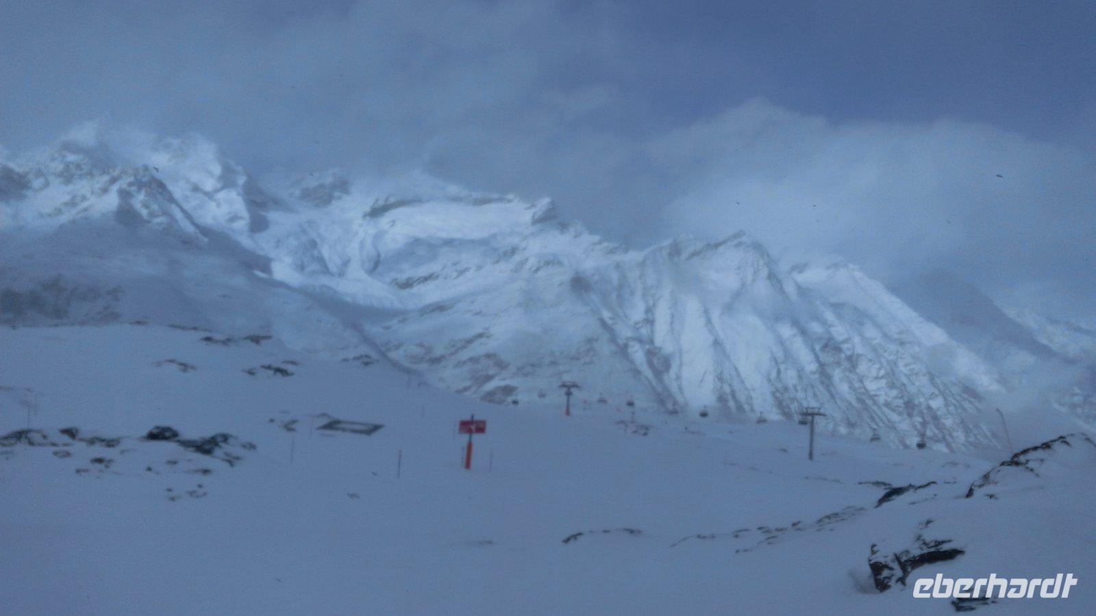 Im Mattertal erkennen wir die kleinen Orte wie z.B. Stalden mit den typischen Walliserhäusern und die mit Steinplatten versehenen Dächer oder auch der Bergsturz von 1991. Die Sicht in die Berge hat sich geändert. Tief liegende Wolken erwarten uns in Täsch. Die Erwartung ist groß, dass sich das Matterhorn heute noch zeigt. Nach 20 Minuten Bahnfahrt von Täsch nach Zermatt stehen wir am Bahnhof der Gornergratbahn. Der überwiegende Teil der Gruppe entscheidet sich für die Fahrt mit der höchsten Zahnradbahn Europas, zum 3130m hohen Gornergrat. Nach rund 40 Minuten Fahrzeit stehen wir am Gornergrat in Wolken, Wind und Schneeflocken. Ich erkläre das vor uns Viertausender "liegen" , die Dufourspitze mit 4634 m die höchste Erhebung in der Schweiz ist, aber mit einem Teil des "Fußes" in Italien steht, und wir diese Spitze im Monte Rosa-Massiv sehen könnten. Geduldig warten wir ca. 1,5 Stunden. Einige von uns sind schon nach Zermatt zurückgefahren, da beginnt die Wolkendecke aufzureisen. Jetzt sehen wir die vielen Viertausender der Schweiz. Auch den Dom mit seinen 4545 Metern, der höchste Berg der Schweiz der vollkommen auf Schweizer Boden steh Der Gornergrat ist zu jeder Jahreszeit schön. Im Winter hat er aber einen besonderen Reiz. Wir haben eine tolle Sicht auf einen Teil der 360 km Pisten in Zermatt und es ist beeindruckend, wie die Wintersportler die Hänge ins Tal wedeln. Jeder von uns nutzt die Zeit so, wie er es sich wünscht. Wir treffen uns erst am Nachmittag am Bahnhof wieder. Bis dahin haben einige auch den Ort erkundet. Vom Bahnhof aus geht es entlang der 600 m langen Bahnhofstraße, das alte Zermatt mit den schönen Häusern und einigen