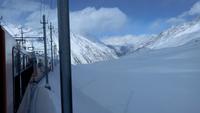 Weitere Eindrücke erhalten wir auf der Fahrt nach Brig. Dazu gehört Disentis mit der ältesten Benediktinerabtei der Schweiz. Aber auch der Bahnhof ist ein wichtiger Punkt der Reise. Die folgenden Strecken werden teilweise so steil, dass der Zug auf die Hilfe einer Zahnstange angewiesen ist. Nun erklimmen wir den höchsten Punkt der Reise, den 2033 m hohen Oberalppass. Nach steiler Abfahrt sehen wir Andermatt wenn auch nur sehr verschneid. Aber die Pisten und die vielen Wintersportler beeindrucken uns schon. Auf unserer weiteren Strecke durchfahren wir den Furka - Basis - Tunnel. 15 km lang und 20 min Fahrzeit. Der Bau des Tunnels (1982) macht es möglich, dass die Bahn das ganze Jahr betrieben werden kann. Zwischenzeitlich wurde uns in unserem Abteil ein Tagesteller und Dessert serviert und wir können gestärkt und entspannt dem Wintertreiben weiter zu sehen.