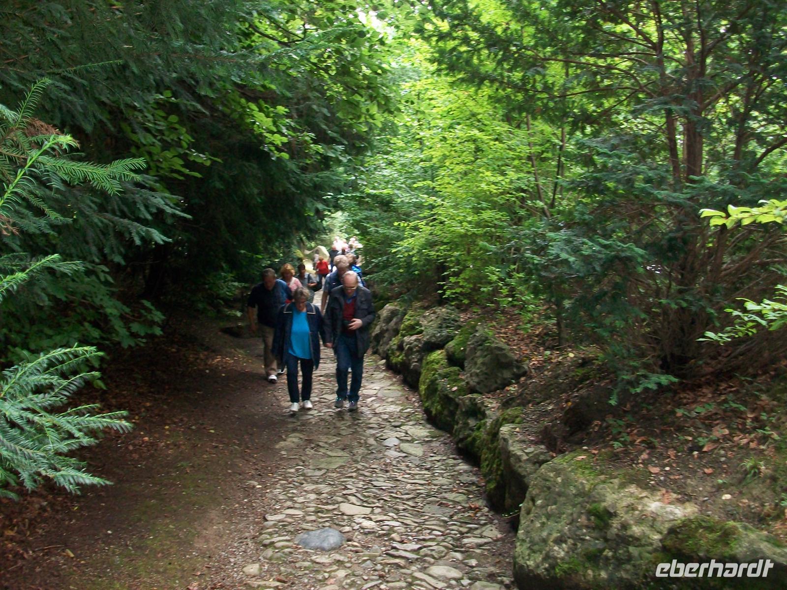 Einen kleinen Höhepunkt haben wir für unsere Gäste zum Schluss des Tages noch vorbereitet. Am romantischen Seeufer entlang, an Weggis mit seiner schönen Kirche vorbei, langen wir bald in Küssnacht an. Hier siedelte einst Schiller eine ganz berühmte Szene seines Wilhelm Tell an. „Durch diese hohle Gasse muss er kommen“ sagt Tell und meint damit den Landvogt Gessner, einen ganz üblen Burschen. „Es führt kein andrer Weg nach Küssnacht“-und richtig, Gessner kommt und Tell erschießt den Vogt- ein Symbol des Freiheitswillens der Schweizer bis zum heutigen Tag. Auch unsere Reisegruppe ist durch die Hohle Gasse gegangen, ein schönes Gefühl einmal hier gewesen zu sein.