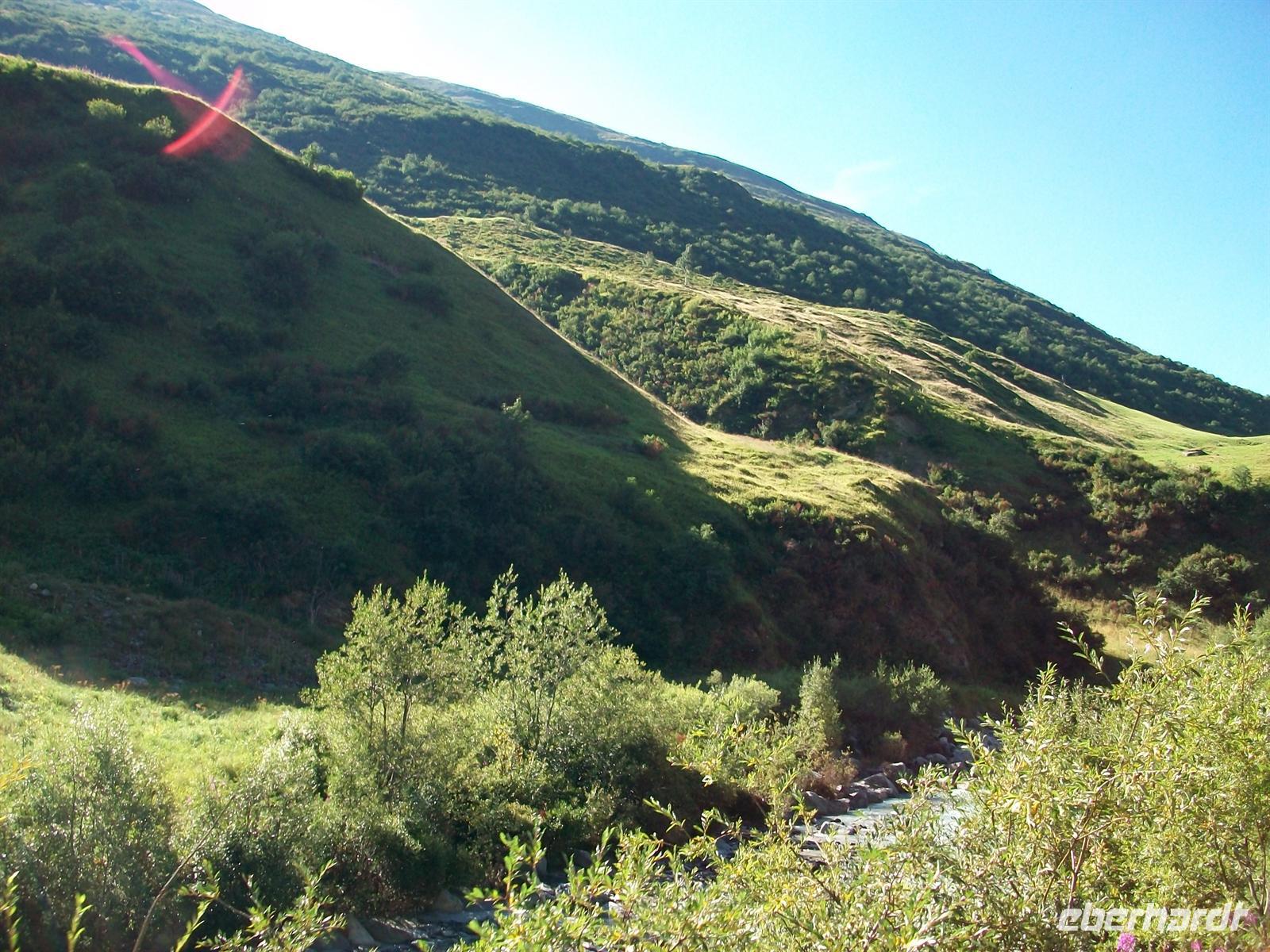 16.8.2012. Der Morgen ist angebrochen, beim Blick aus dem Fenster sehe ich dicke Wolkenbänke die sich über das Tal hinziehen und an den Bergen hängenbleiben. Dabei hat es die ganze Nacht geregnet, die Wiesen vor dem Hotel sind nass und die Sonne ist nicht zu sehen.