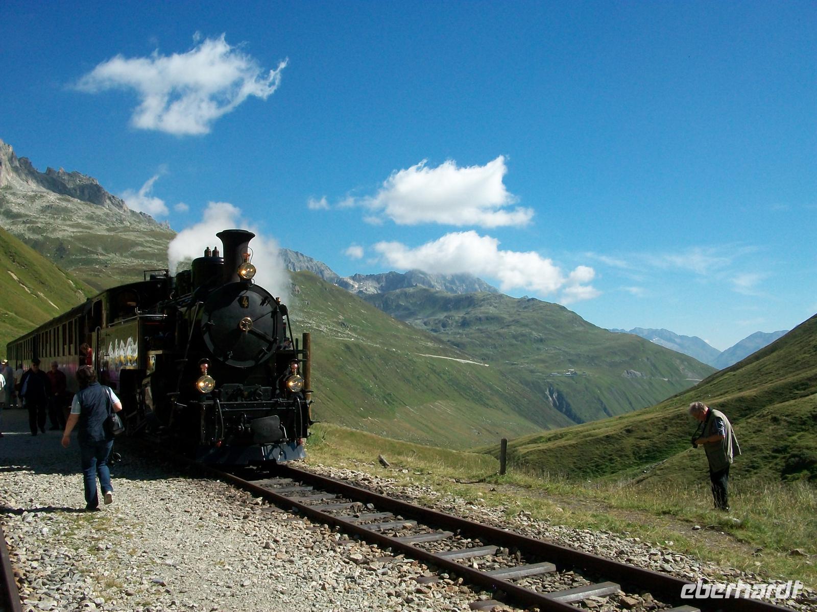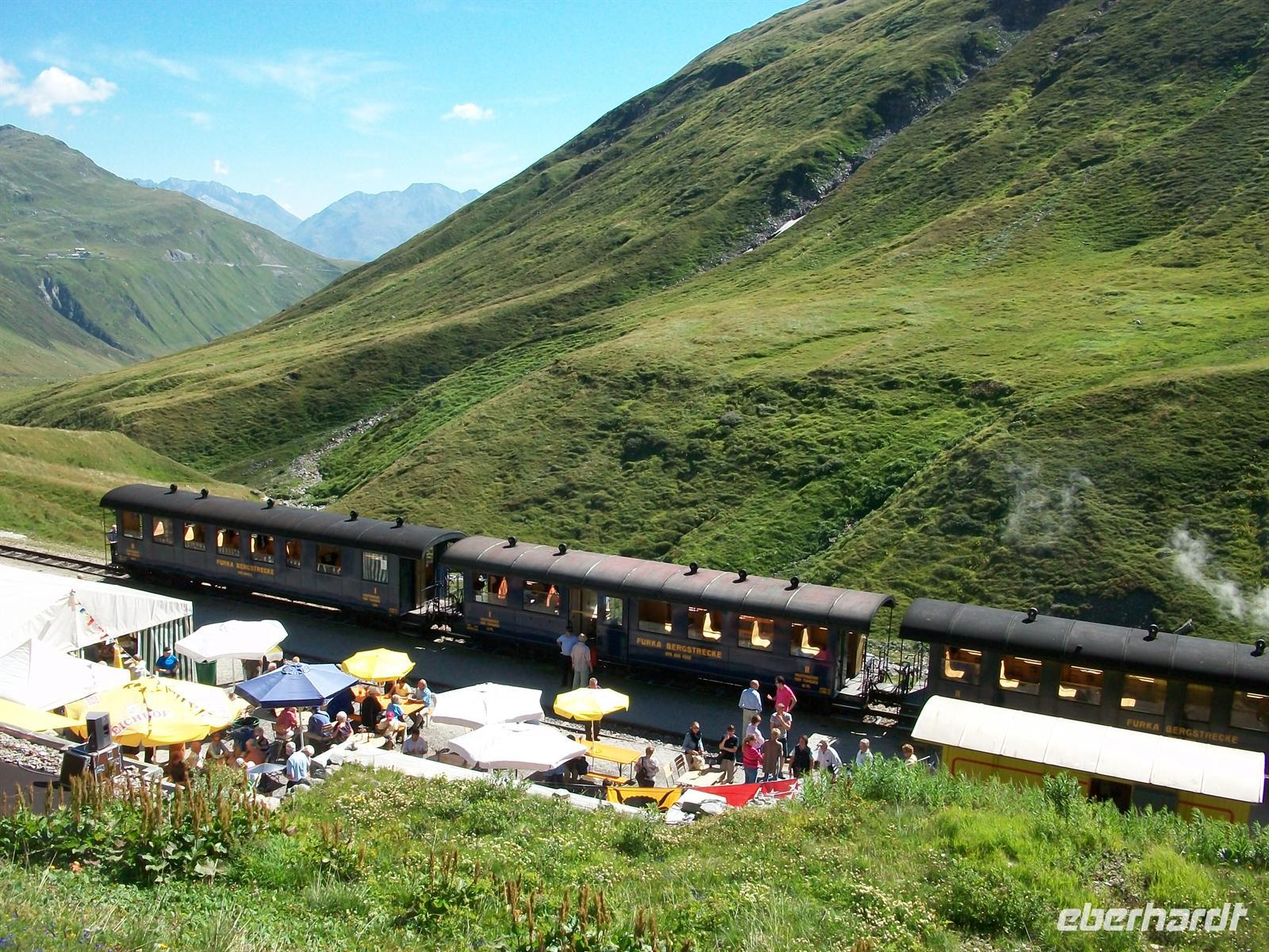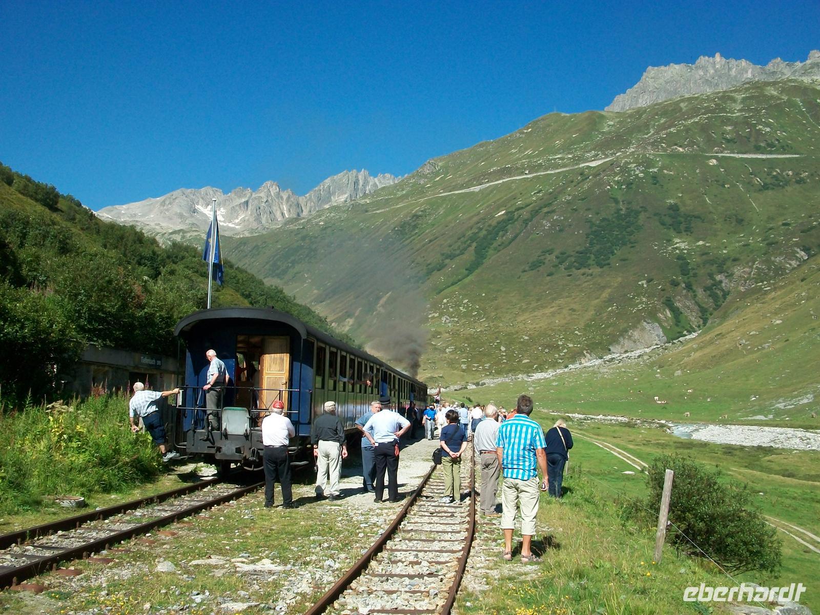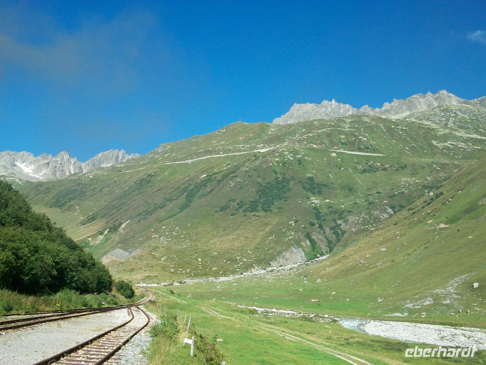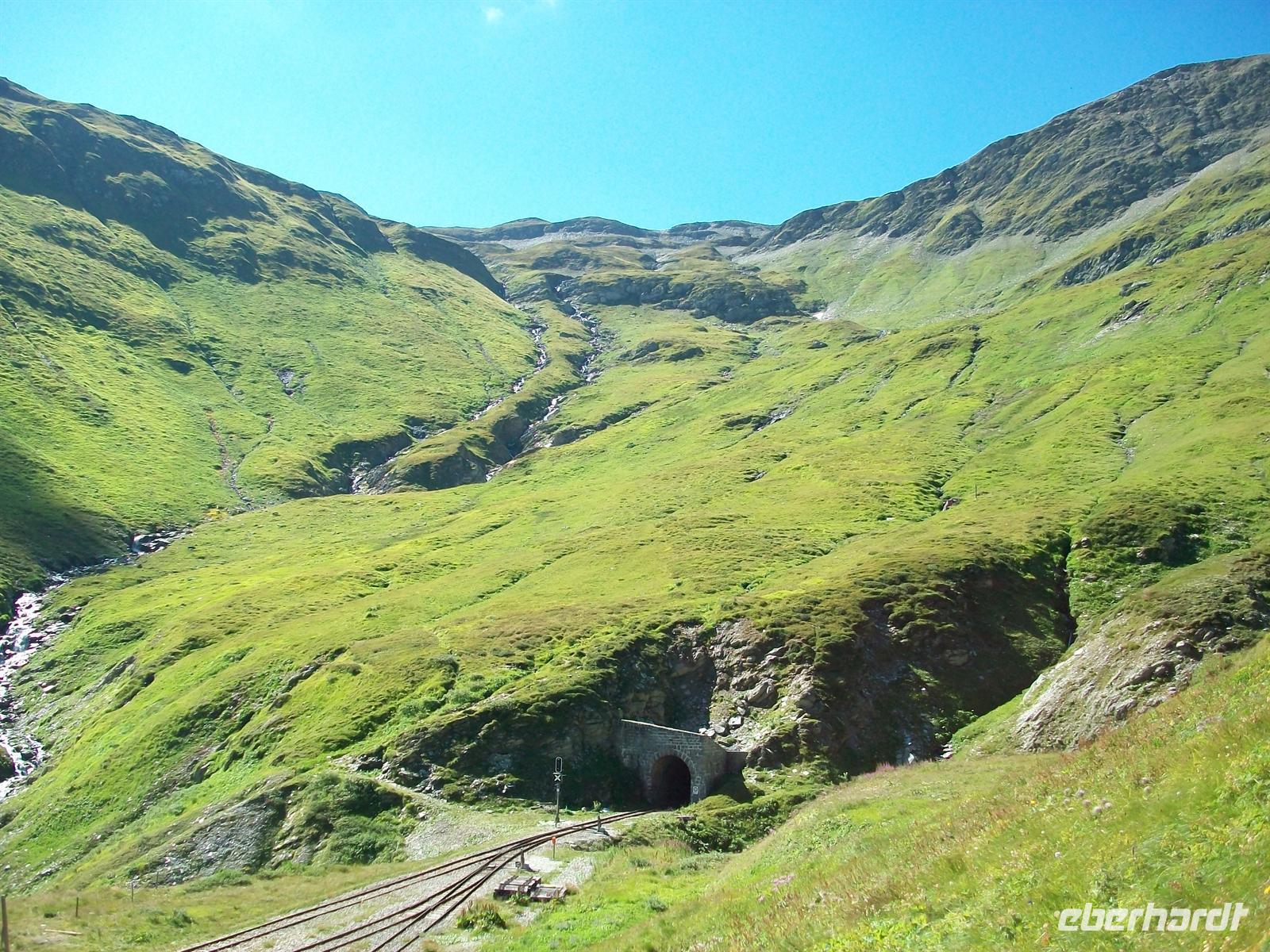 Ein letzter Kehrtunnel und die Fahrt geht hinunter ins Tal nach Oberwald; leicht quietschen die Bremsen, ein letztes Schnaufen der Lok und die Fahrt ist beendet.