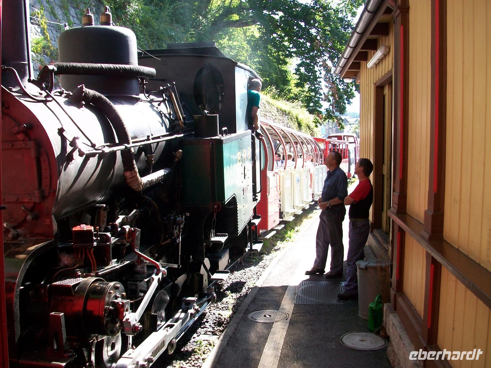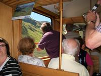Unser Aufenthalt gestaltet sich etwas wechselhaft, mal schaut zaghaft die Sonne zwischen den Wolkenlücken hervor und wärmt mit ihren Strahlen, dann wieder ziehen in Windeseile Schwaden von Wolken die Bergflanke hinauf und bringen einen kühlen Wind mit der uns frösteln lässt. Aber die Eindrücke die wir von hier mit nach unten nehmen sind wunderbar, leise ruckelnd bringt und die Zahnradbahn wieder zu Tal, unten werden wir schon von unserem Bus erwartet.