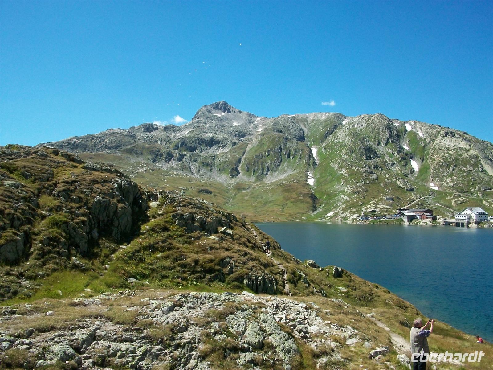 Diese Richtung schlagen wir nun ein, an der Talstation werden wir schon von unserem Bus erwartet der uns nun zu dem Ort zwischen den Seen bringen wird. Romantisch verläuft die Fahrt entlang des Seeufers, das Wasser glitzert in zahlreichen Lichtreflexen, ringsum steigen die Berge empor- es sind einmalige Impressionen die wir hier geboten bekommen.