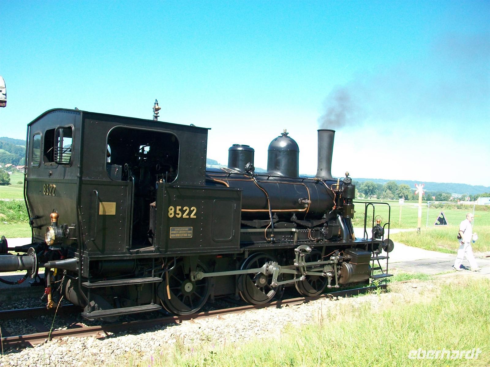 18.8.2012. Unser Weg führt uns heute recht nah am Ufer des Vierwaldstätter Sees vorbei. Keine Wolke ist am Himmel zu sehen und die Wasserfläche des großen Sees hat die Farbe des Himmels angenommen. Zügig kommen wir voran, das Ziel heißt Sursee. Bald müssen wir uns durch den Verkehr von Luzern kämpfen, doch dann haben wir den Großstadttrubel hinter uns gelassen und bewegen uns durch eine liebliche Landschaft zwischen Mais- und Tabakfeldern. Eine gute Stunde nach Abfahrt langen wir am Bahnhof an um wiederholt Dampf zu schnuppern. Eben fährt schon einmal die Zugformation an uns vorbei um auf das richtige Gleis zu kommen. Schon kitzelt der Dampf der Lok unsere Nasen, es stellt sich die Frage welche Faszination wohl davon ausgehen mag?