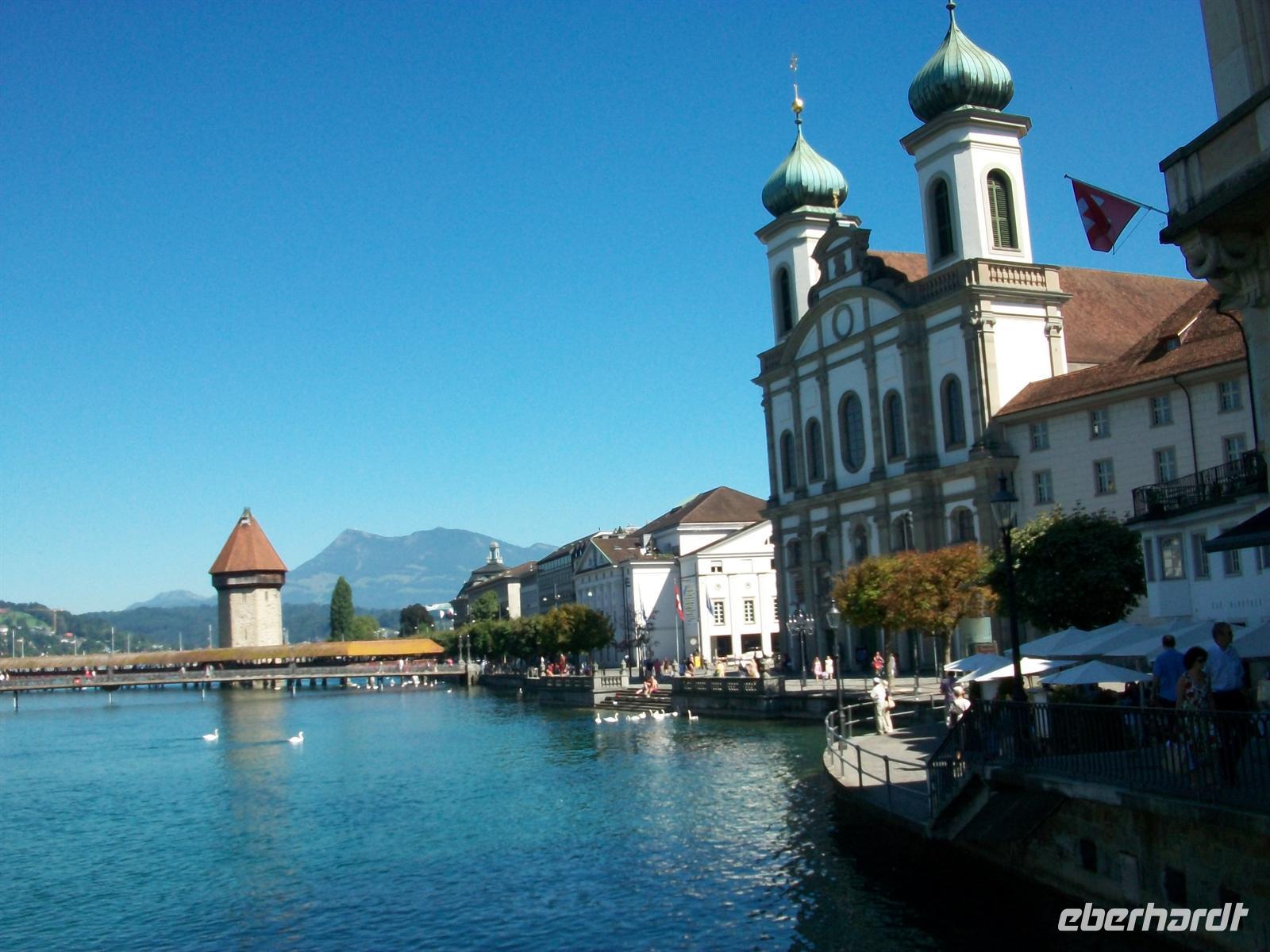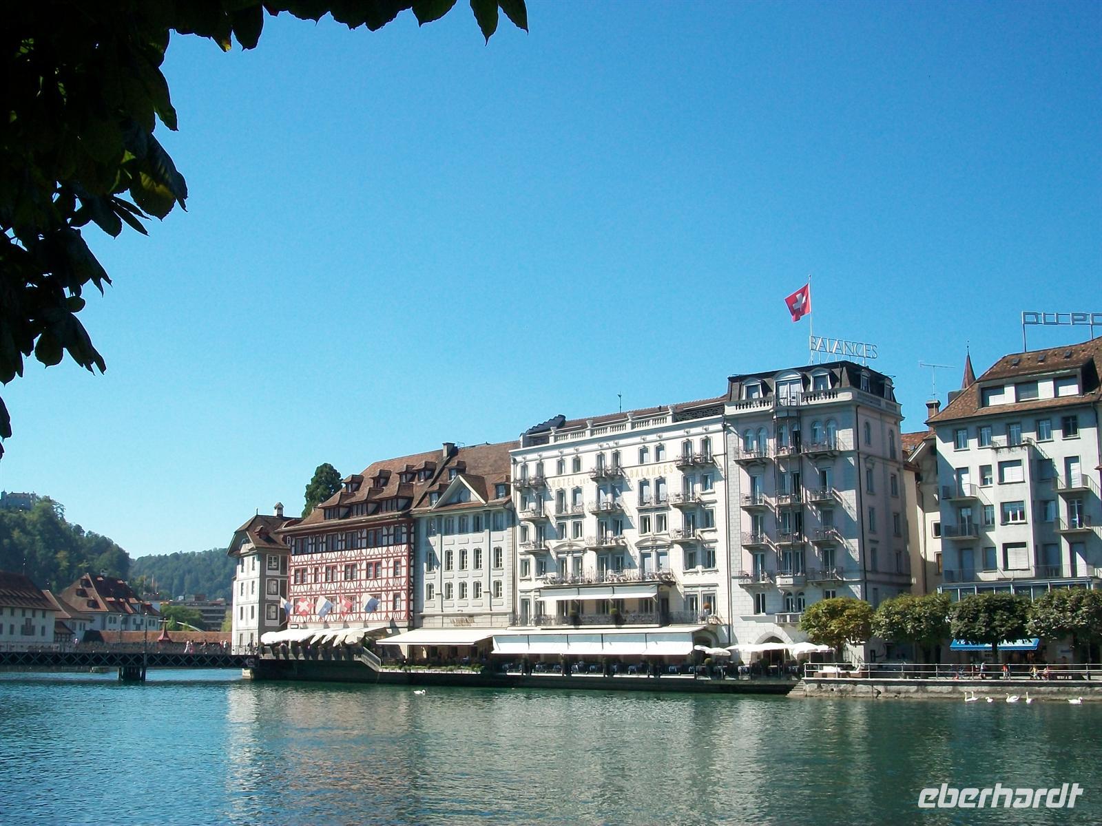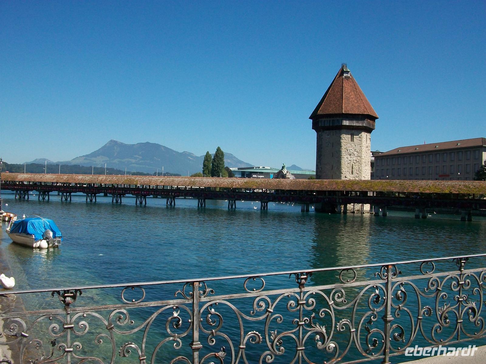 Sehr schön ist das Stadtbild von Luzern, die Naturkulisse außerhalb der Stadt bietet für diese schönen Impressionen den richtigen Rahmen. Unmittelbar hinter der Stadt ragt der zerklüftete Pilatus auf, links ist die Rigi zu sehen und im Hintergrund das Stanserhorn.