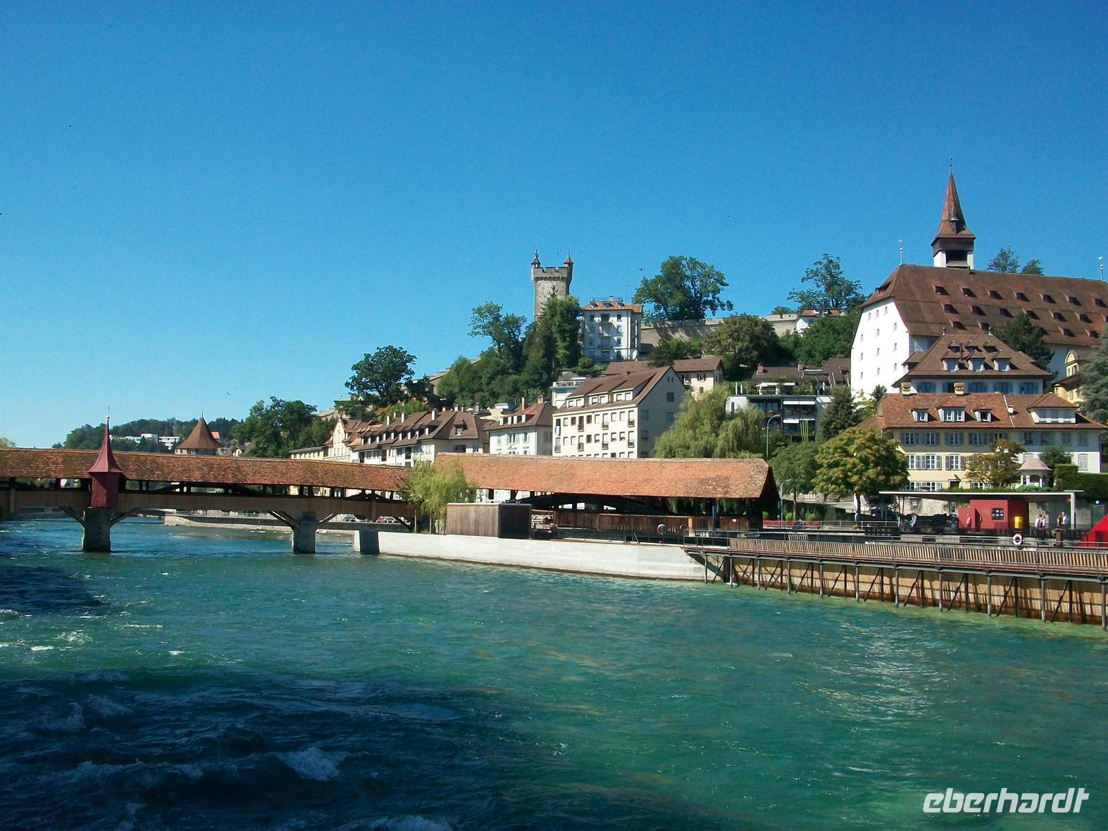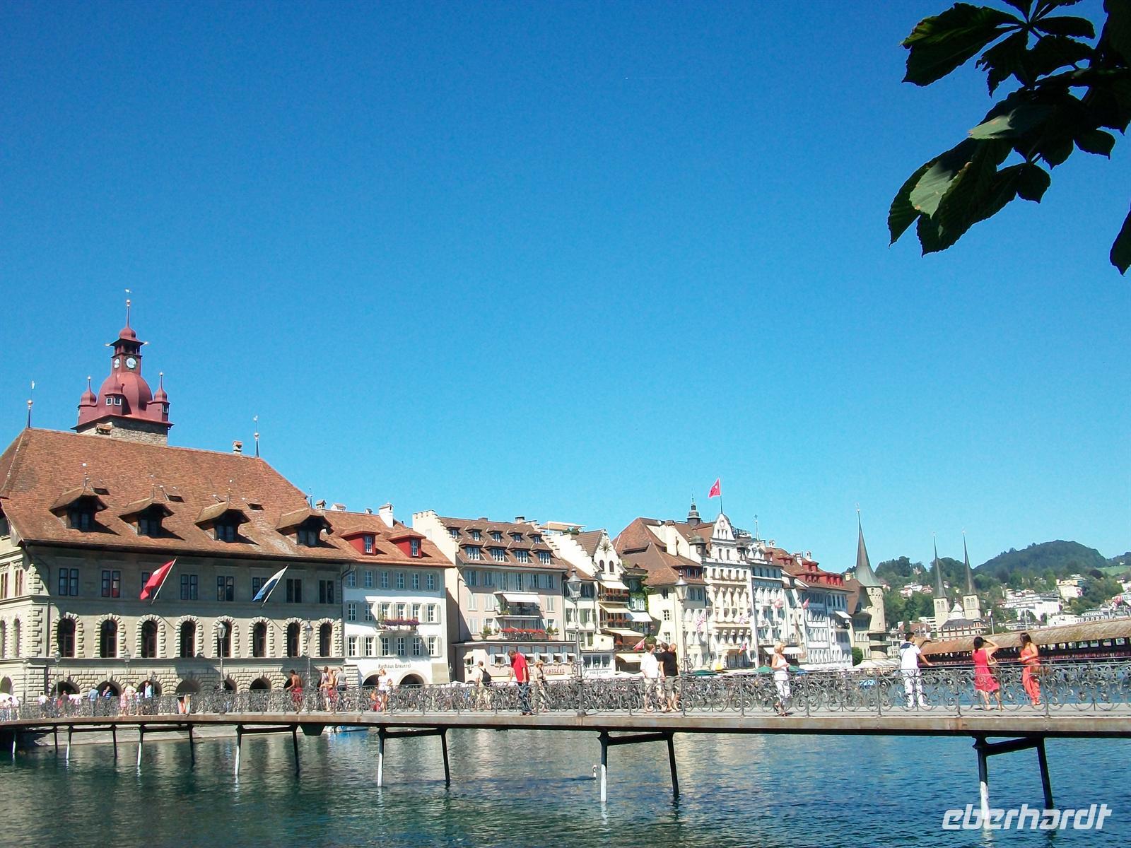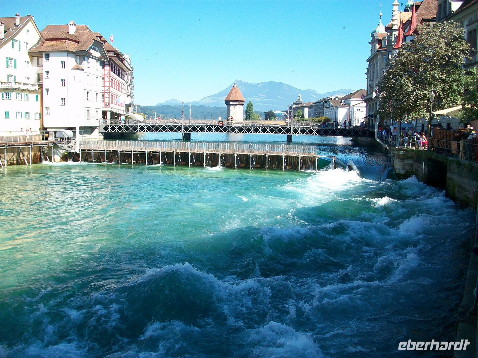 Sehr schön ist das Stadtbild von Luzern, die Naturkulisse außerhalb der Stadt bietet für diese schönen Impressionen den richtigen Rahmen. Unmittelbar hinter der Stadt ragt der zerklüftete Pilatus auf, links ist die Rigi zu sehen und im Hintergrund das Stanserhorn.
