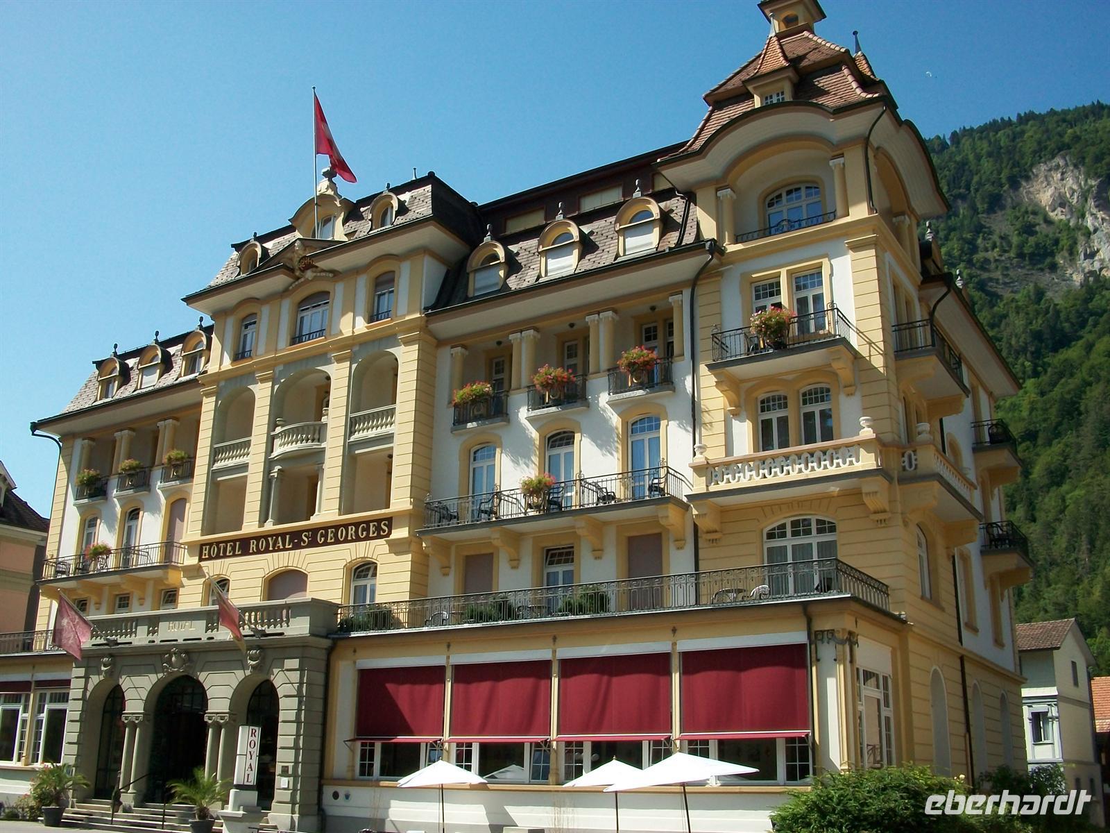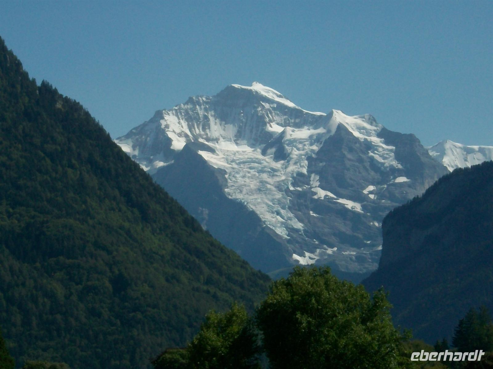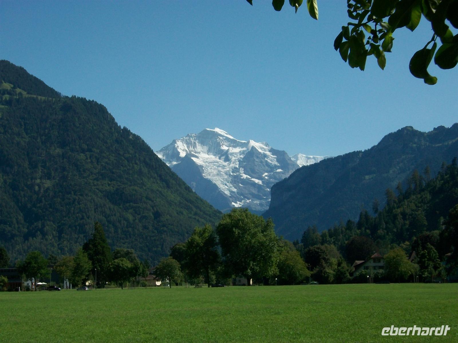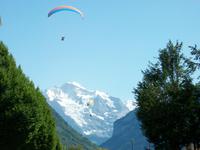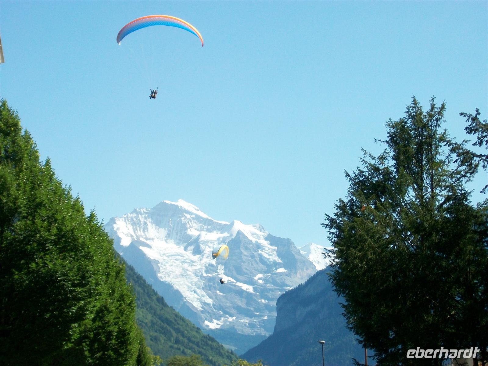 Dann langen wir in Interlaken an und unseren Gästen verbleibt etwas Zeit diese interessante Stadt zu besuchen; entlang der Höhenmatte hat man bald einen schönen Blick zum Jungfraumassiv; Gleitschirmflieger drehen über der Wiese lustig ihre Kreise die Straße wird