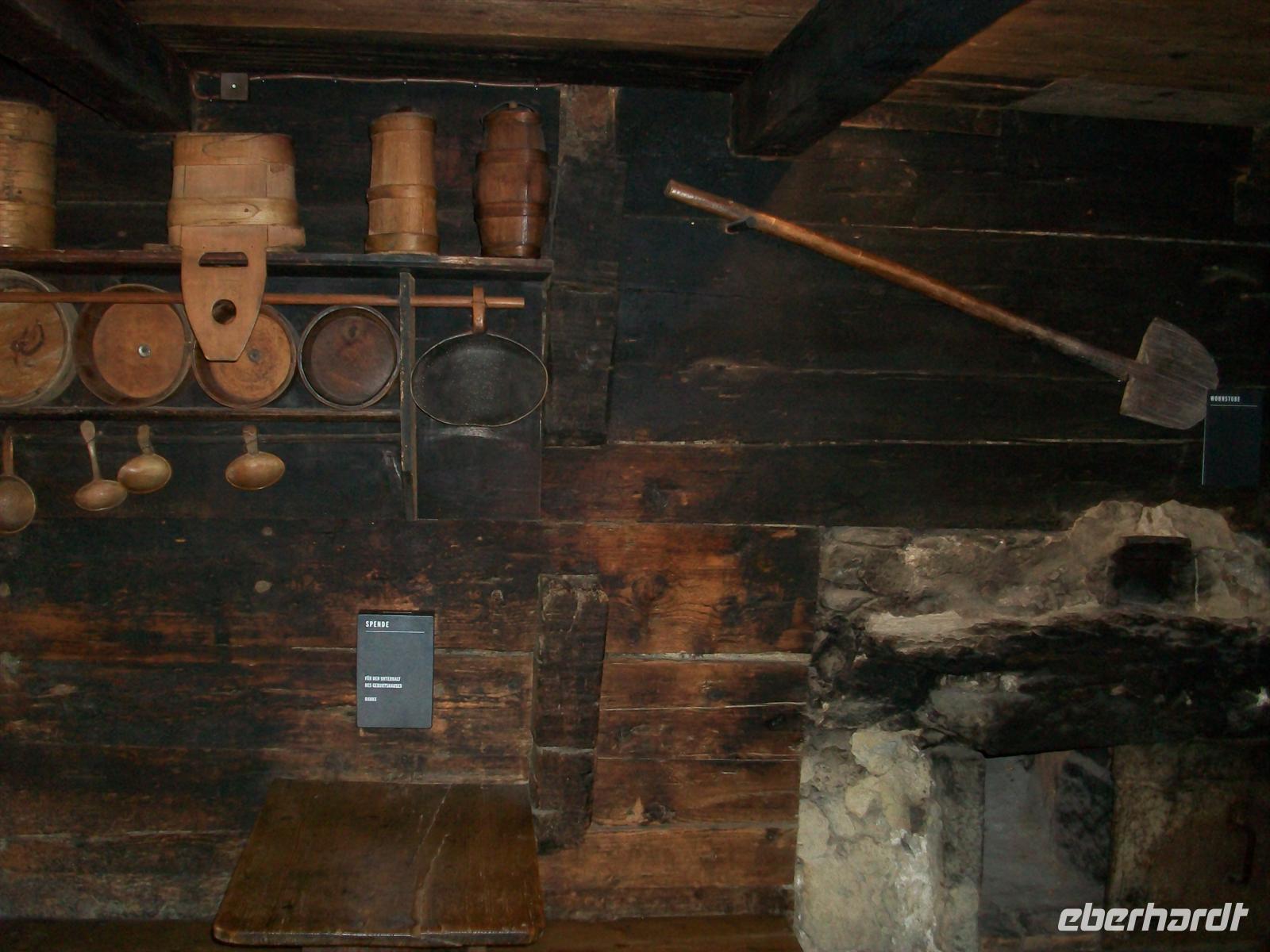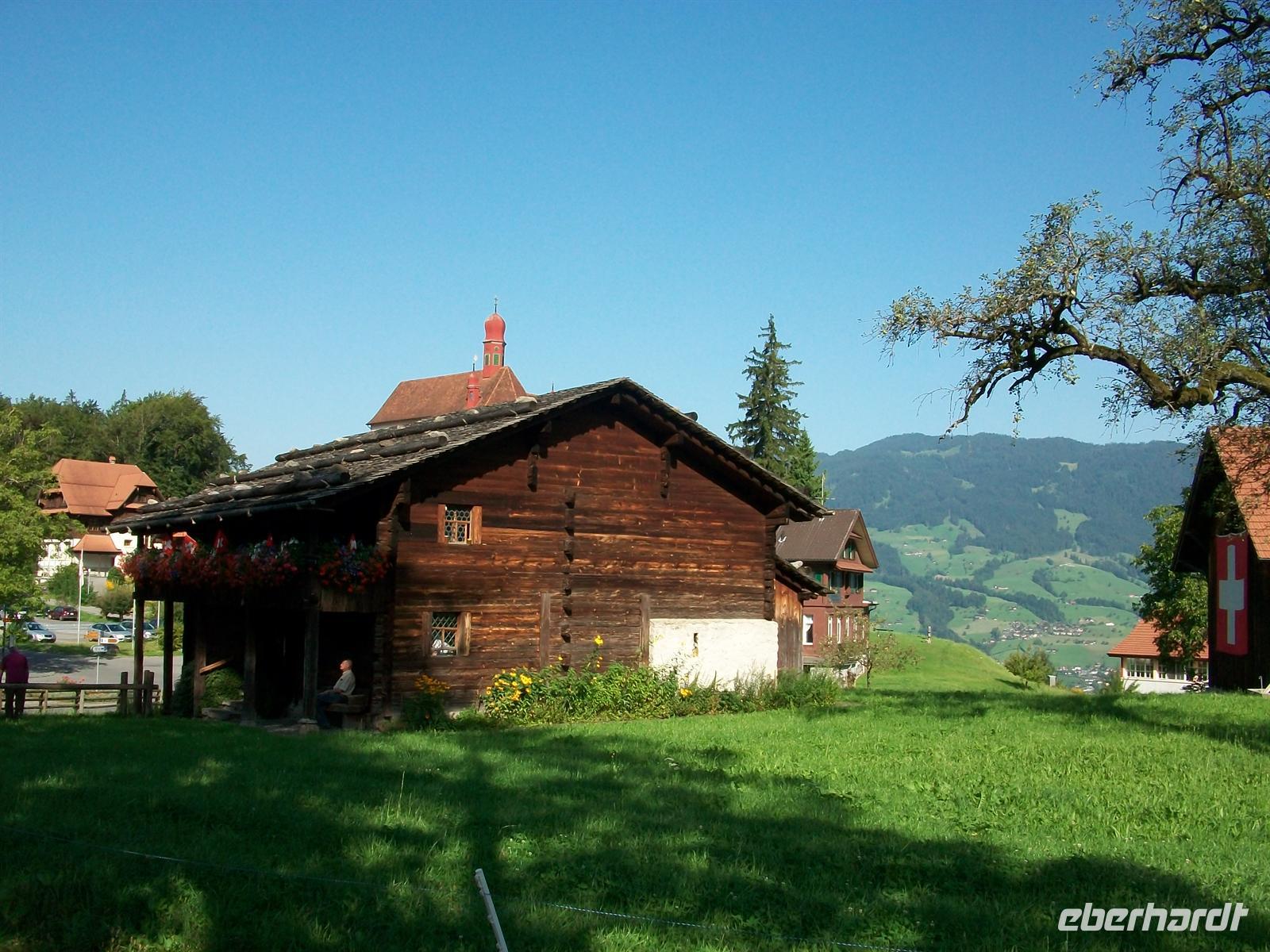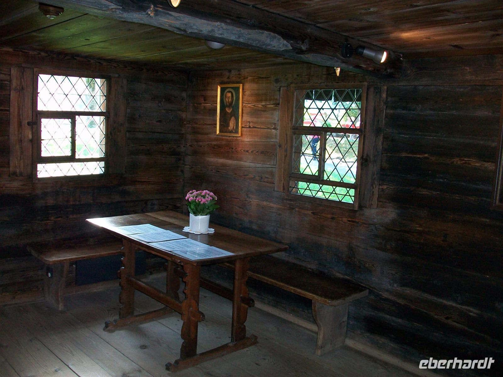 Nach dem Besuch des Geburtshauses sind wir unterwegs zu seinem Wohnhaus. Nikolaus von der Flüe hatte sich einen eigenen Hausstand gründen können; er war ein wohlhabender Bauer und glücklich mit einer noch jungen 14- jährigen Frau verheiratet- Dorothea. Die zwei führten ein glückliches Eheleben, aus dem zehn Kinder entsprossen, die Familie konnte Klaus mit seiner Hände Kraft ernähren, während Dorothea fleißig den Haushalt führte. Wir betreten auch dieses Haus und durch eine andere Mitarbeiterin erfahren wir die Lebensgeschichte dieser Familie. Mit sehr viel Herzblut und Religiosität hält sie uns im Bann, verwundert lauschen wir den Erzählungen. Klaus war vorerst in seinem Familienleben glücklich und zufrieden. Aber immer wieder plagten ihn Visionen, er konnte nachts nicht schlafen und es waren Stimmen die erst unklar waren und von
