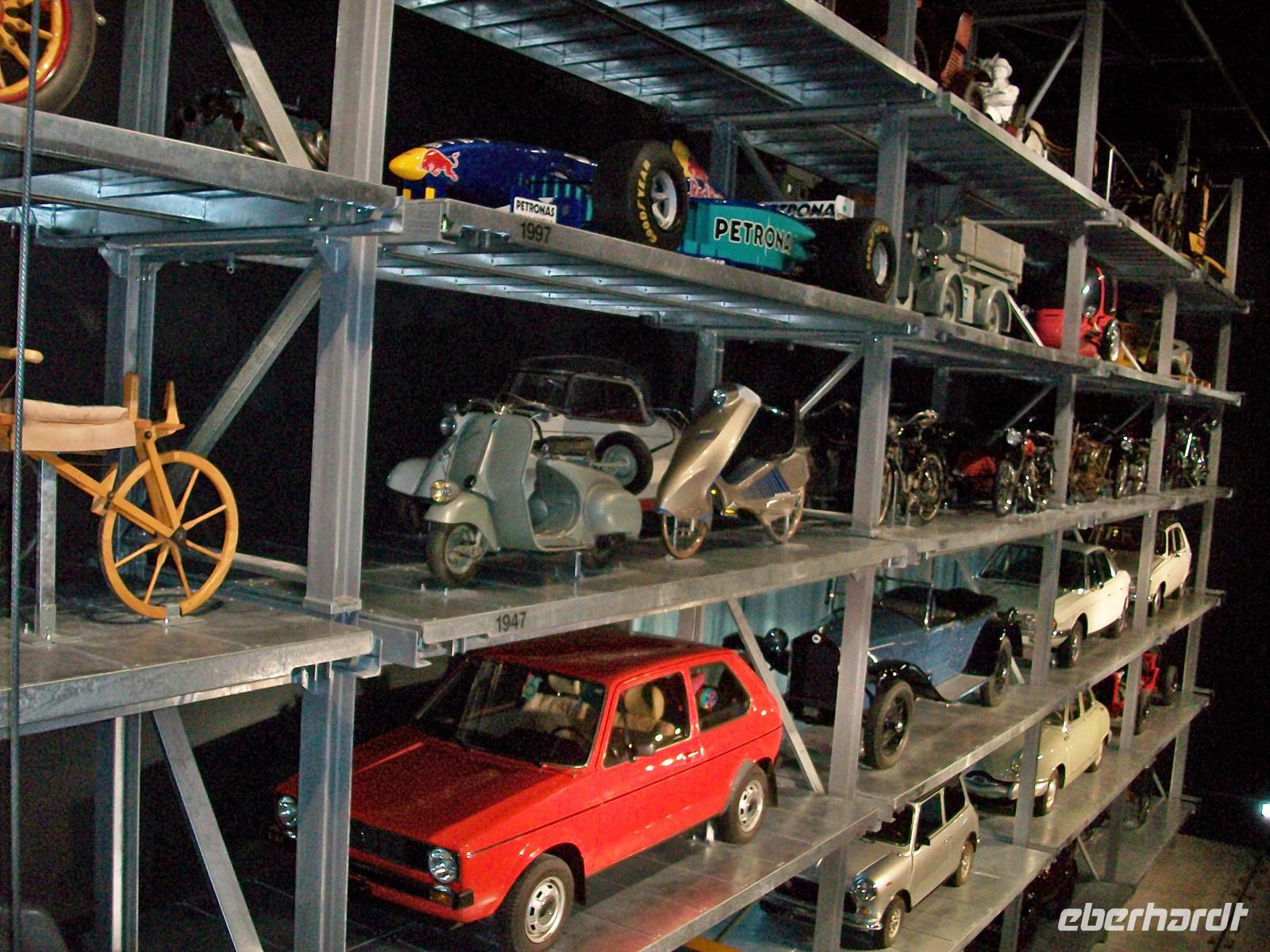 Über einen Hof gelangt man zu den Autos; hier gibt es ein sogenanntes Autotheater, mit einem Knopfdruck kann der Besucher sich ein Auto per Hubbühne aus dem großen Regal heben lassen und es betrachten- sehr originell. Im Innenhof sind einige Flugzeuge ausgestellt, im hinteren Teil die Wasserfahrzeuge und den krönenden Abschluss bildet der Besuch des Planetariums. Sehr wissenswert sind die Erklärungen, spektakulär der Blick in die Sterne von den weichen Sesseln aus im gut klimatisierten Raum.