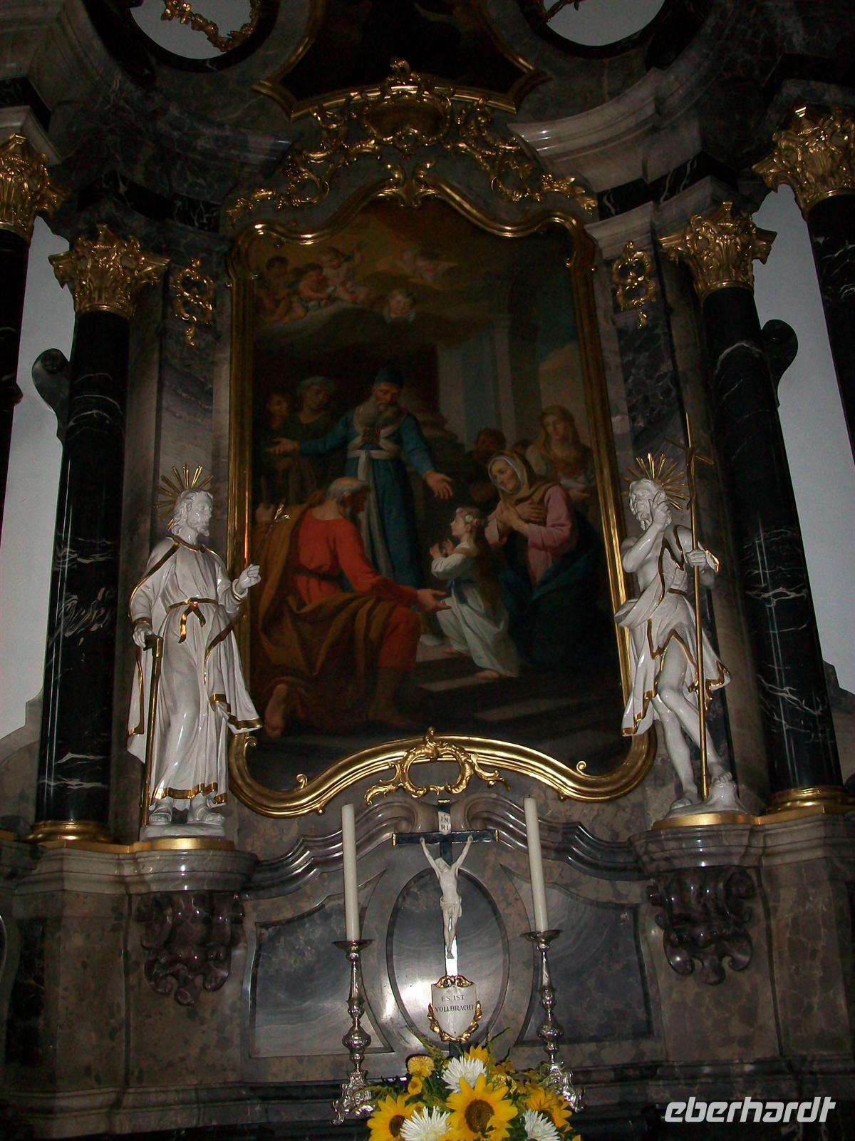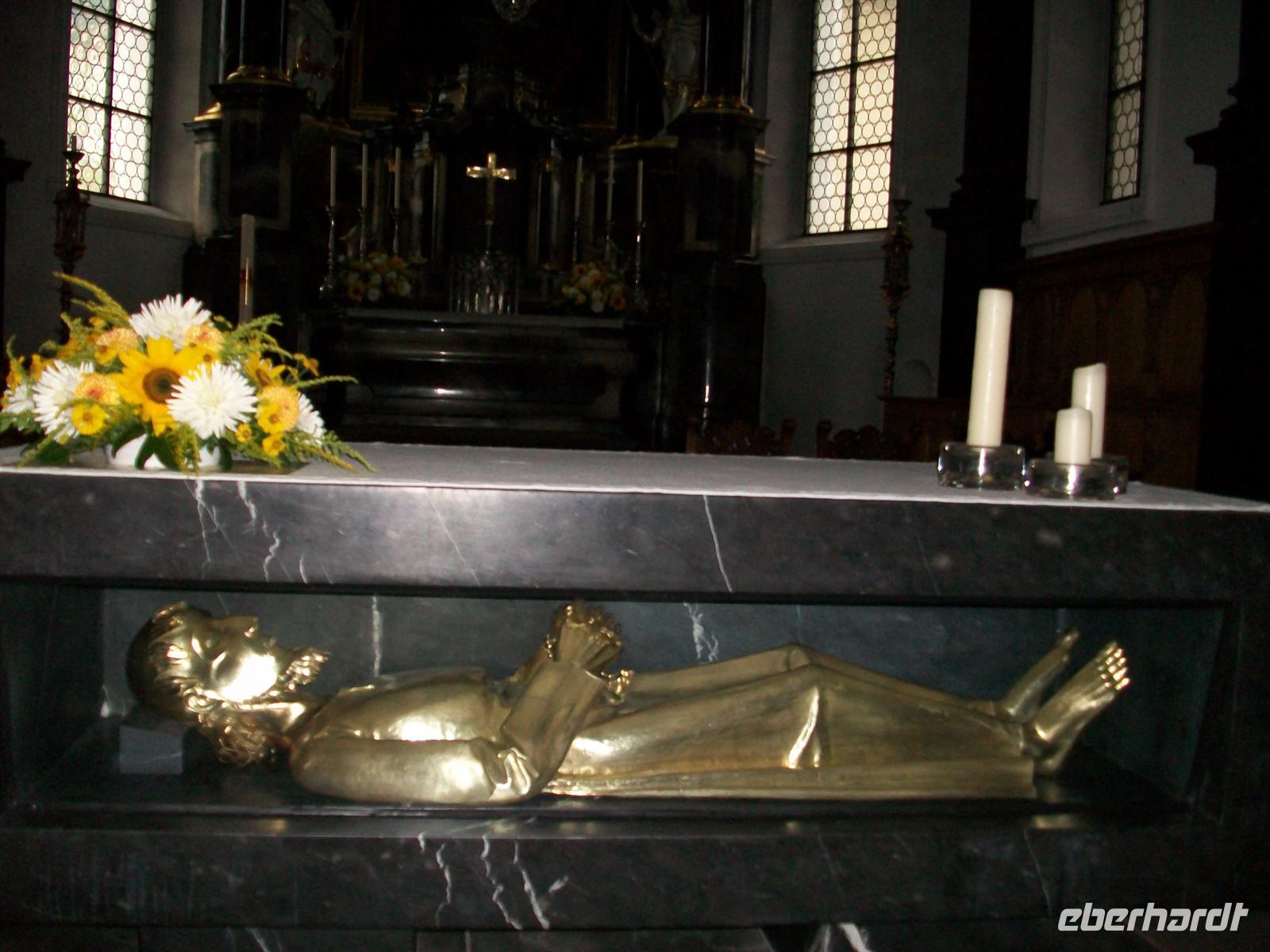 Im Ort Sachseln, bis hier ist uns Petrus gnädig, legen wir noch einen Stopp ein um die sehr schöne Kirche zu besuchen. Hier sind wir nun ein letztes Mal auf den Spuren von Bruder Klaus, im Innern ist sein Eremitenrock ausgestellt der von Dorothea selbst gewebt wurde, außen angebaut seine Grabkapelle und auf dem Kirchhof ein Denkmal was den Abschied zeigt. Dorothea und drei Kinder winken dem Ehemann und Vater ein letztes Mal zu- sehr nahegehend in dieser einfachen Darstellung des Künstlers.