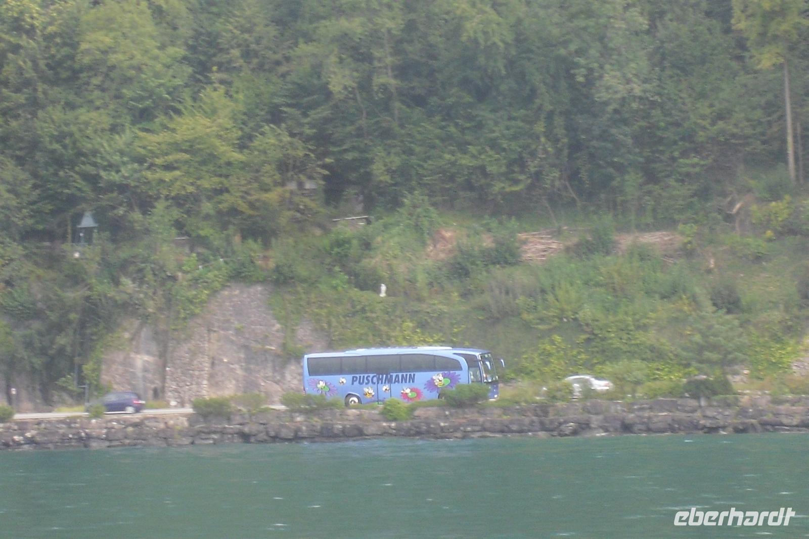 Nach einem längeren Aufenthalt auf der Rigi fuhren wir nach Goldau zurück. Normalerweise wären wir auch mit der ältesten Zahnradbahn der Welt gefahren - der bereits 1871 eingeweihten Rigi-Bahn nach Vitznau, aber auf dieser Strecke gab es derzeit umfangreiche Baumaßnahmen und somit war diese Strecke derzeit nicht in Betrieb! Von Goldau aus traten wir unsere Rückfahrt über die Ostuferstrasse des Vierwaldstättersees, die sogenannte Axenstrasse, an. Als 1865 die Axenstrasse eröffnet wurde, war sie mit einem Schlag eine Sehenswürdigkeit allerersten Ranges und wurde als schönste Strasse Europas bezeichnet. Gefühlvoll in die Landschaft eingefügt, und - wo es nicht anders ging - durch technische Wunderwerke wie Tunnels, Galerien und Brücken unterstützt, fügt sie sich dem Gelände vollkommen ein und führt in phantasievollen Serpentinen dem See entlang, dabei immer wieder neue und unerwartete Ausblicke öffnend. Auf den Spuren von Wilhelm Tell wandernd, kamen wir auch bei der Tellsplatte am Vierwaldstättersee vorbei, wo wir einen kurzen Stopp einlegten. Einige Gäste spazierten zur legendären Tellskapelle. Die Kapelle markiert die Stelle, an welcher Tell der Sage nach aus Gesslers Boot gesprungen war, und sich so aus dessen Fängen befreite. Zuvor war er von dem grausamen Landvogt dazu gezwungen worden, mit seiner Armbrust auf einen Apfel zu zielen, der auf seines Sohnes Kopf platziert war. Das Boot geriet in einen Sturm und Tell rettete sich mittels eines waghalsigen Satzes auf einen Felsvorsprung, der sogenannten Tellsplatte. Auf dieser Platte soll bereits 1388 eine Kapelle zu Tells Ehren errichtet worden sein. Um 1589/90 wurde diese Kapelle erweitert oder neu gebaut. Der heutige Bau entstand etwa 1879 und wurde im Laufe der Jahre mit sehr hübschen Fresken ausgestattet, die Szenen aus der Tell-Sage zeigen: die Apfelschuss-Szene, Tells Mord an Gessler in der Hohlen Gasse, seinen Sprung aus dem Boot sowie den Rütli-Schwur. Diese Fresken stammen von dem Basler Historienmaler Ernst Stückelberg und geben dem Inneren der Kapelle einen ganz besonderen Charme. Zurück in Flüeli-Ranft erwartete uns nach dem Abendessen noch ein kleines Kulturprogramm - wir erlebten einen Abend mit einheimischer Musik, unter anderem auch einem Alphornbläser. Noch dazu wurde uns einiges über die einheimischen Musikinstrumente erklärt. Jeder hörte gespannt zu und so saßen wir alle in geselliger Runde beisammen! Es war ein gelungener Abend!