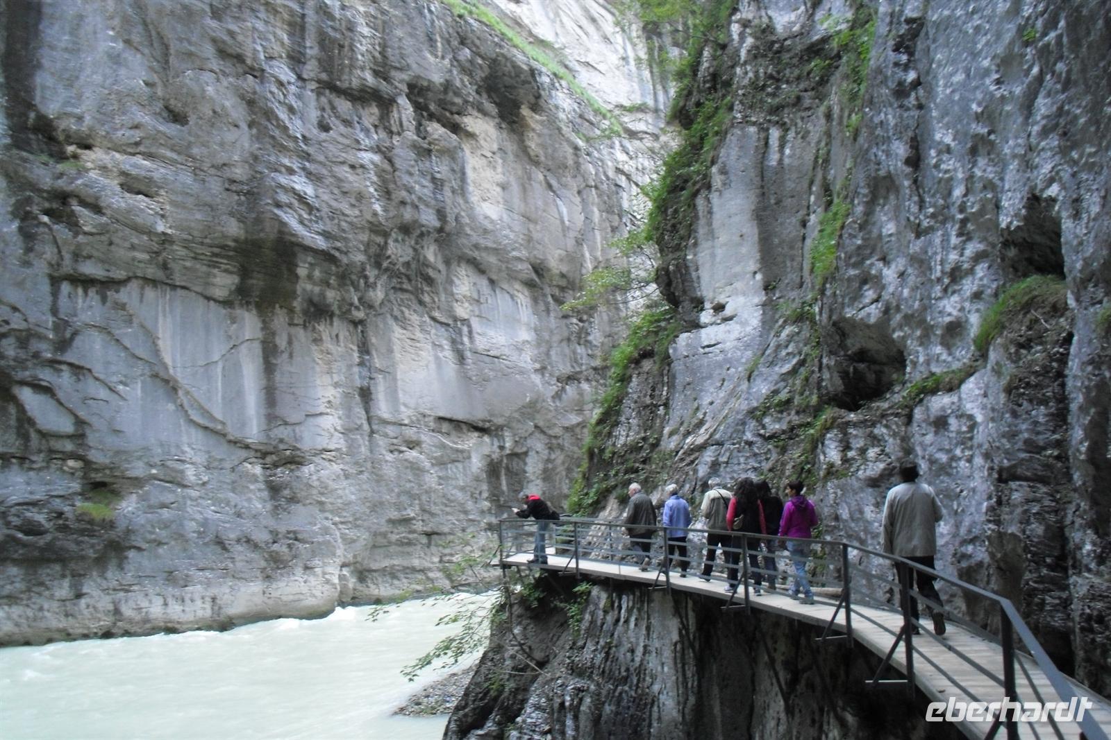Unser erstes Ziel sollte heute die Aareschlucht sein. Über den Brünigpass ging es hinunter ins Haslital. In Meiringen angekommen, spazierten die meisten Gäste mit mir durch diese gut begehbare und etwa 1,4 Kilometer lange Schlucht bis nach Innertkirchen, wo wir von unserem Bus abgeholt wurden.