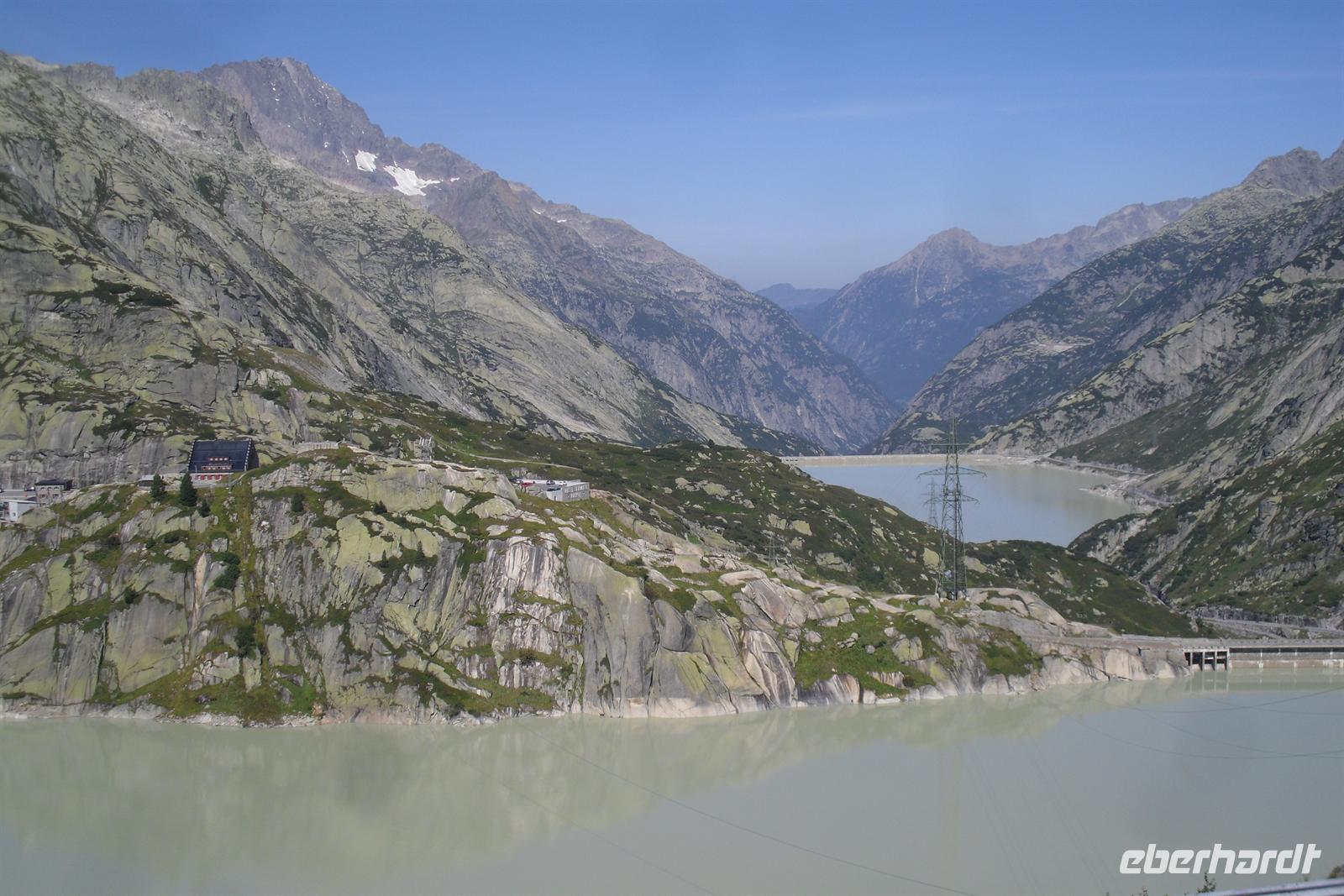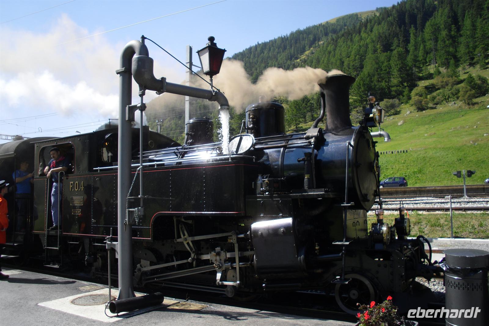 Auf dem Weg zum Grimselpass legten wir auf etwa 1.800 m ü. d. M. und umgeben von einer grandiosen Bergwelt eine Mittagspause ein. Hier gab es heute ein Picknick - frisches Brot, Käse und Wurst - einfach lecker! Anschließend ging es weiter zur 2.165 Meter hohen Grimsel-Passhöhe. Hier schauten sich die meisten von uns im Murmeltierpark um - wie niedlich! Nun war es nur noch ein Katzensprung bis Oberwald, dem Ausgangspunkt unserer Fahrt mit der Furka-Dampfbahn. Bereits 1914 haben die ersten Dampfzüge von Brig aus entlang der jungen Rhone den Bahnhof Gletsch erreicht. 1926 ist die Strecke bis Disentis verlängert worden und damit war die Verbindung zur Rhätischen Bahn hergestellt. 16 Jahre später ist diese hochalpine Strecke im schwierigen Gelände elektrifiziert worden. Allerdings konnte die Strecke zwischen Oberwald und Realp wegen den extremen Klimabedingungen stets nur während des Sommers betrieben werden. So hat man später zwischen diesen beiden Orten den Furka-Basistunnel gebaut, der im Jahre 1982 eingeweiht worden ist.