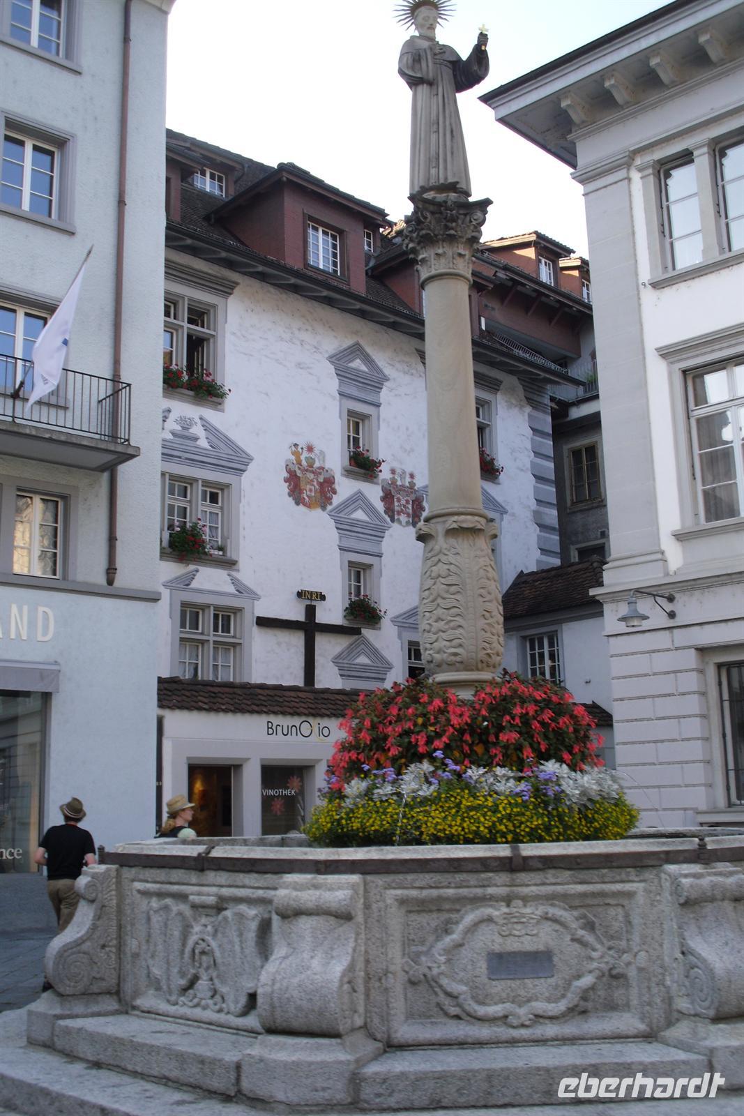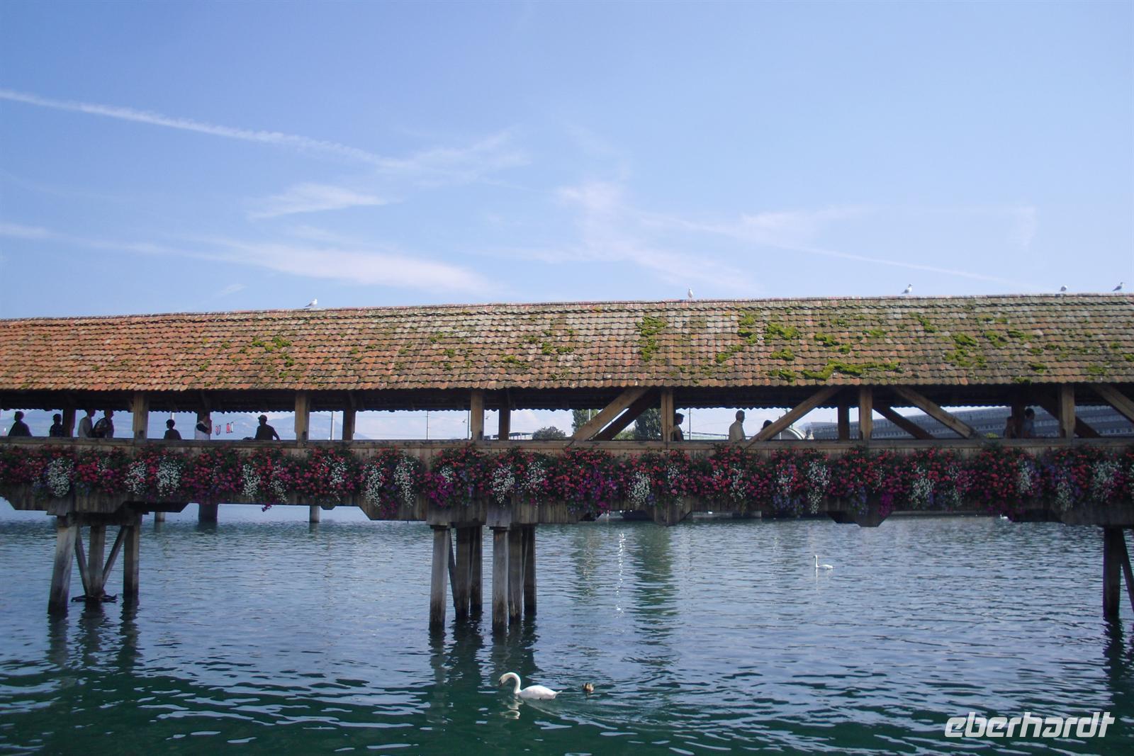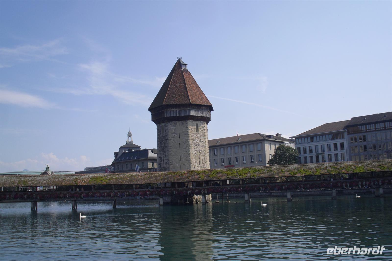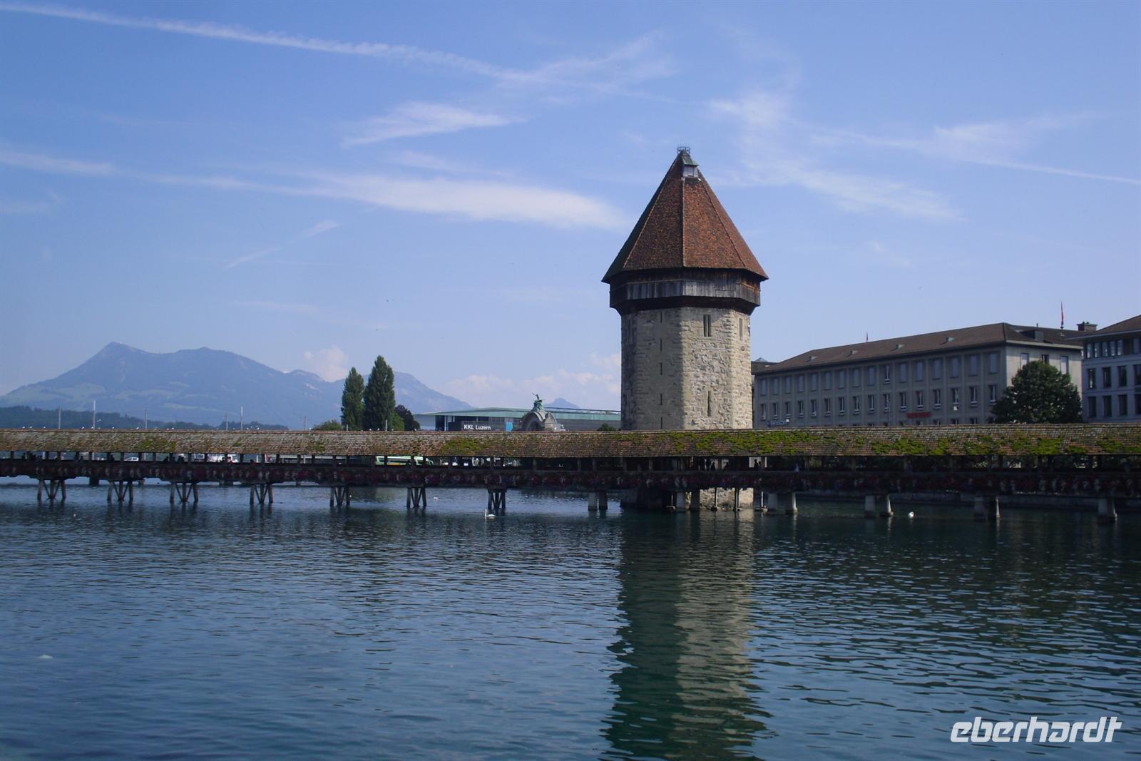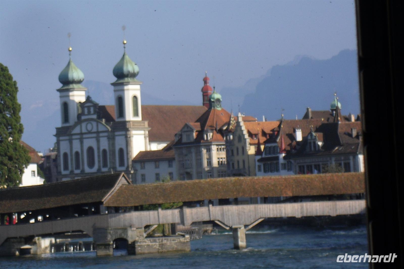 Da half alles nichts, gegen 15.30 Uhr erreichten wir letztendlich doch noch das Zentrum von Luzern und nach etwas Freizeit erlebten wir eine Stadtführung mit dem City Train, einer kleinen Bahn, die uns während einer 45-minütigen Rundfahrt einen Überblick die Stadt Luzern bot. Dabei erfuhren wir einiges über die jahrhundertealte Luzerner Geschichte und sahen die wichtigsten Sehenswürdigkeiten der Stadt, unter anderem die weltberühmte Kapellbrücke. Diese wurde in der ersten Hälfte des 14. Jahrhunderts als Teil der Stadtbefestigung errichtet und hat ihren Namen von der benachbarten St.-Peters-Kapelle. Die Fahrt führte uns auch durch einen Teil der herrlichen Altstadt. Historische, mit Fresken geschmückte Häuser umsäumen in der Altstadt rechts der Reuss einige malerische Plätze. Sehr attraktiv ist der Weinmarkt, wo die Luzerner 1332 den eidgenössischen Bund mit Uri, Schwyz und Unterwalden beschworen haben.
