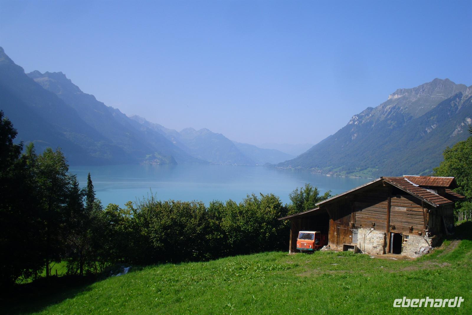 Am Morgen fuhren wir vorbei am Lungernsee und über den Brünigpass ins Berner Oberland nach Brienz. Der ziemlich langgestreckte Ort am Ufer des Brienzer Sees ist der Mittelpunkt der Oberländer Holzschnitzkunst und für uns war natürlich klar, dass wir eine der zahlreichen Holzschnitzereien hier besuchen sollten.