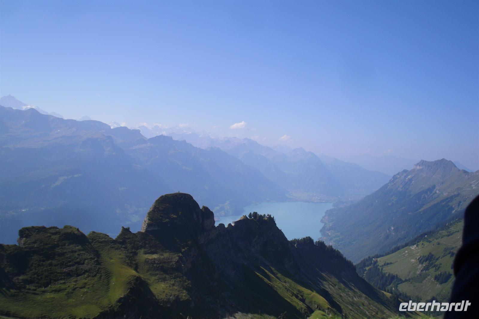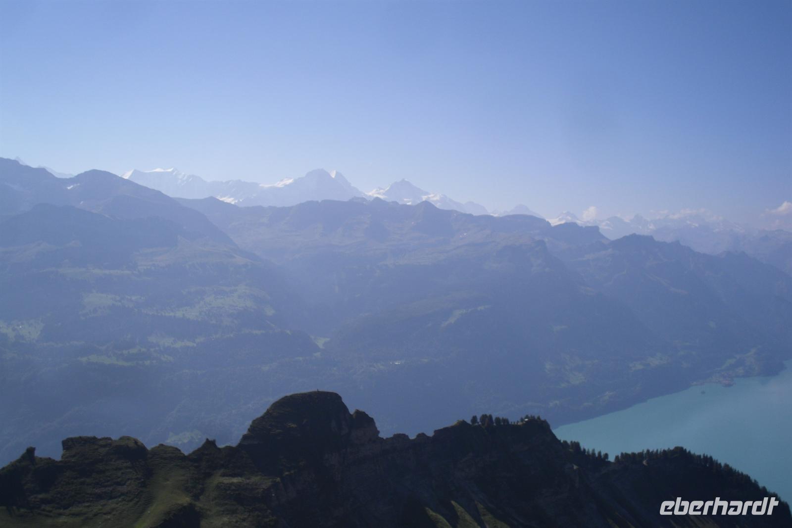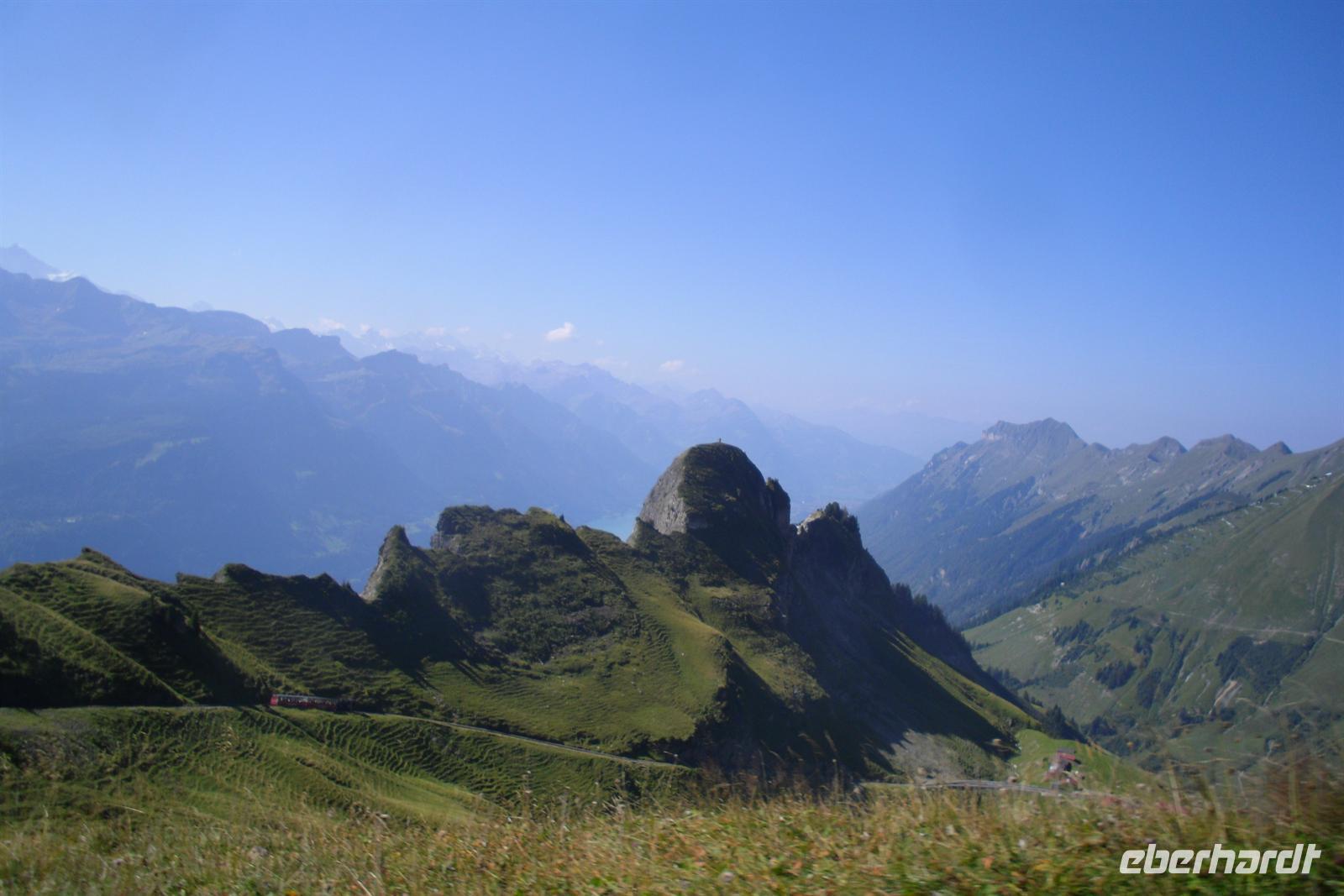 Die Zahnradstrecke mit Dampfbetrieb wurde bereits 1892 eröffnet und überwindet die etwa 7,5 Kilometer lange Strecke in 55 Minuten. Von der auf 2252 Meter hoch gelegenen Gipfelstation hatten wir dann noch einen kurzen Weg zum 2270 Meter hohen Rothorn-Kulm. Bei guter Sicht hat man von hier eine großartige Aussicht über die Appenzeller, Urner, Engelberger, Berner und Walliser Alpen - wir hatten Glück, der Wettergott meinte es gut mit uns! Wir hatten einen grandiosen Blick in die Region von Eiger, Mönch und Jungfrau. Am Nachmittag setzten wir unsere Fahrt von Brienz aus schließlich entlang des Brienzer fort. Nach einem kurzen Aufenthalt in Interlaken fuhren wir über den Brünigpass zurück nach Flüeli-Ranft.