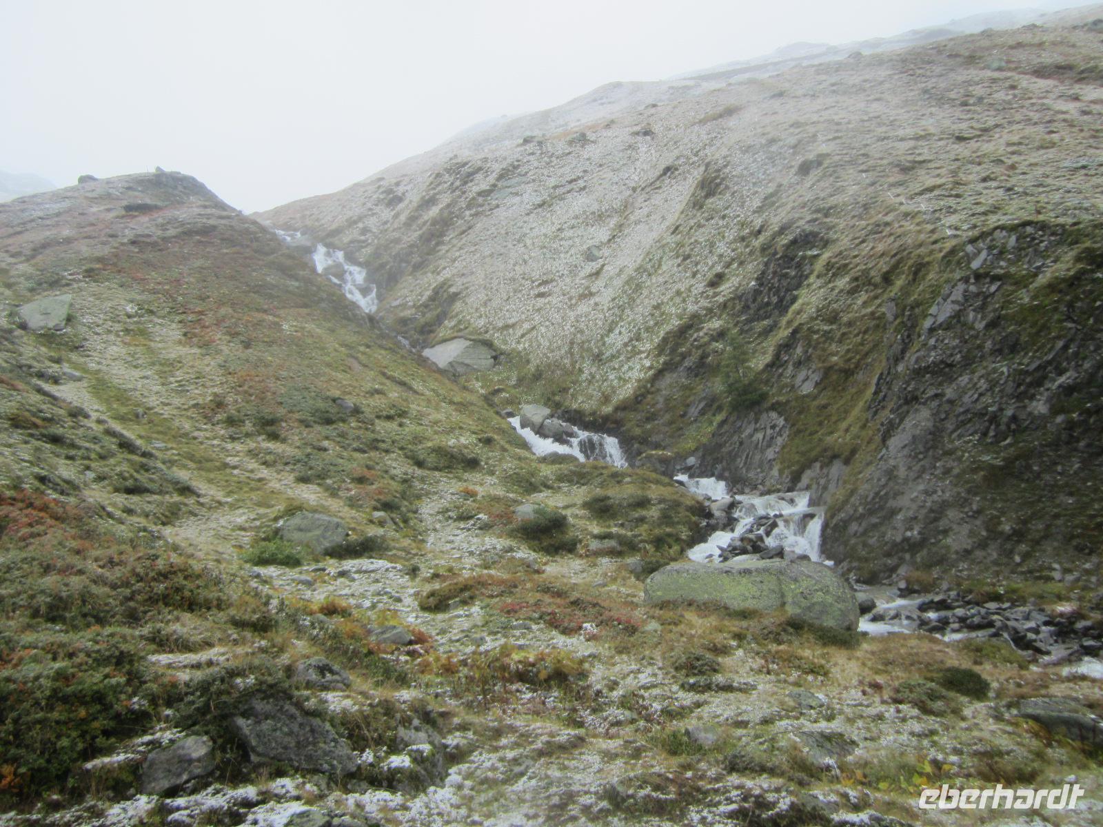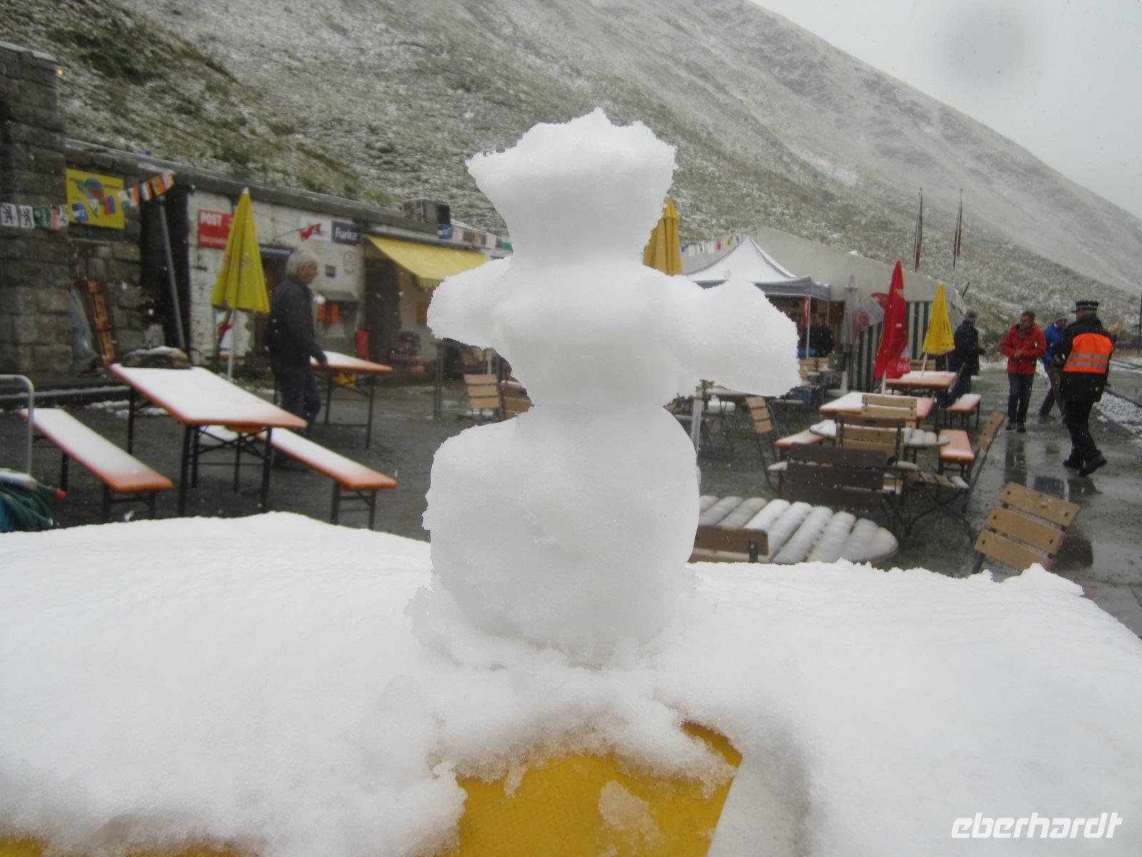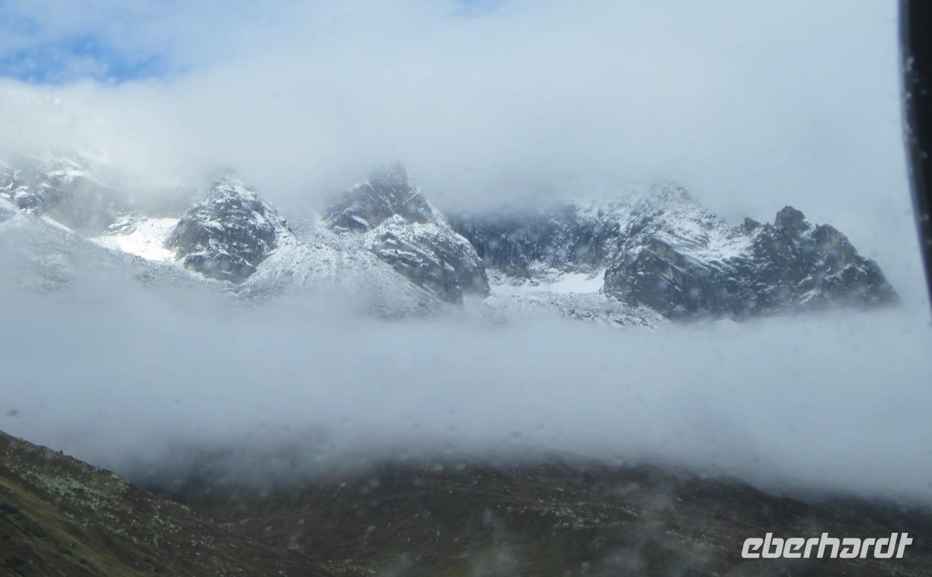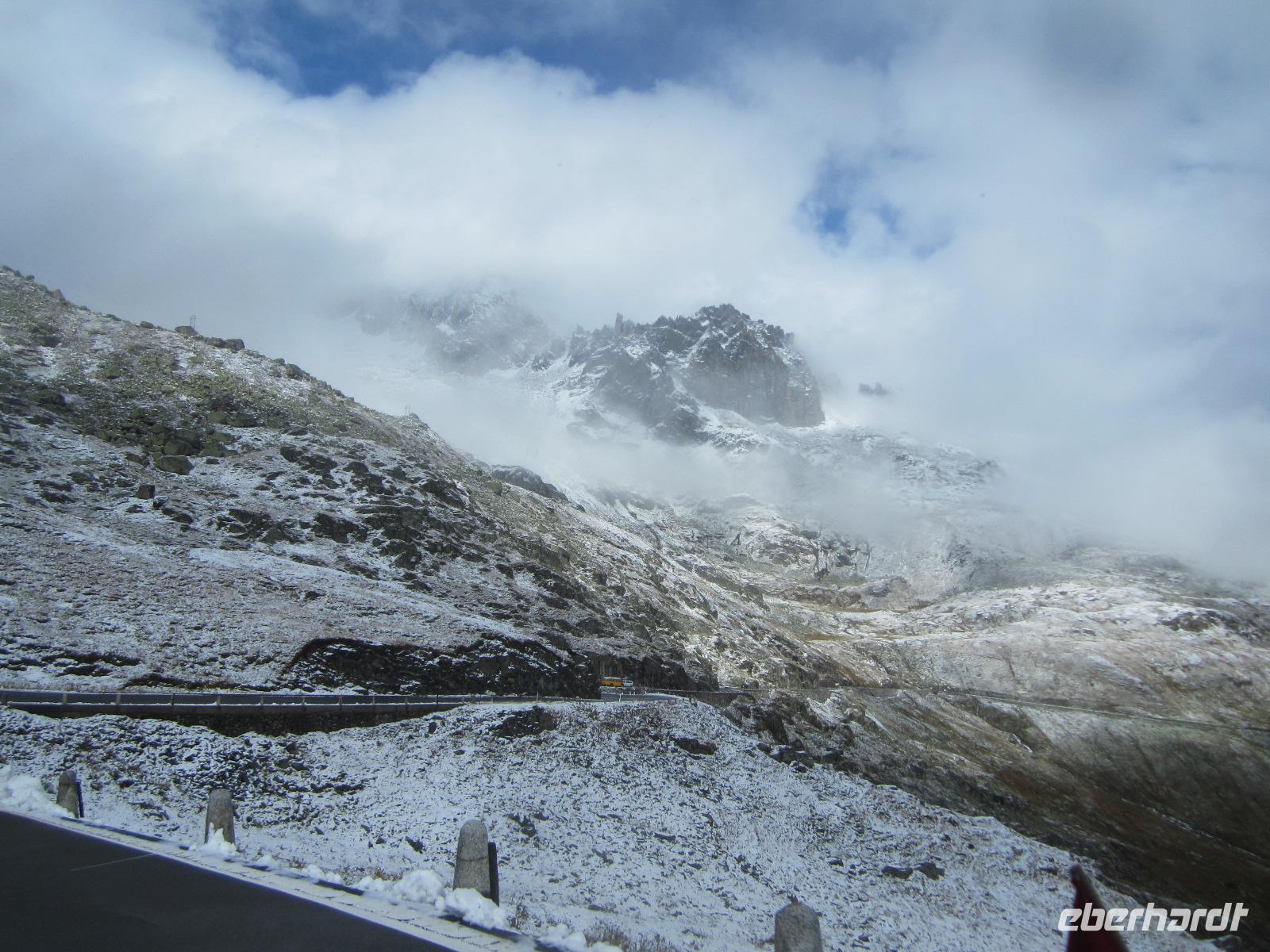 werden wir nicht nur mit Schnee sondern auch mit einen Aperto überrascht. Zum Wohl und auf eine gute Fahrt. Nach dem Durchqueren des Tunnels haben wir nur einen kurzen Blick auf die Furka-Passstraße. Der Rhonegletscher, der sich 1900 noch bis nach Gletsch zog ist während unserer Fahrt mit der Bahn nicht zu erkennen. Die Strecke Gletsch bis Oberwald wurde für die Dampfbahn erst 2010 eröffnet und in Oberwald angekommen wartet schon Reiner auf uns. Zurück fahren wir mit dem Bus über den Furkapass wir haben noch eine Überraschung für die Dampfbahnenfans. Wir sind eingeladen zu einer Depotführung der Furka-Dampfbahn. Ein Erlebnis der besonderen Art. Es regnet weiter und wir fahren zurück ins Hotel entlang der Schöllenschlucht und der Autobahn wieder nach Flüeli Ranft.