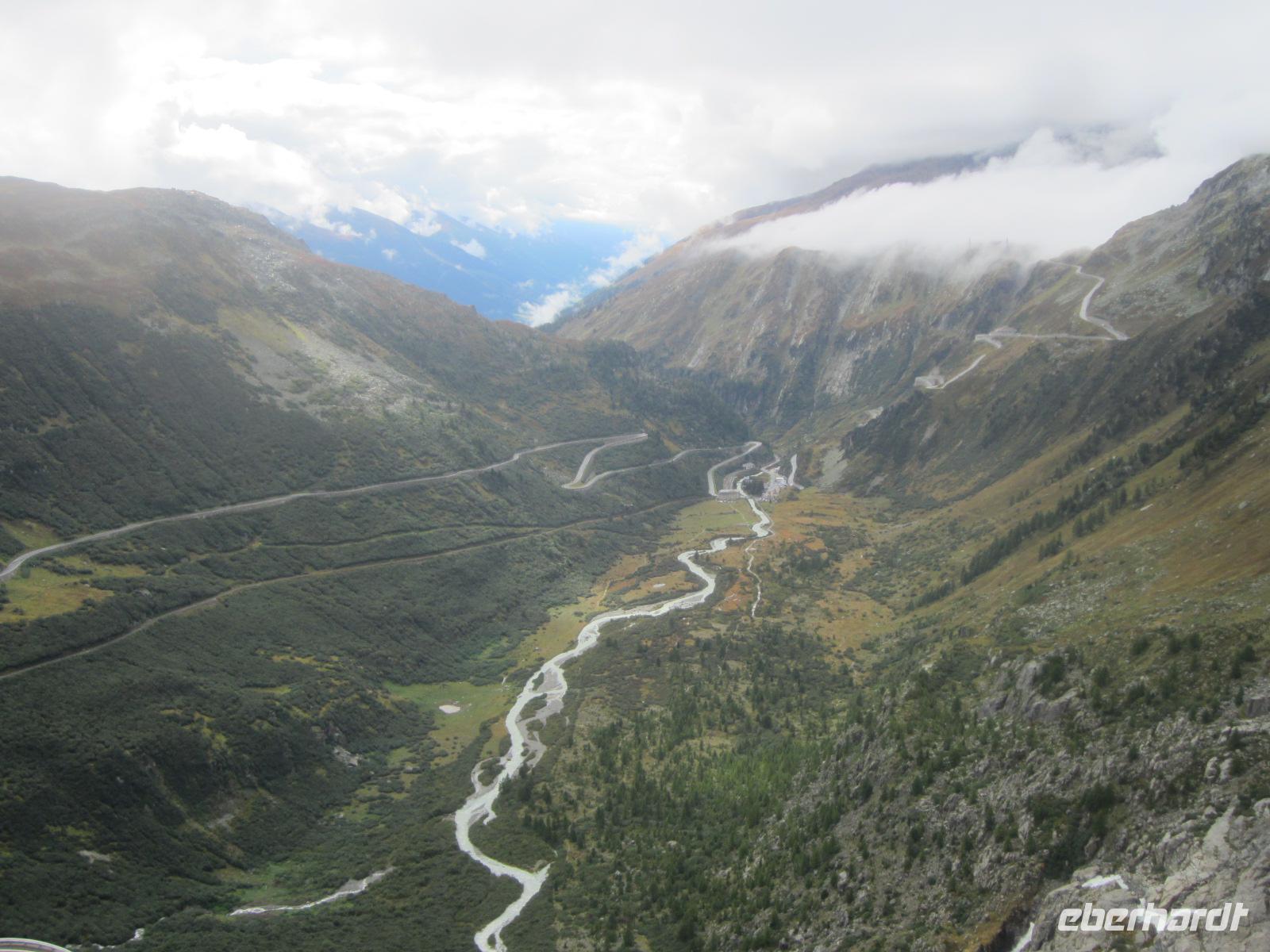 Heute heißt es zeitig aufstehen. Aber die Fahrt mit der Furka-Dampfbahn ist es wert. Bevor es so weit ist, haben wir eine landschaftlich schöne und interessante Fahrt vor uns. Hoffentlich hört es auf zu regnen.