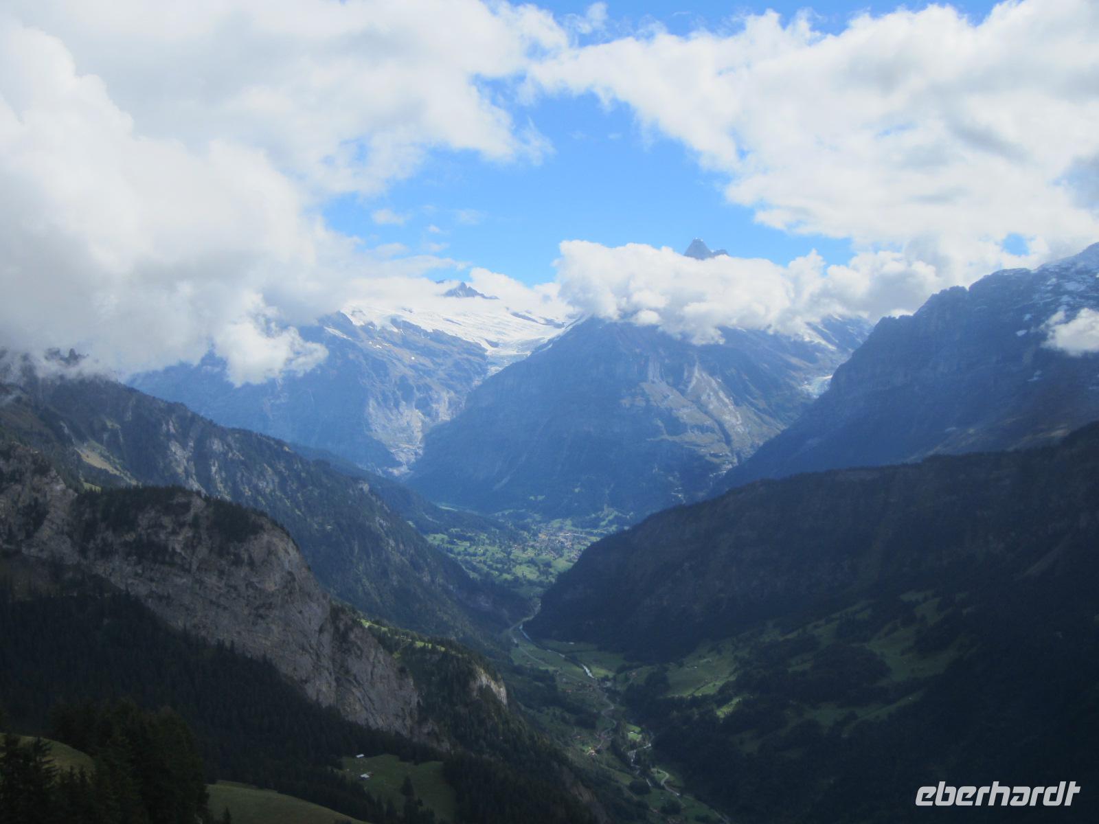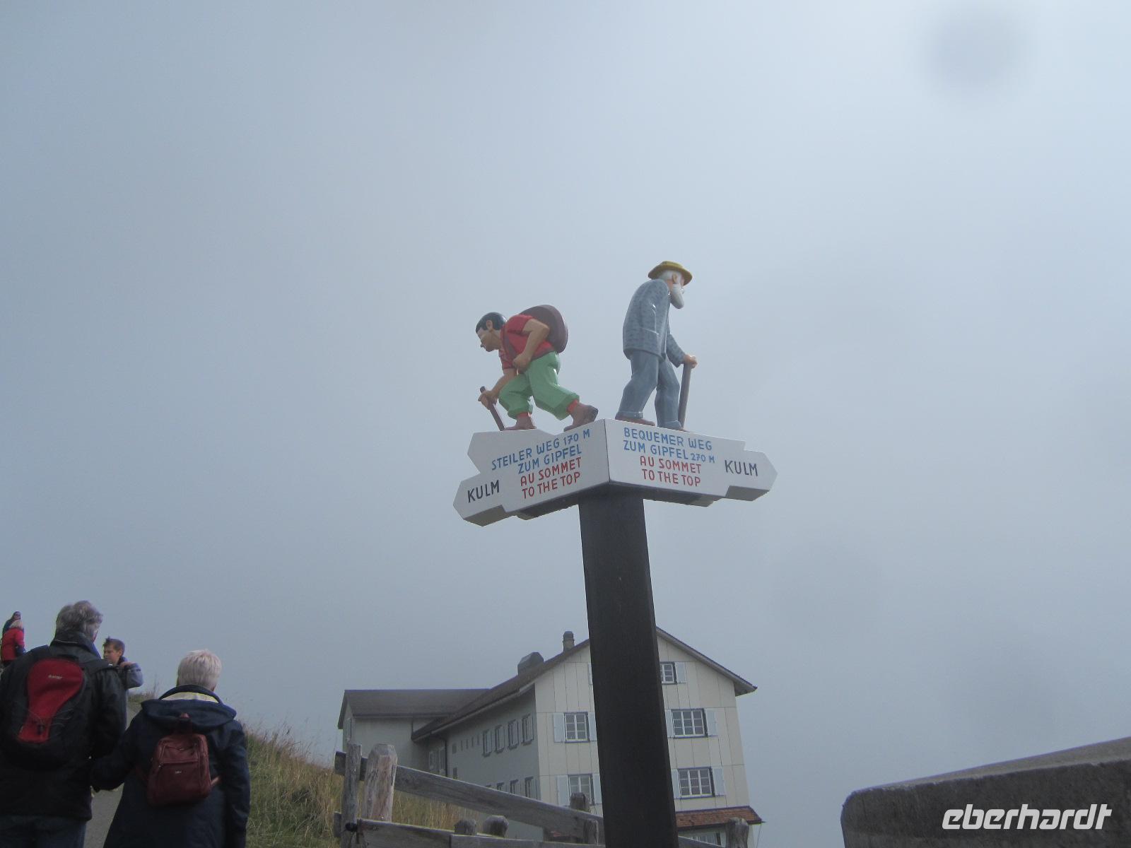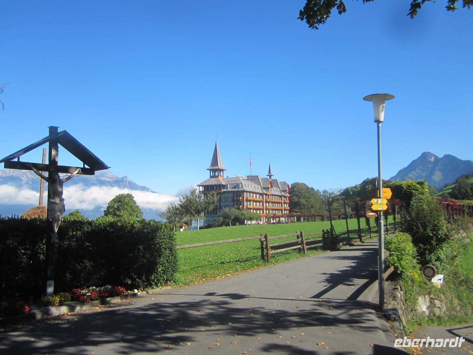 Heute haben wir die erste Dampfbahn in unserem Programm, mit der wir fahren werden. Es ist die Brienzer-Rothornbahn. Dazu fahren wir mit dem Bus über den Brünigpass in das Aare -Tal. Schon von Weitem sehen wir den Brienzer See. Brienz der Hauptort ist Zentrum der Schweizer Holzschnitzkunst. Auch die Schweizer Geigenbauschule befindet sich in Brienz. Um einen Eindruck der Schweizer Holzkunst zu erhalten, besuchen wir die Holzschnitzerei "Kirchhofer AG" an der Hauptstraße. Einige Souvenirs werden gekauft und danach fahren wir zum Bahnhof. Wie wird das Wetter heute werden? Mit Mütze und Handschuh ausgerüstet starten wir unsere Fahrt mit der BrienzRothornBahn. 7,6 km ist die Strecke lang und eine Höhendifferenz von 1678m muss die Bahn überwinden. Uns erwartet eine Stunde Bahnfahrt mit Wind und vielen Wolken. Die Erfahrung mit BrienzerRothornBahn auf den Berg "zu klettern" bleibt ein tolles Erlebnis. Auf dem Berg angekommen stehen wir im Nebel. Aber Dank Eberhardt-Travel sind wir zu einem Mittagessen ins Restaurant Rothorn-Kulm eingeladen. Serviert werden Älplermagronen. Eine Erklärung ist hier schon notwendig. An dieser Stelle noch einmal.- Uns wird ein Teller mit Teigwaren, Kartoffeln, Rahm und Käse serviert. Das schmeckt schon so sehr gut. Auf den Tischen steht aber noch Apfelmus, und der muss auch noch auf den Teller gegeben werden. Für viele etwas ungewohnt aber durchaus lecker. Und woher kommt dieser Name? Einmal Älpler das sind die Bewohner der Alpen und die Magronen leiten sich von den italienischen Makkaroni ab. Dieses Mittagessen wird uns in guter Erinnerung bleiben. Nach dem Mittag fahren wir zurück mit der Bahn. Es regnet ununterbrochen. Aber die Dampfbahn ist in jedem Fall ein tolles Erlebnis. In Brienz wieder angekommen. Fahren wir entlang des Brienzersees nach Interlaken. Wir fahren mit den Bus durch Interlaken und sehen bei dieser Gelegenheit den Bahnhof Ost, den Hausberg HarderKulm, die Höhenmatte, das Casino, die vielen Hotels, die Aare, den Bahnhof West und noch einen Teil von Unterseen. Eine schöne und gleichzeitig interessante Fahrt durch die Stadt.