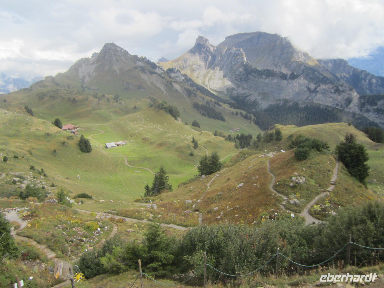 Heute fahren wir mit dem Nostalgiezug zur Schynige Platte. Zuerst geht es mit dem Bus nach Wilderswil. Hier steigen wir in die Zahnradbahn die schon 1893 eröffnet wurde. 55 Minuten fahren wir zur 1987 m hoch gelegenen Schynige Platte. Während der Fahrt haben wir grandiose Blicke zum Thunersee. Am Bahnhof angekommen spazieren wir gemeinsam Richtung Berghotel an dem uns schon Alphornbläser empfangen. Danach wandern einige von uns zur Daube oder zum Alpengarten. Dieser ist ein ganz besonderer Botanischer Garten. Als einer von ganz wenigen zeigt er die Pflanzen, die in der Schweiz oberhalb der Waldgrenze vorkommen. Insgesamt sehen wir rund 600 Arten.
