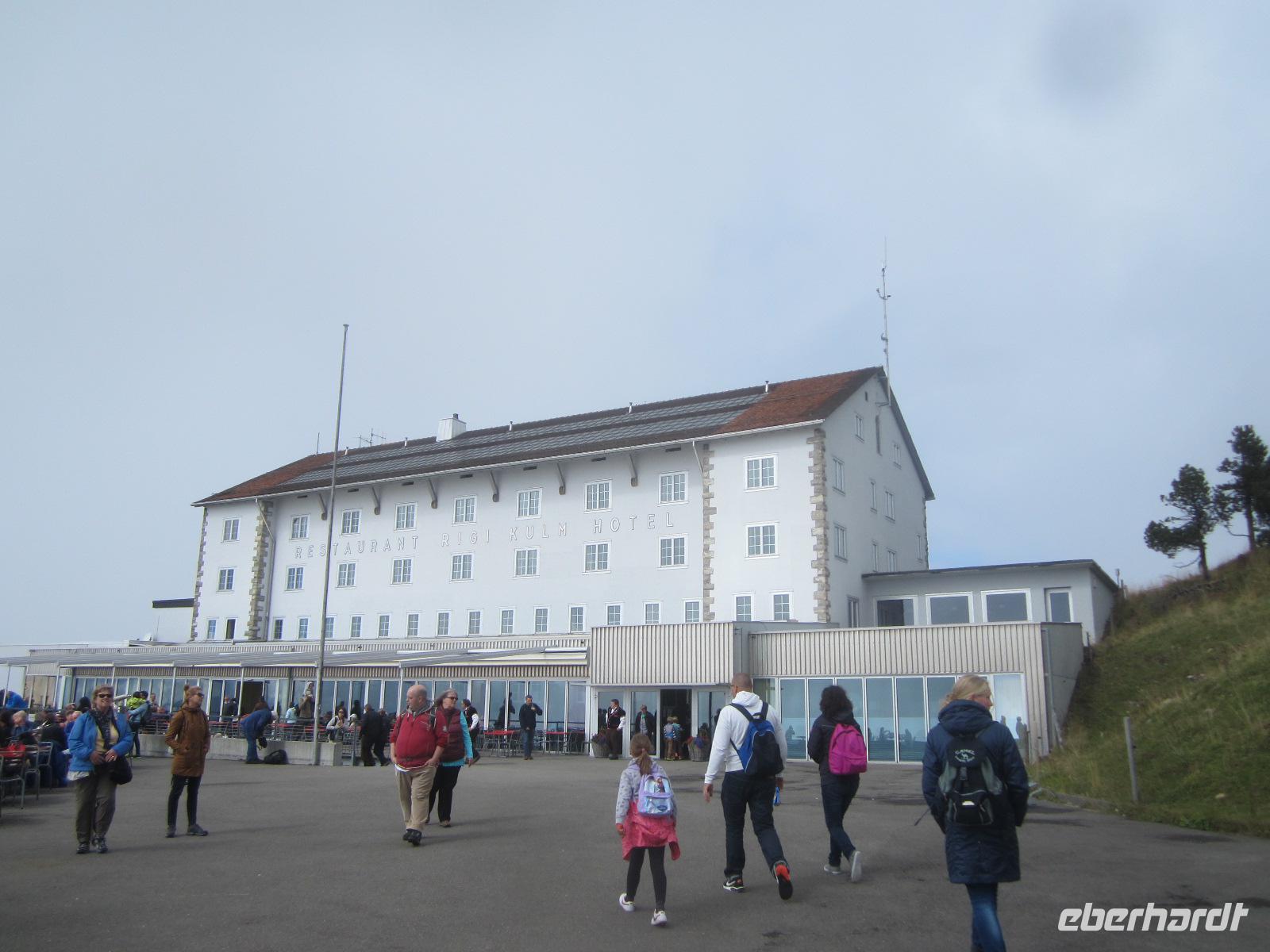 Die Fahrt kann beginnen. Ein besonderes Erlebnis, da es die erste Bergbahn Europas war. Der Ingenieur Niklaus Riggenbach war der Erfinder, dass Züge mittels Zahnrad-und Zahnstange über Steigungen führen. Seine Motivation drückte er so aus: "Ich will alles Volk auf die Berge führen, damit sie alle die Herrlichkeit unseres erhabenen Landes genießen können" 1871 begann dann der offizielle Bahnbetrieb. Heute fahren wir ca. 40 Minuten auf die Rigi. Wir sind sehr zufrieden mit dem Wetter, wenn auch nicht alle Berge zu erkennen sind.15.00 Uhr fahren wir jetzt mit der Elektrobahn nach Vitznau zurück.Reiner wartet schon auf uns. Doch