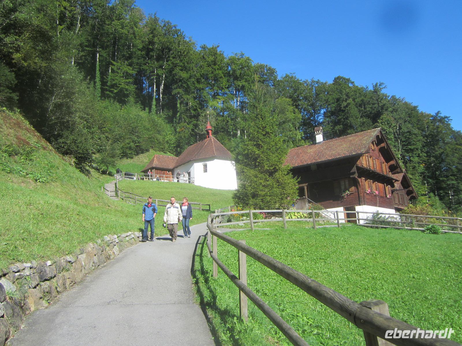 Heute ist unser letzter Tag in der Schweiz und den verbringen wir ganz ruhig. Auf dem Programm haben wir heute Bruder Klaus, der einzige Heilige und Schutzpatron der Schweiz. Er ist in Flüeli Ranft geboren und hat mit seiner Familie hier gewohnt bis er sein Leben änderte. Wir haben eine Führung im Geburts-und Wohnhaus. Dabei wurde uns das Leben von Bruder Klaus auf eine sehr besinnliche aber sehr angenehme Art und Weise vermittelt. Spontan haben im Anschluss dieser Führung einig den Fußweg in den Ranft zur Zelle und Kapelle unternommen.