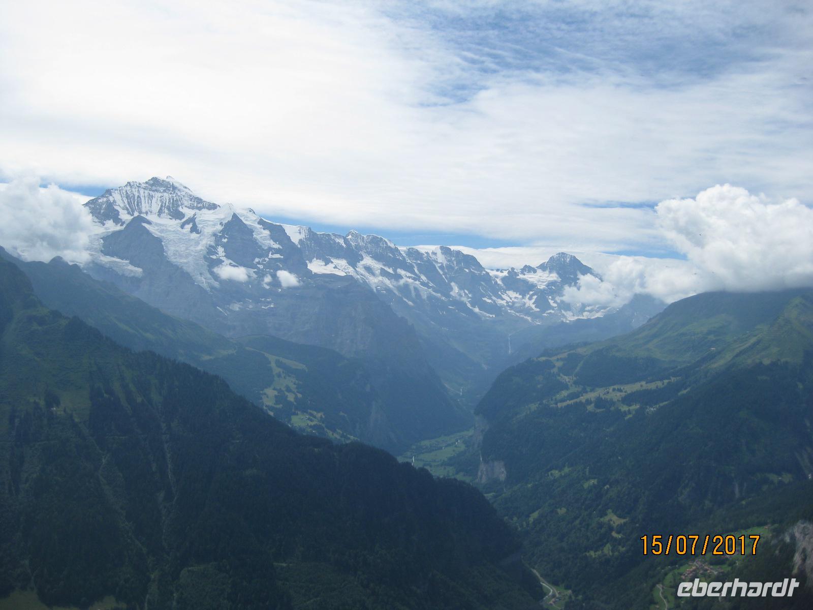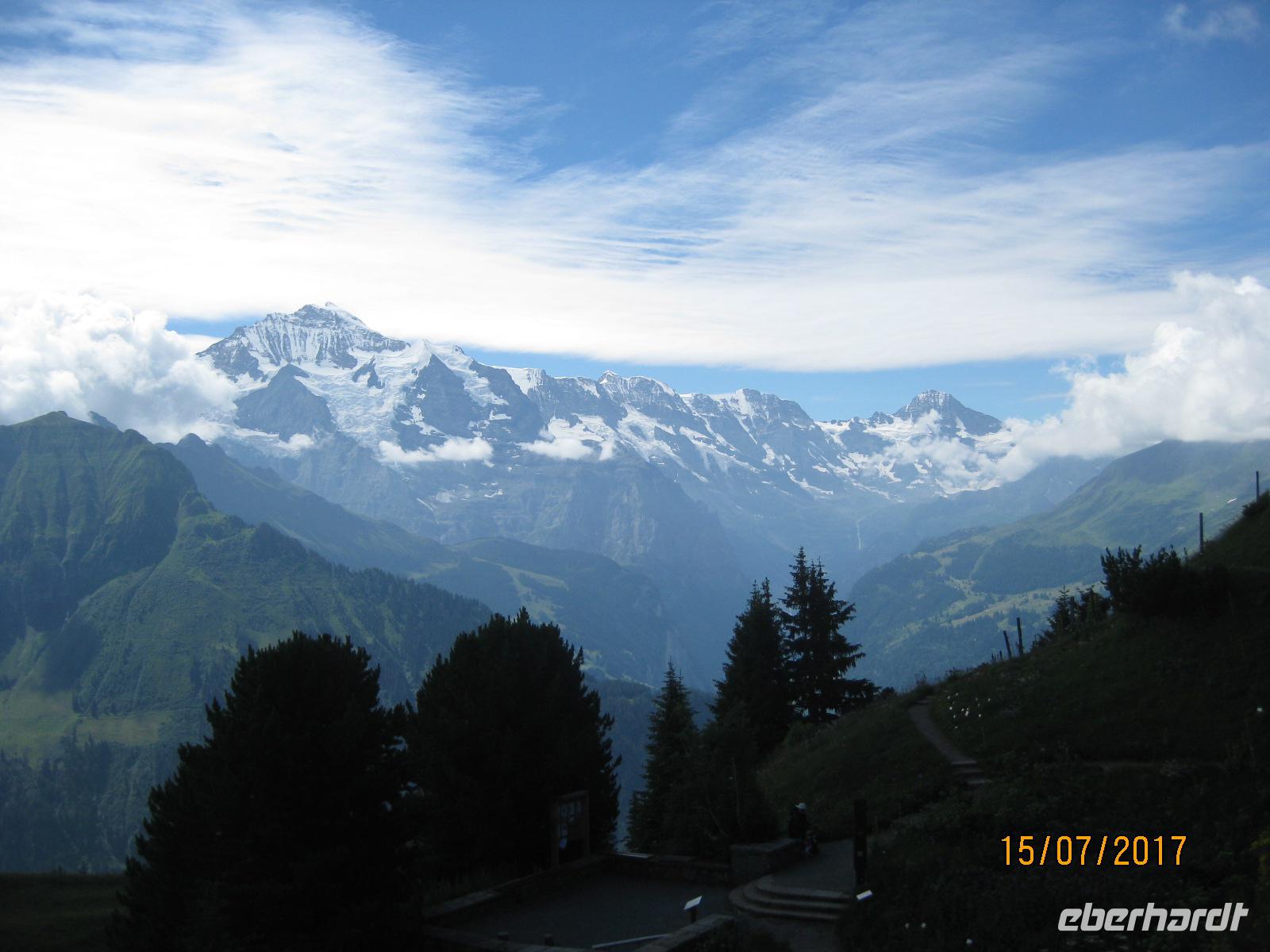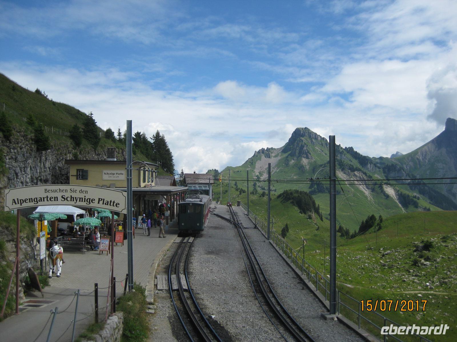 Heute erwartet uns bereits unser drittes Bahnerlebnis und wir können es kaum erwarten. Strahlender Sonnenschein begrüßt uns bereits am Morgen und verspricht gute Sicht. Zunächst führt unsere Route erneut ins Berner Oberland nach Wilderswil. Hier besteigen wir die liebevoll gepflegte, nostalgische Bergbahn und fahren auf die Schynige Platte auf 2.100 Meter. An der Bergstation angekommen, unternehmen wir zunächst einen Rundgang durch den sehr schön angelegten Alpengarten. Über 650 verschiedene Arten sind hier gepflanzt und entlang eines Weges beschriftet. Traumhafte Aussichten genießen wir zudem in Richtung des Dreigestirns mit Eiger, Mönch und Jungfrau sowie über das Lütschental und Lauterbrunnental. Am Nachmittag kehren wir nach Wilderswil zurück und fahren in den nahegelegenen Ort Interlaken. Interlaken ist mittlerweile ein international anerkannter Ferienort und wichtiger Ausgangspunkt auf das Jungfraujoch. Jeder von uns unternimmt einen kleinen Spaziergang durch den mondänen Ferienort. Am späten Nachmittag kehren wir zurück zum Hotel.