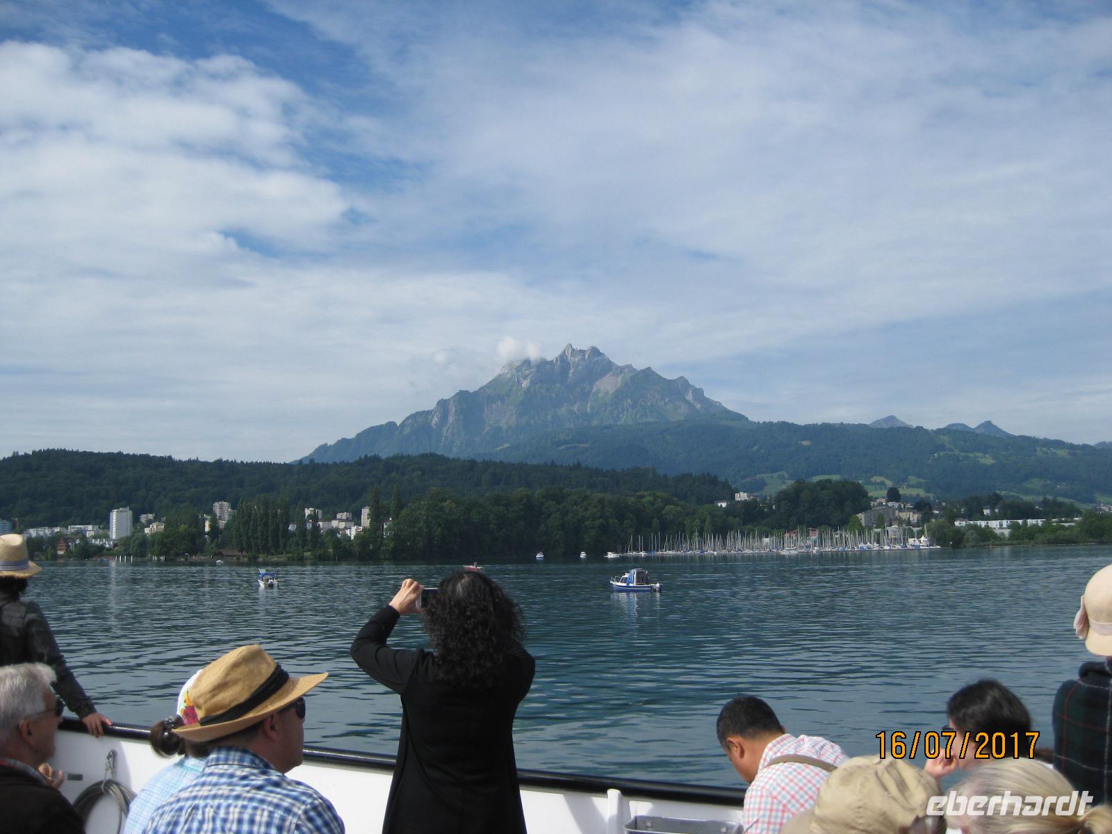 Ebenfalls wieder von der Sonne geweckt, führt unser Ausflug heute zunächst nach Luzern. Von hier aus fahren wir mit einem nostalgischen Raddampfer bis Vitznau. Vom Wasser aus bestaunen wir das Bergpanorama um uns. Gut zu sehen sind die Rigi, der Pilatus, das Stanserhorn sowie der Bürgenstock. In Vitznau steigen wir um in die Vitznau-Rigi-Bahn und erklimmen die Königin der Berge. Der historische Zug windet sich mit der Dampflok ganz gemächlich durch Wälder und Wiesen auf die Rigi in 1.800 Metern Höhe. Wir genießen eine fantastische Sicht auf die Zentralschweizer Seen und die Berge der Berner Alpen. Nach dem wir den Ausblick ausgiebig genießen konnten, fahren wir mit dem elektrisierten Zug über Rigi-Staffelhöhe und Rigi-Kaltbad zurück nach Vitznau. Die Rückfahrt erfolgt immer entlang des Ufers des Sees bis nach Küssnacht. Hier begeben wir uns auf die Spuren von Wilhelm Tell und legen einen kleinen Zwischenstopp an der Hohlen Gasse ein. Weiter entlang des Sees erreichen wir wieder Luzern und streifen auch auf unserer Rückfahrt noch einmal die wunderschöne Stadt mit ihrer berühmten Kapellbrücke.