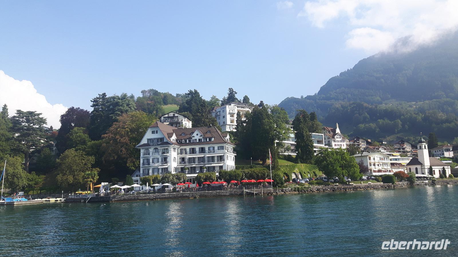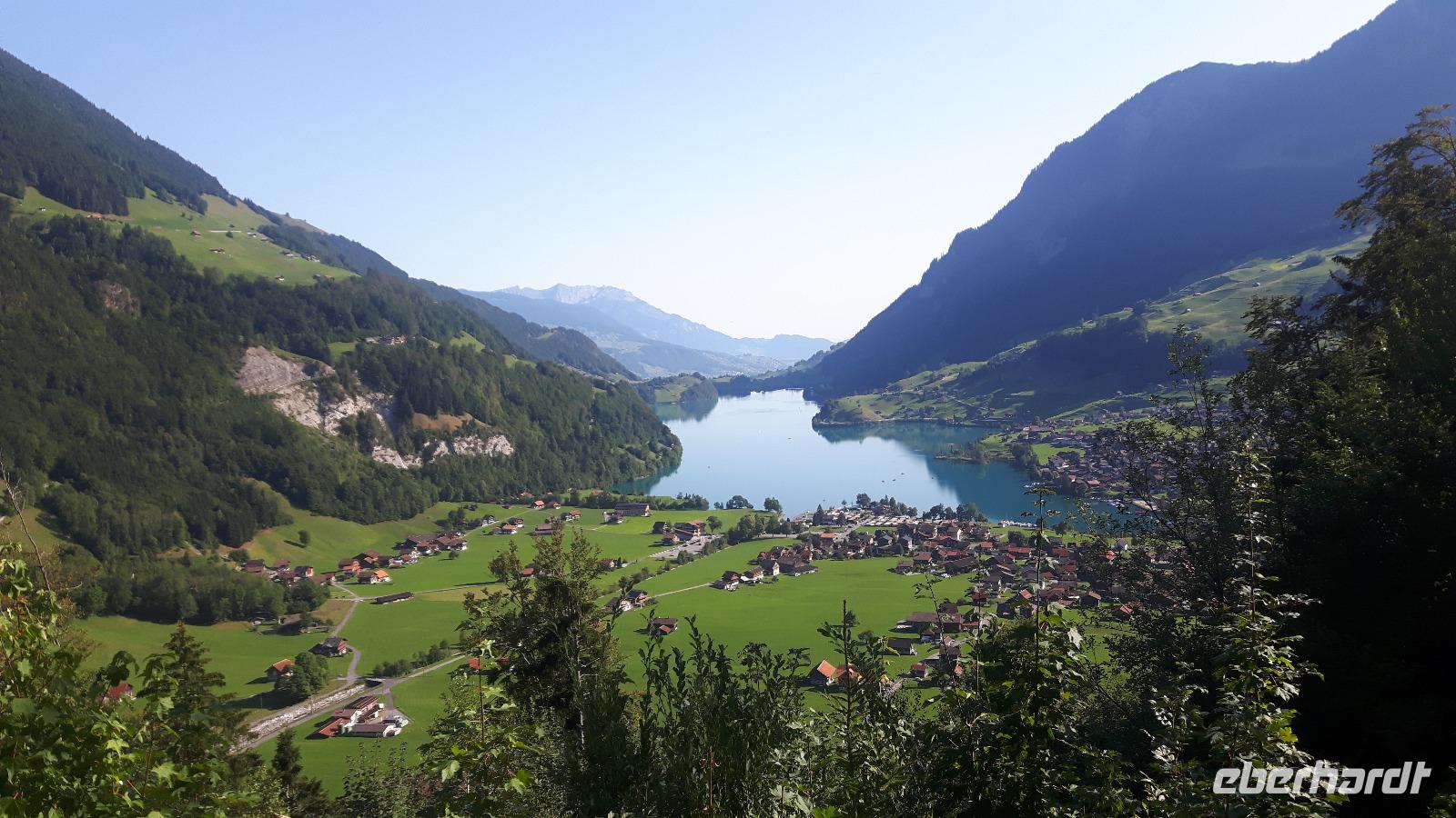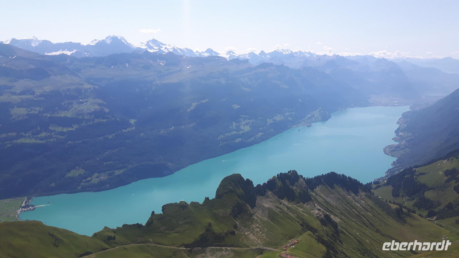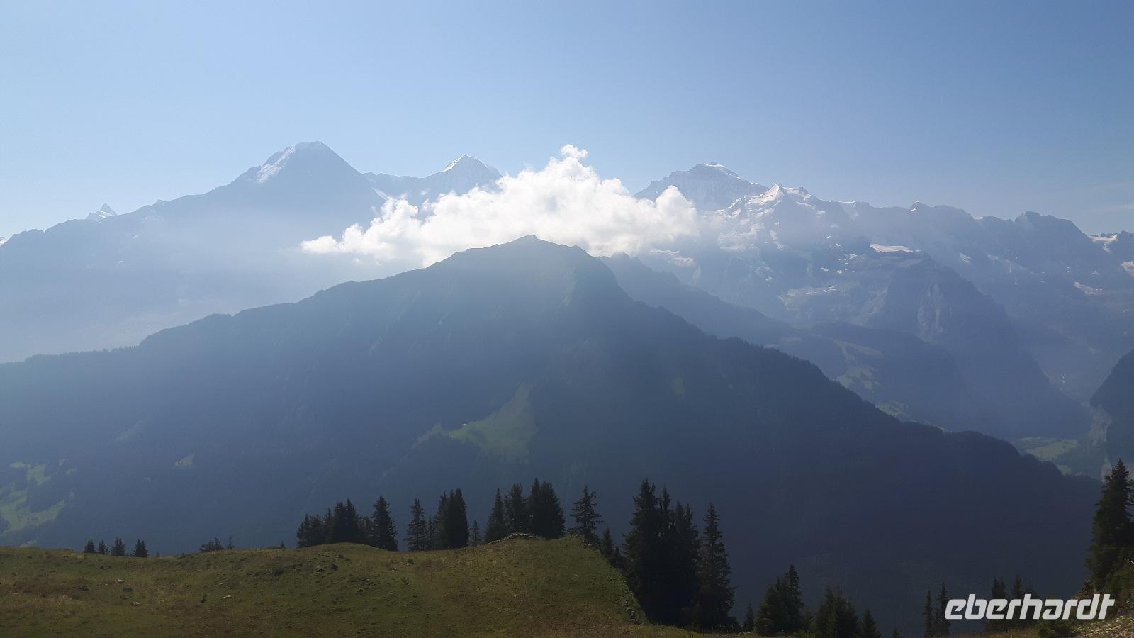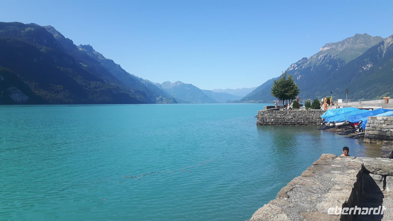 Die Sonne lachte und ein wiederum schöner Tag lag vor uns! Zunächst fuhren wir über den Brünigpass ins Haslital und weiter über die südlich des Brienzer Sees entlang führende Autobahn bis Wilderswil, dem Ausgangspunkt unserer Zahnradbahn-Fahrt auf die Schynige Platte. Wer die Schynige Platte mit der Zahnradbahn besucht, fühlt sich wie in der "Belle Epoque". Die Nostalgiebahn legt die reichlich sieben Kilometer lange Strecke in 50 Minuten zurück. Die Holzbänke in den Zugwagen und das Rollmaterial aus dem 19. Jahrhundert erinnern an längst vergangene Zeiten. Während der Fahrt und auf dem Berg faszinierten uns eine wunderschöne Sicht auf Eiger, Mönch und Jungfrau! Oben angekommen, hatten wir die Qual der Wahl, denn es gibt zahlreiche Wandermöglichkeiten - die meisten Gäste wanderten zum Aussichtspunkt "Daube", denn von hier aus beeindruckten das Rundum-Panorama auf die schöne Seenlandschaft von Brienzer- und Thunersee bzw. die Jungfrau-Region! Der Nachmittag stand ganz im Zeichen von Interlaken, dem touristischen Zentrum des Berner Oberlandes. Der Ort liegt auf einer Schwemmebene zwischen dem Thunersee und dem Brienzersee. Überragt von den drei mächtigen Bergen Eiger, Mönch und Jungfrau ist der Ferienort Ausgangspunkt für zahlreiche Aktivitäten. Bereits zu Beginn des 19. Jahrhunderts wurde Interlaken für seine eindrückliche Bergwelt berühmt und von bekannten Zeitgenossen bereist, darunter Johann Wolfgang von Goethe und Felix Mendelssohn Bartholdy. Der Erfolg als Tourismusort wurde durch den Ausbau der Berner Oberland Bahnen 1890 und der Jungfraubahn 1912 noch angekurbelt. Entlang der Norduferstraße des Brienzer Sees und über den Brünigpass gelangten wir am frühen Abend zum Hotel zurück.
