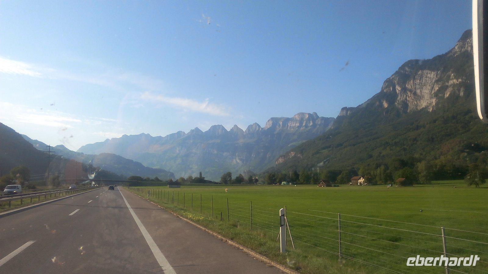 08.00 Uhr beginnt unsere Heimreise. Für unsere Rückreise haben wir uns für die Strecke entschieden, die wir auch bei der Anfahrt gefahren sind. Wir haben auch heute eine schöne Sicht und werden uns den Vierwaldstätter See, Zürichsee und den Walensee noch einmal bei Sonne ansehen. Am Grenzübergang HohenemsI/Dipoldsau verlassen wir unser Urlaubsland und fahren danach die gewohnte Strecke entlang der Autobahn nach Dresden.Für unseren Fahrer Holger und mir, Ihrer Reiseleiterin, bleibt am Ende einer Reise nur der Wunsch, dass die Reise für Sie ein Erlebnis war, sich ihre Erwartung erfüllt hat und Sie gern an die Reise zurückdenken. An dieser Stelle möchte ich mich bei der Fam. Salvequart für die Beurteilung der Reise bedanken. Wir hatten sehr gutes Wetter und Sie waren wirklich eine dufte Gruppe. Vielen Dank