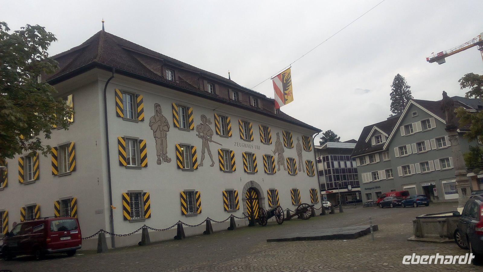 Gegen Mittag beginnen wir dann unseren Ausflug. Wir fahren nach Flüelen. Biegen aber noch einmal Die Bahn steht schon bereit und für uns sind wieder Plätze reserviert. Unserer Zugbegleiter der SBB begrüßt uns und los geht es mit der Bahn auf einer der schönsten Strecken der Welt. In unseren exquisiten Panoramawagen. In Erstfeld sehen wir die Nordrampe der Gotthardbahnstrecke. Beeindruckend sind die Kehrtunnel auf der Strecke in den Kanton Tessin. Dabei sehen wir die auf einer Anhöhe thronende