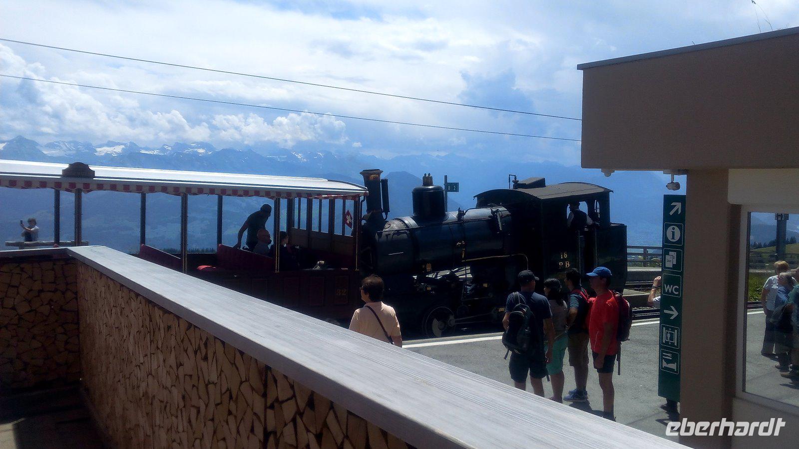 In Vitznau angekommen haben wir Zeit den Bahnhof und die Bahnen zu fotografieren. Nach einer Stunde steht die Vitznau-Rigi-Bahn bereit. Uns führt ein freundlicher Zugbegleiter zu unserem reservierten Waggon.