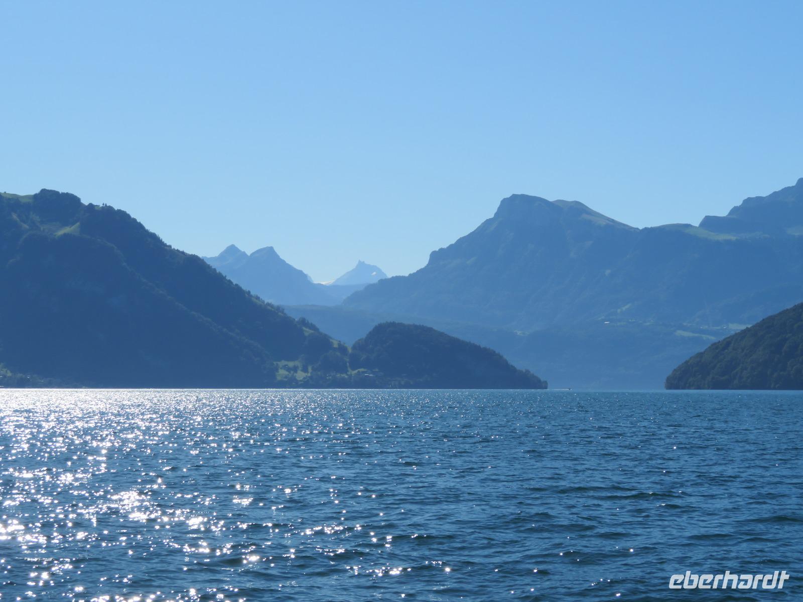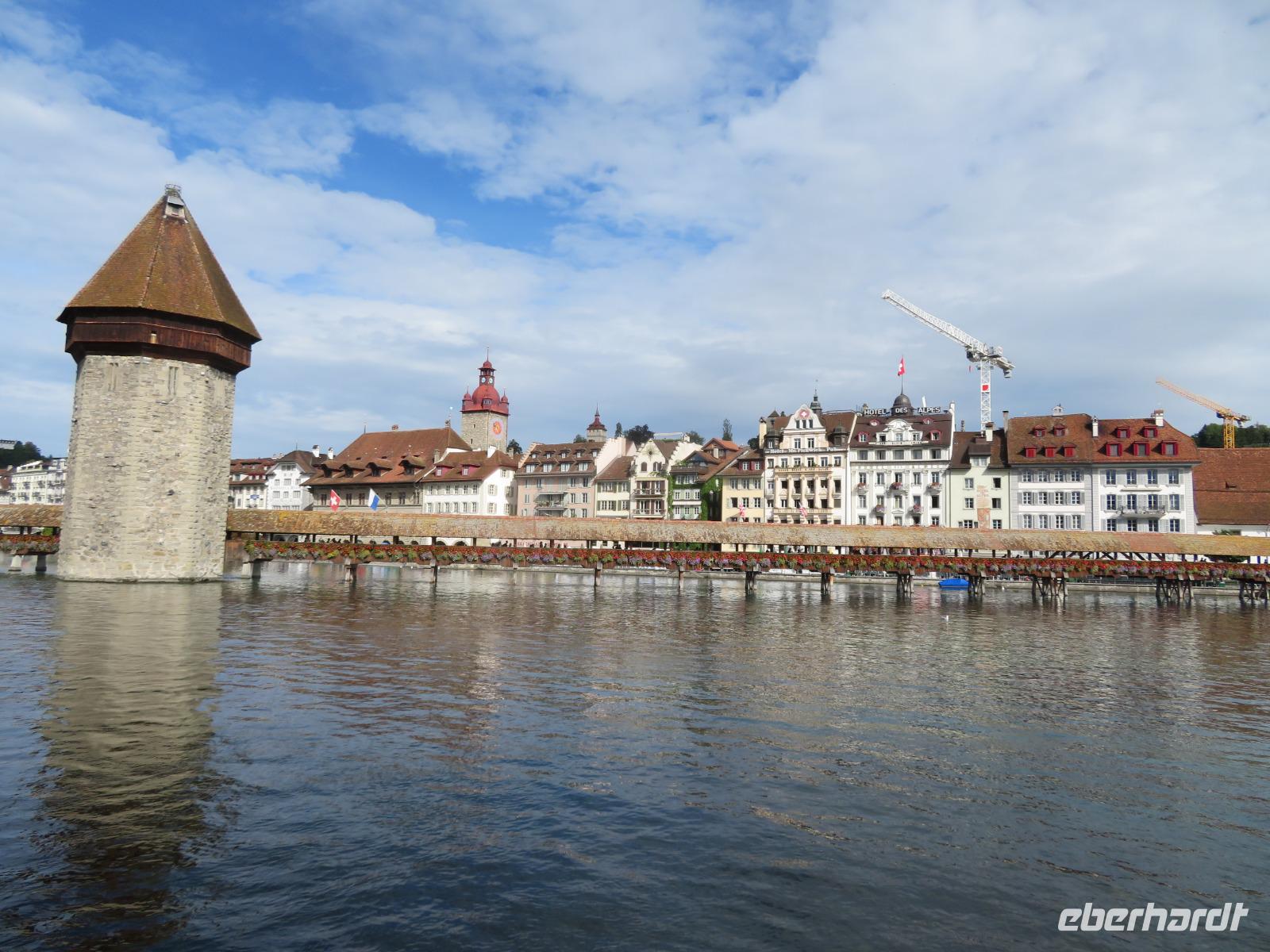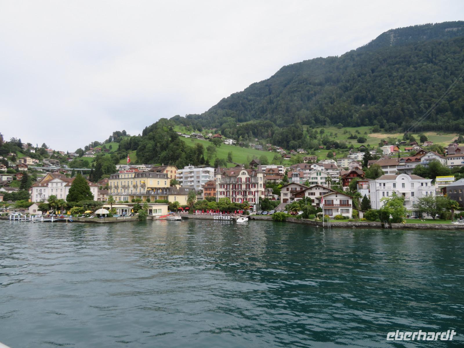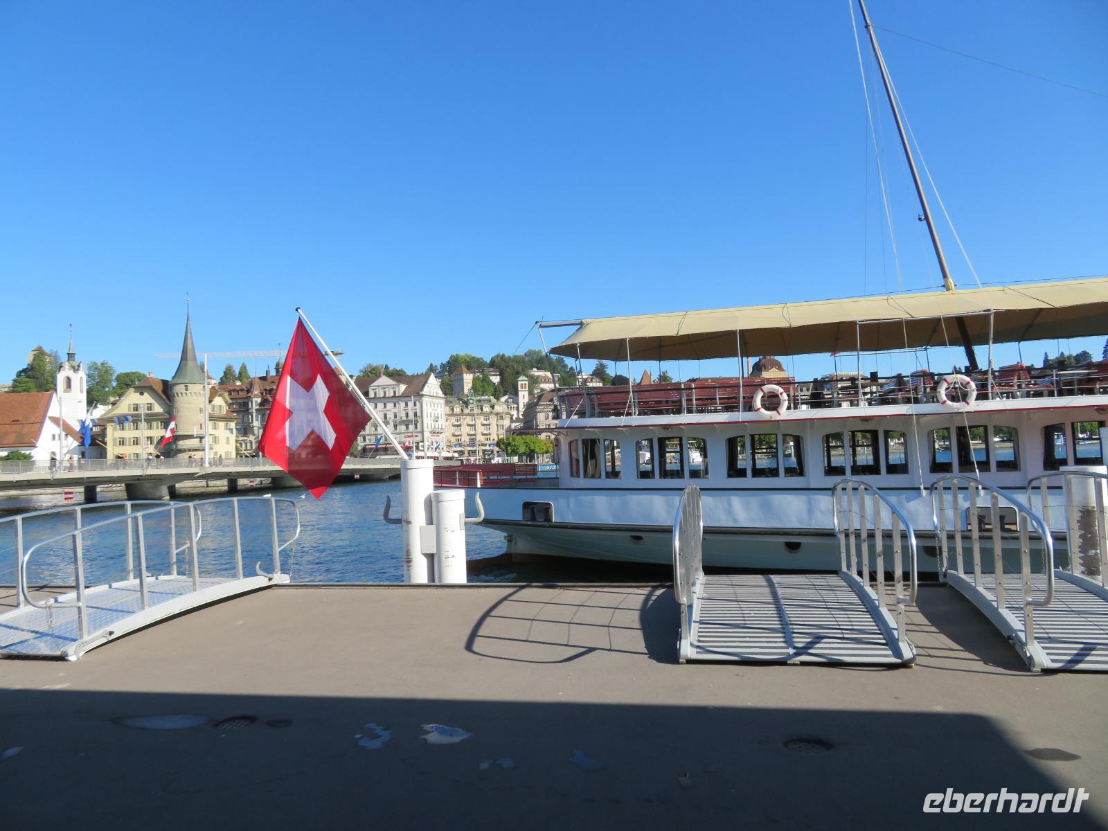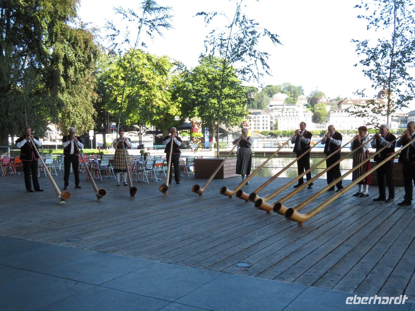 Nach dem Frühstück reisen wir mit dem Bus nach Luzern. Zunächst spazieren wir über die Kapellbrücke, das Wahrzeichen der Stadt. Wir sehen die Bilder im Giebel der Brücke und die Spuren des Brandes vom 17.08.1993. Die schönen Bürgerhäuser und das Rathaus bilden eine wunderschöne Ansicht der Stadt am Vierwaldstättersee. Unser Weg führt uns zum Fritschi-Brunnen und zum Fritschi-Haus. Fritschi mit seiner Frau sind die Hauptfiguren der Luzerner Fasnacht. Dann ist es Zeit zur Anlegestelle des Schiffes zu gehen. Wir besteigen die „Diamant", das neueste Schiff der Flotte der Vierwaldstättesee-Schifffahrts-Gesellschaft. Auf dem jachtartigen Schiff gleiten wir in der 1.Klasse über den See. Wir sehen die Rigi, den Pilatus und die Mythen. Im Urnersee entdecken wir den Schillerstein, die Rütli-Wiese, wo 1291 der berühmte Rütlischwur vollzogen wurde. Dieser gilt als Geburtsstunde der Schweiz. Weiter geht es vorbei an der Tellsplatte und der herrlichen Landschaft rund um den See nach Flüelen. Hier wartet bereits der Gotthard Panorama Express auf uns. Wir nehmen im Panoramawagen der 1.Klasse Platz und unsere Reise in den Süden beginnt. Jacqueline, die nette Reiseleiterin gibt uns viele interessante Informationen zu der imposanten Bahnstrecke. Wir bewundern die Meisterleistungen der Erbauer der Strecke mit ihren vielen Viadukten, Kehrtunneln und dem 15 Kilometer langen alten Gotthard-Tunnel. Dieser wurde nach 8jähriger Bauzeit 1880 eröffnet. Über 3.000 Arbeiter waren unter widrigen Bedingungen am Bau des für damalige Zeiten einmaligen Baues beteiligt. Wir sind begeistert. Unsere Fahrt endet in Bellinzona, der Hauptstadt des Kantons Tessin. Nach einem ganz kurzen Aufenthalt fahren wir mit dem Inter-City-Zug zurück. Jetzt führt uns die Route durch den Gotthard Basistunnel, den mit 57 Kilometern längsten Tunnel der Welt. Dieser ist 2017 eröffnet worden und stellt eine Meisterleistung des modernen Tunnelbaus dar. Nur 20 Minuten dauert die Fahrt durch den Tunnel. In Arth-Goldau erwartet uns Ingo mit dem Bus und wir fahren zum Hotel zurück. Wir sind uns einige: ein wunderschöner Tag geht zu Ende!