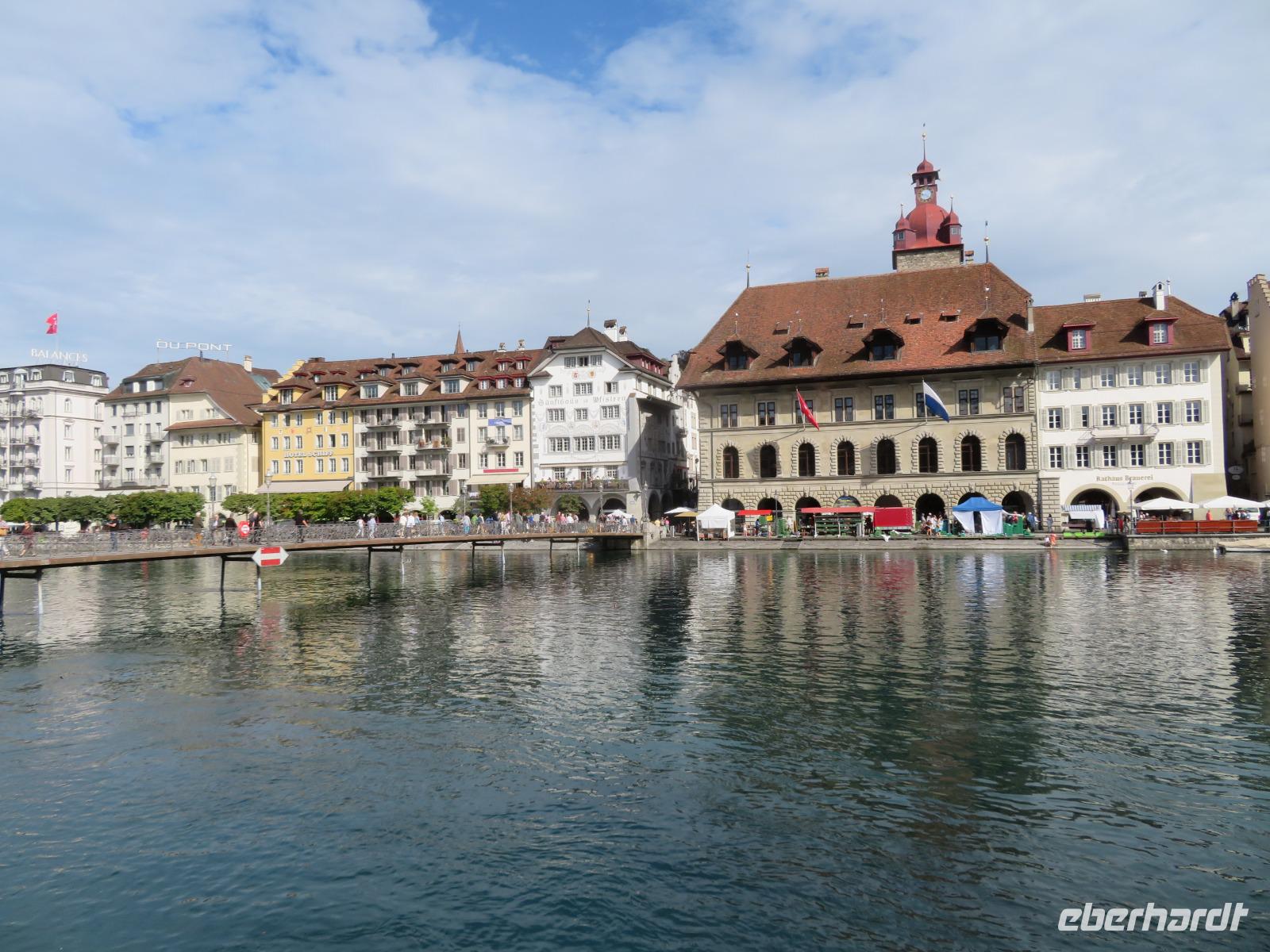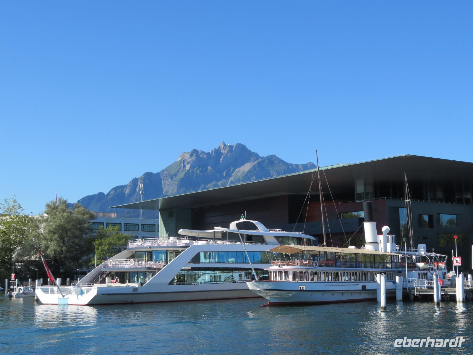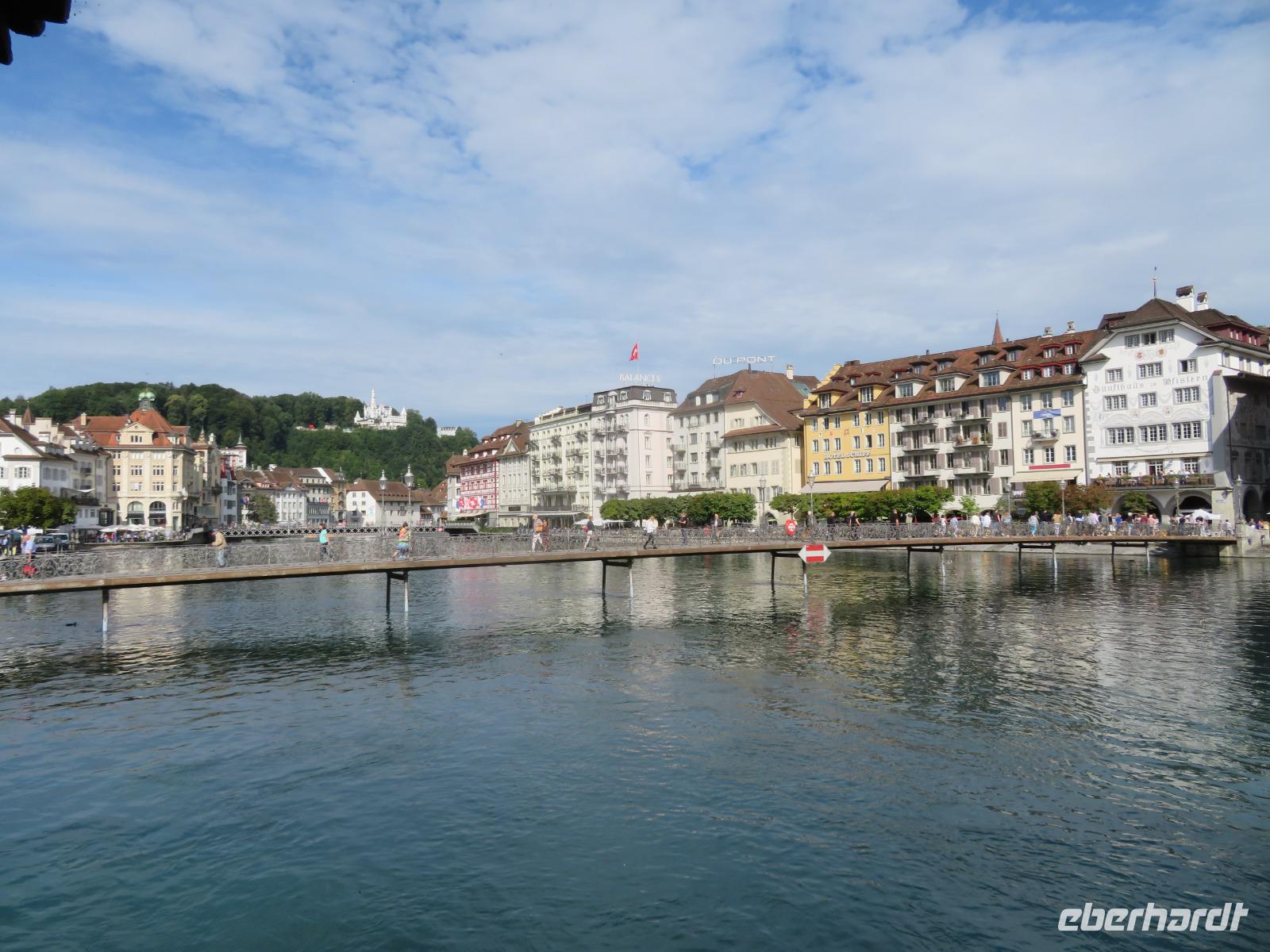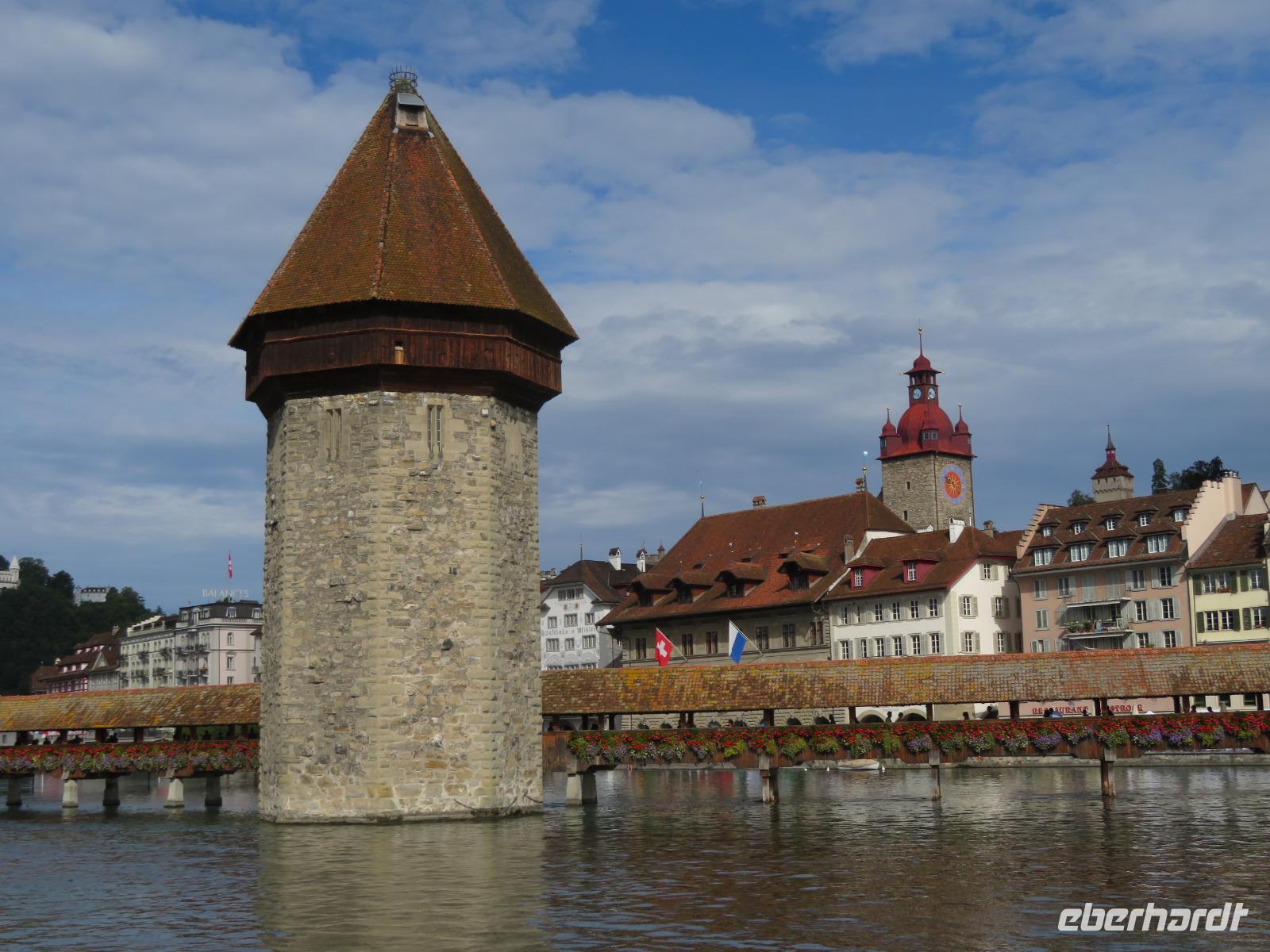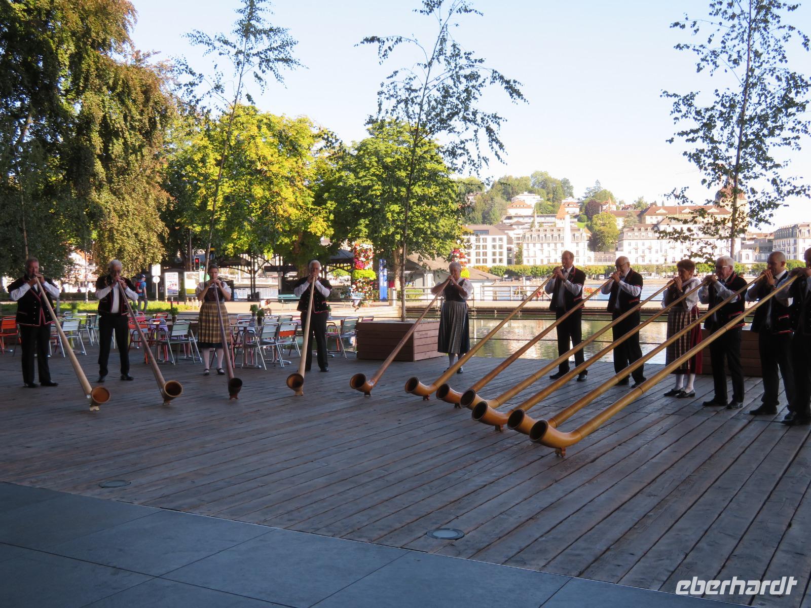Nach dem Frühstück reisen wir mit dem Bus nach Luzern. Zunächst spazieren wir über die Kapellbrücke, das Wahrzeichen der Stadt. Wir sehen die Bilder im Giebel der Brücke und die Spuren des Brandes vom 17.08.1993. Die schönen Bürgerhäuser und das Rathaus bilden eine wunderschöne Ansicht der Stadt am Vierwaldstättersee. Unser Weg führt uns zum Fritschi-Brunnen und zum Fritschi-Haus. Fritschi mit seiner Frau sind die Hauptfiguren der Luzerner Fasnacht. Dann ist es Zeit zur Anlegestelle des Schiffes zu gehen. Wir besteigen die „Diamant", das neueste Schiff der Flotte der Vierwaldstättesee-Schifffahrts-Gesellschaft. Auf dem jachtartigen Schiff gleiten wir in der 1.Klasse über den See. Wir sehen die Rigi, den Pilatus und die Mythen. Im Urnersee entdecken wir den Schillerstein, die Rütli-Wiese, wo 1291 der berühmte Rütlischwur vollzogen wurde. Dieser gilt als Geburtsstunde der Schweiz. Weiter geht es vorbei an der Tellsplatte und der herrlichen Landschaft rund um den See nach Flüelen. Hier wartet bereits der Gotthard Panorama Express auf uns. Wir nehmen im Panoramawagen der 1.Klasse Platz und unsere Reise in den Süden beginnt. Jacqueline, die nette Reiseleiterin gibt uns viele interessante Informationen zu der imposanten Bahnstrecke. Wir bewundern die Meisterleistungen der Erbauer der Strecke mit ihren vielen Viadukten, Kehrtunneln und dem 15 Kilometer langen alten Gotthard-Tunnel. Dieser wurde nach 8jähriger Bauzeit 1880 eröffnet. Über 3.000 Arbeiter waren unter widrigen Bedingungen am Bau des für damalige Zeiten einmaligen Baues beteiligt. Wir sind begeistert. Unsere Fahrt endet in Bellinzona, der Hauptstadt des Kantons Tessin. Nach einem ganz kurzen Aufenthalt fahren wir mit dem Inter-City-Zug zurück. Jetzt führt uns die Route durch den Gotthard Basistunnel, den mit 57 Kilometern längsten Tunnel der Welt. Dieser ist 2017 eröffnet worden und stellt eine Meisterleistung des modernen Tunnelbaus dar. Nur 20 Minuten dauert die Fahrt durch den Tunnel. In Arth-Goldau erwartet uns Ingo mit dem Bus und wir fahren zum Hotel zurück. Wir sind uns einige: ein wunderschöner Tag geht zu Ende!