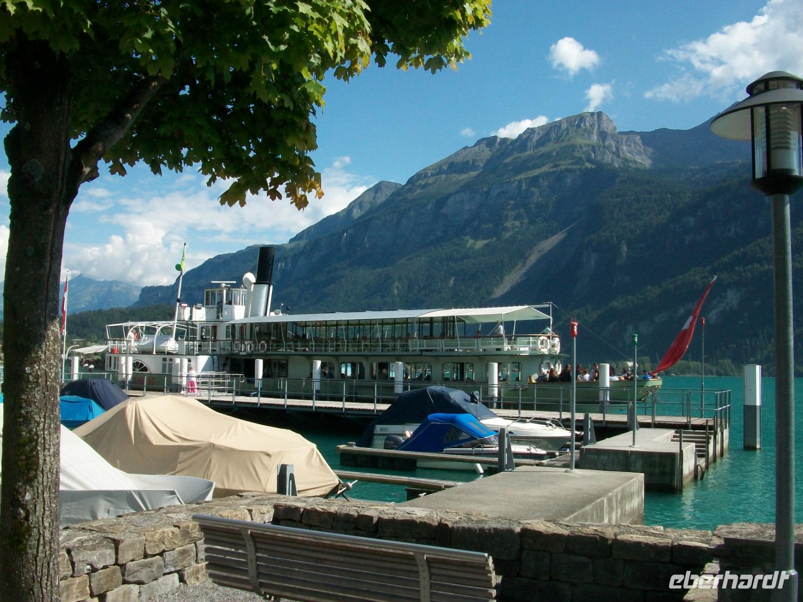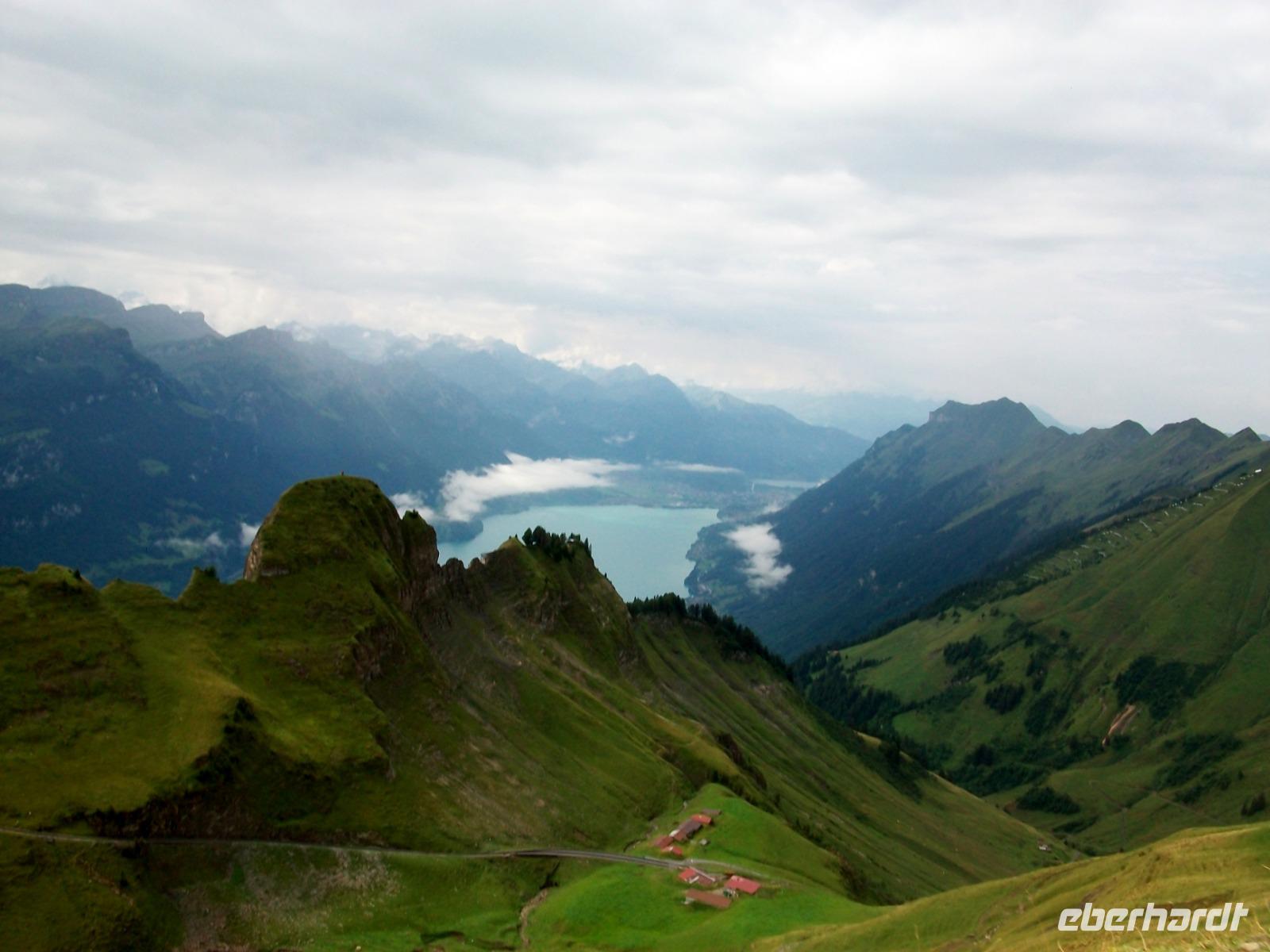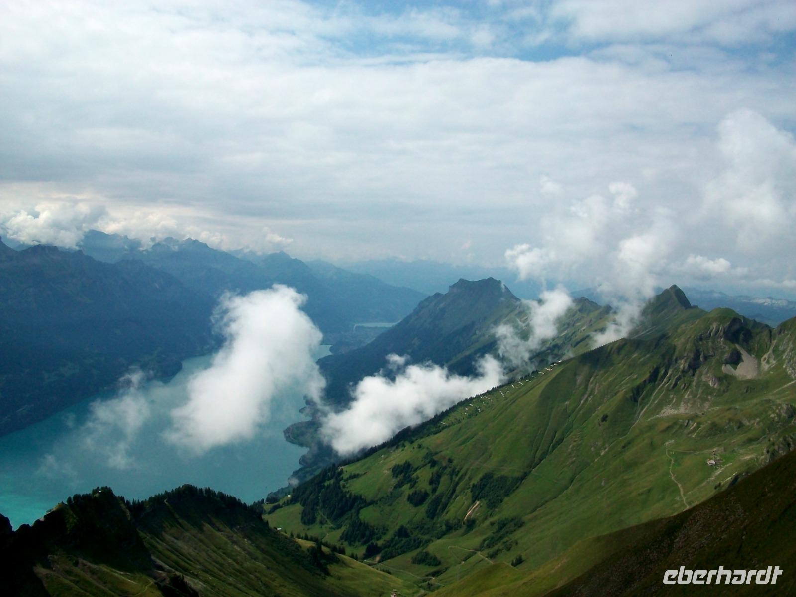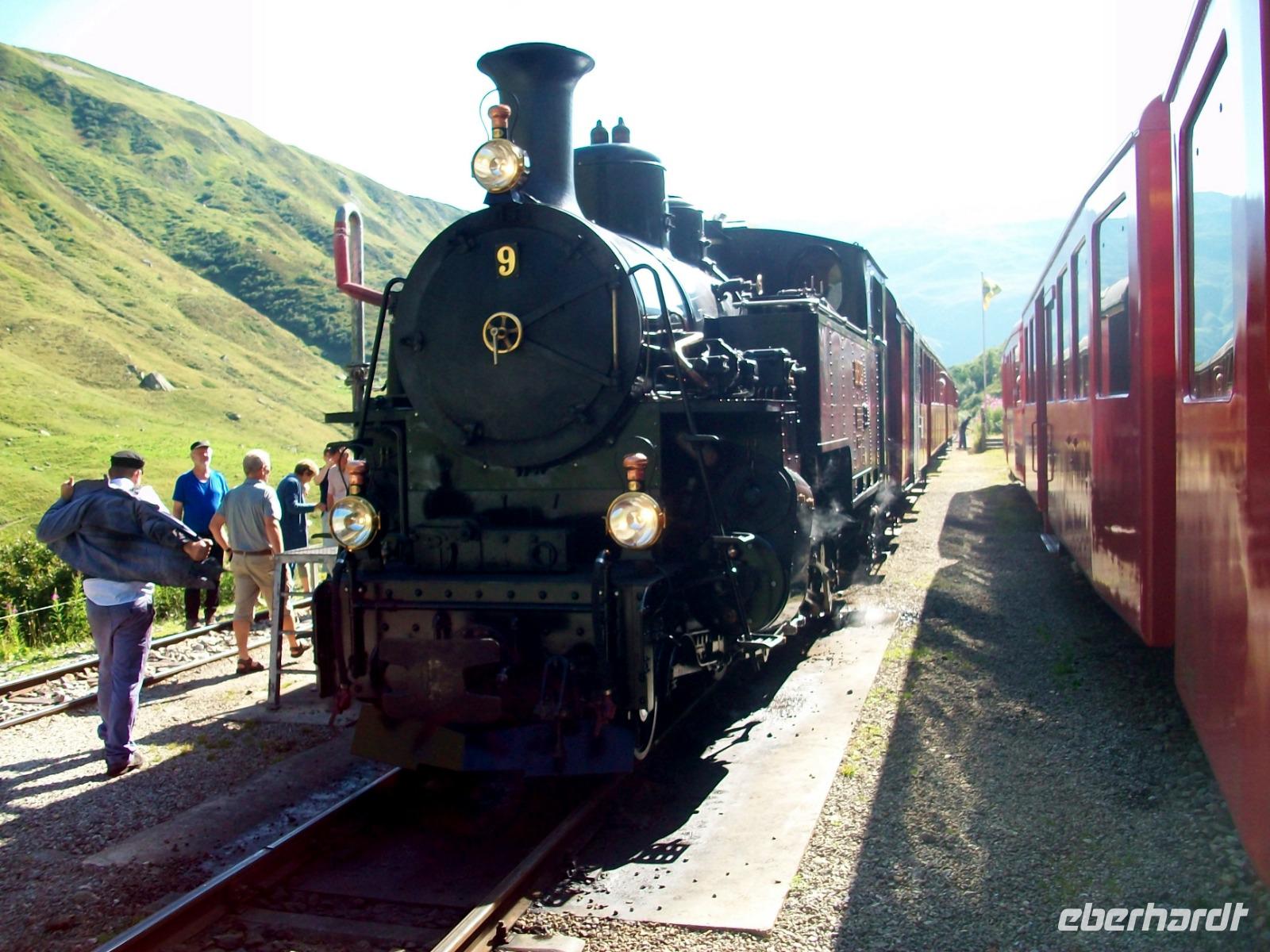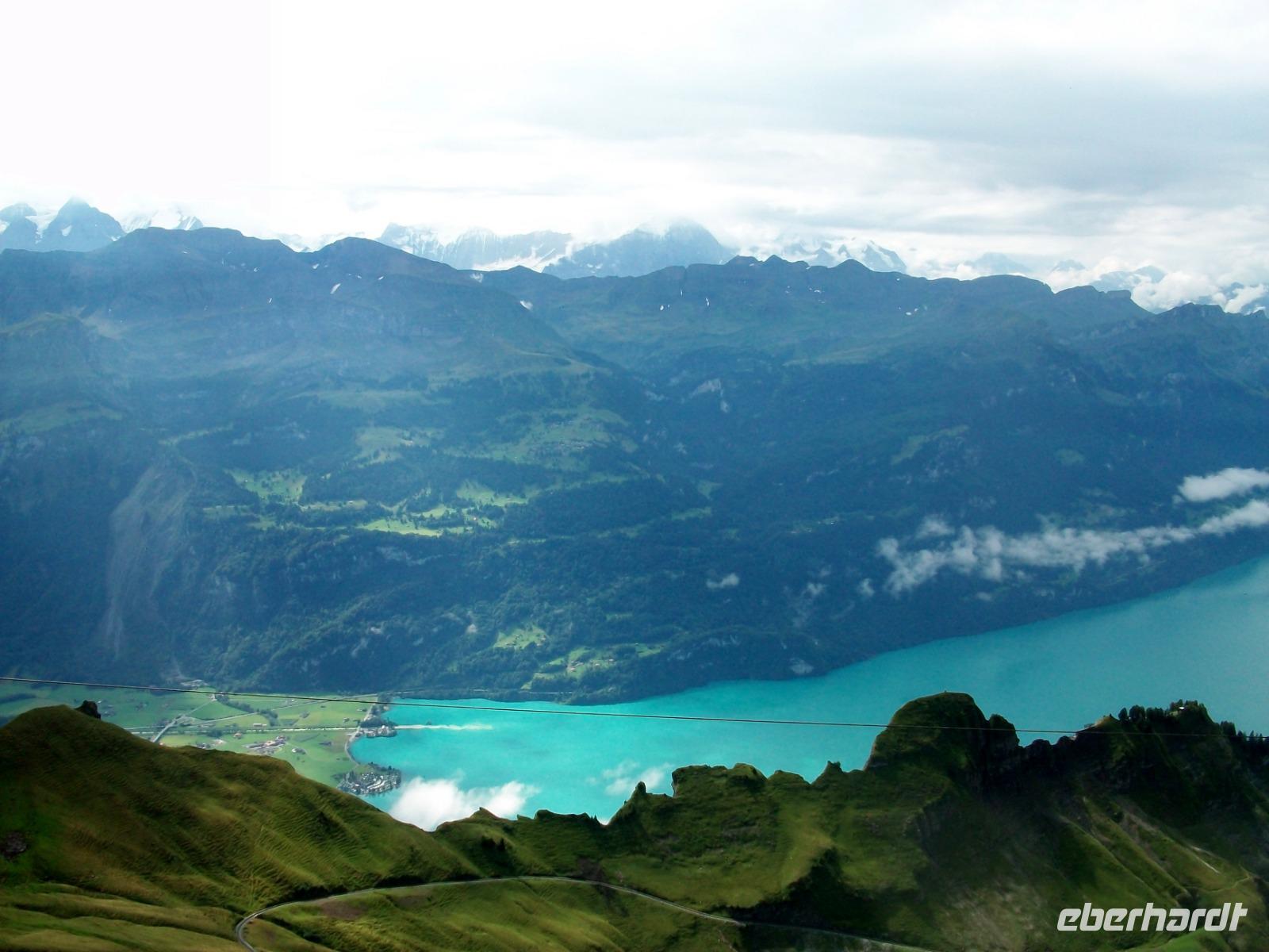 Danach genießen wir das nun wirklich überwältigende Panorama: Ganz unten, wie ein türkisener Edelstein, liegt der Brienzer See umgeben von schroffen Bergen an denen sich einige Wolken festgehangen haben. Wir genießen hier oben bei bestem Wetter eine wunderbare Zeit, man mag sich gar nicht davon losreisen, aber es muss sein. Bei der einstündigen Abfahrt bewundern wir noch einmal das einmalige Flair, gönnen uns etwas Freizeit im Ort Brienz und gelangen am späteren Nachmittag wieder zu unserem Hotel zurück, ein schöner Tag geht langsam zu Ende.Die Furka - Dampfbahn