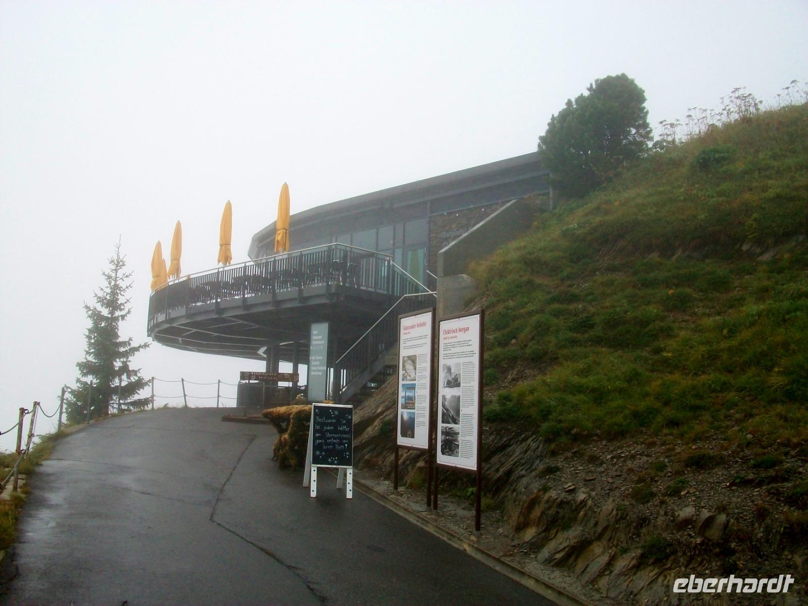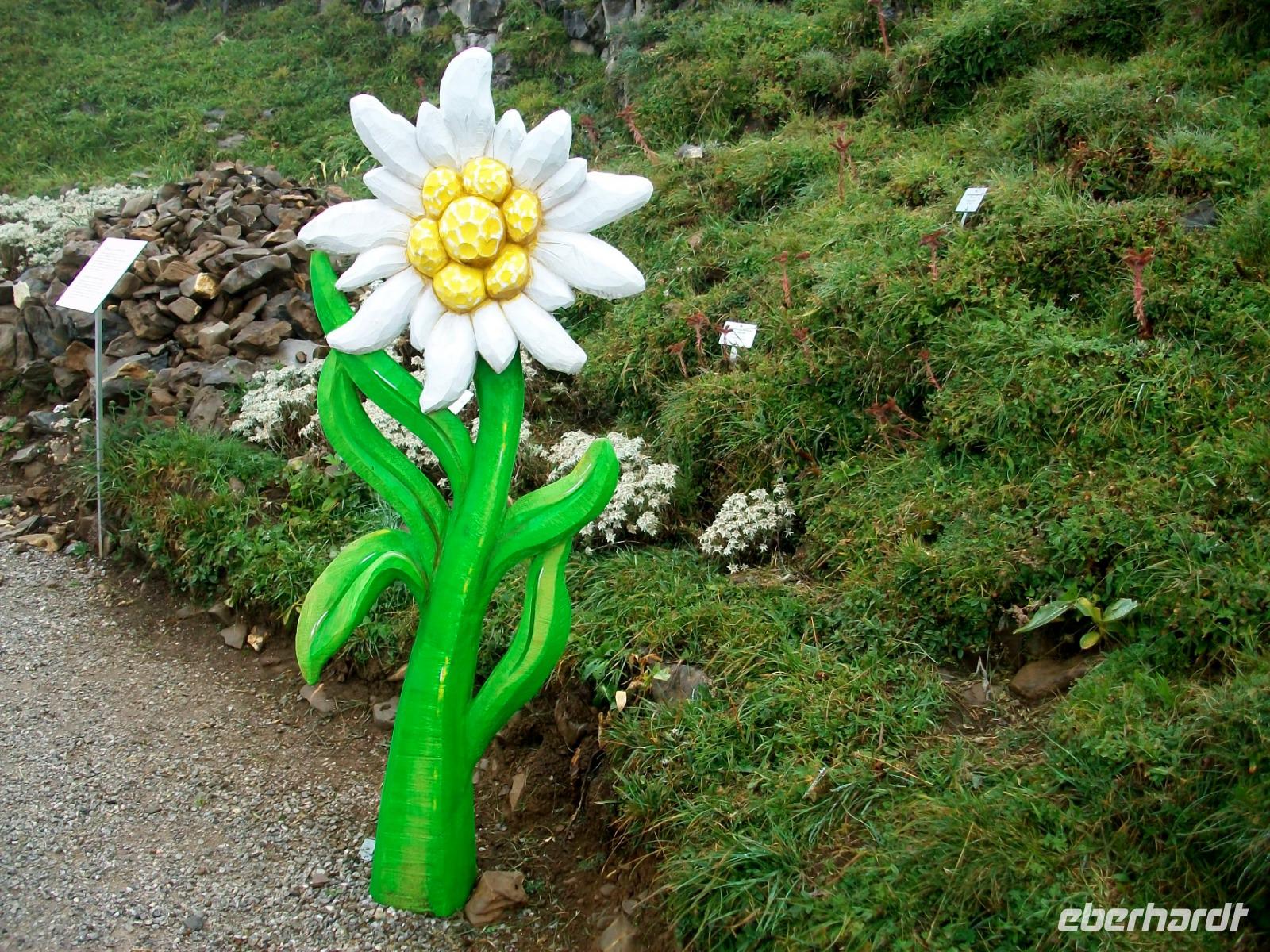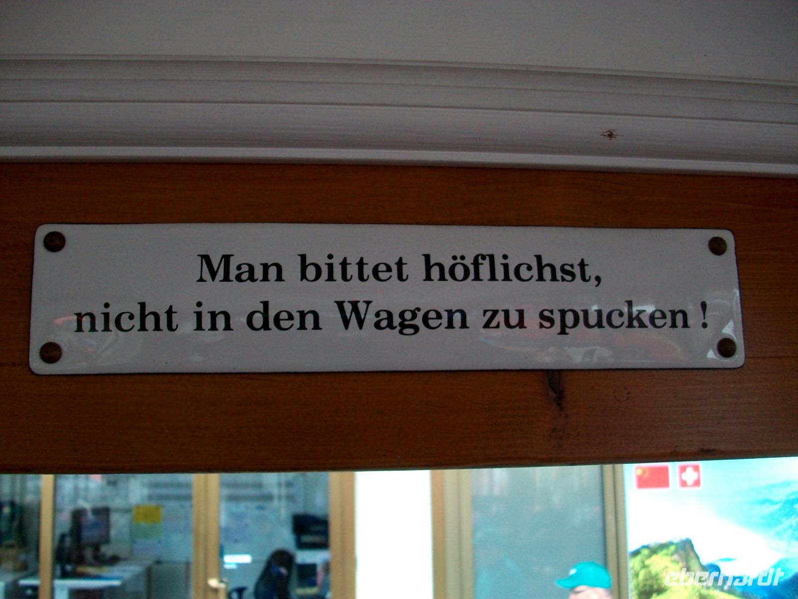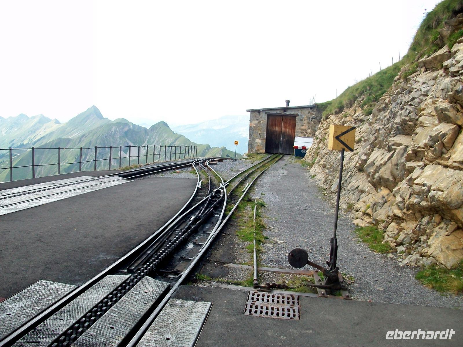 Dann, heute mit Elekrokraft, starten wir um erneut einen bekannten Schweizer Gipfel zu erklimmen. Das wird heute leider ein trübes Unterfangen; kaum sind wir einige Höhenmeter angestiegen umhüllt uns eine Wolke die sich mit Konsequenz im Berg festgesetzt hat. In dieser Suppe gelangen wir hinauf zur Schynige Platte und können die Berge die von hier oben bei guter Sicht gesehen werden nur in unserer Phantasie erstehen lassen. Eiger, Mönch und Jungfrau im ewigen Schnee, diese grandiose Bergwelt bleibt uns heute leider verschlossen. Im niesligen Regen schauen wir aber dennoch im Alpengarten vorbei und können, sehr anschaulich mit zahlreichen Tafeln versehen, die einheimische Pflanzenwelt bewundern. Wenigstens das konnte uns Petrus nicht vermiesen!