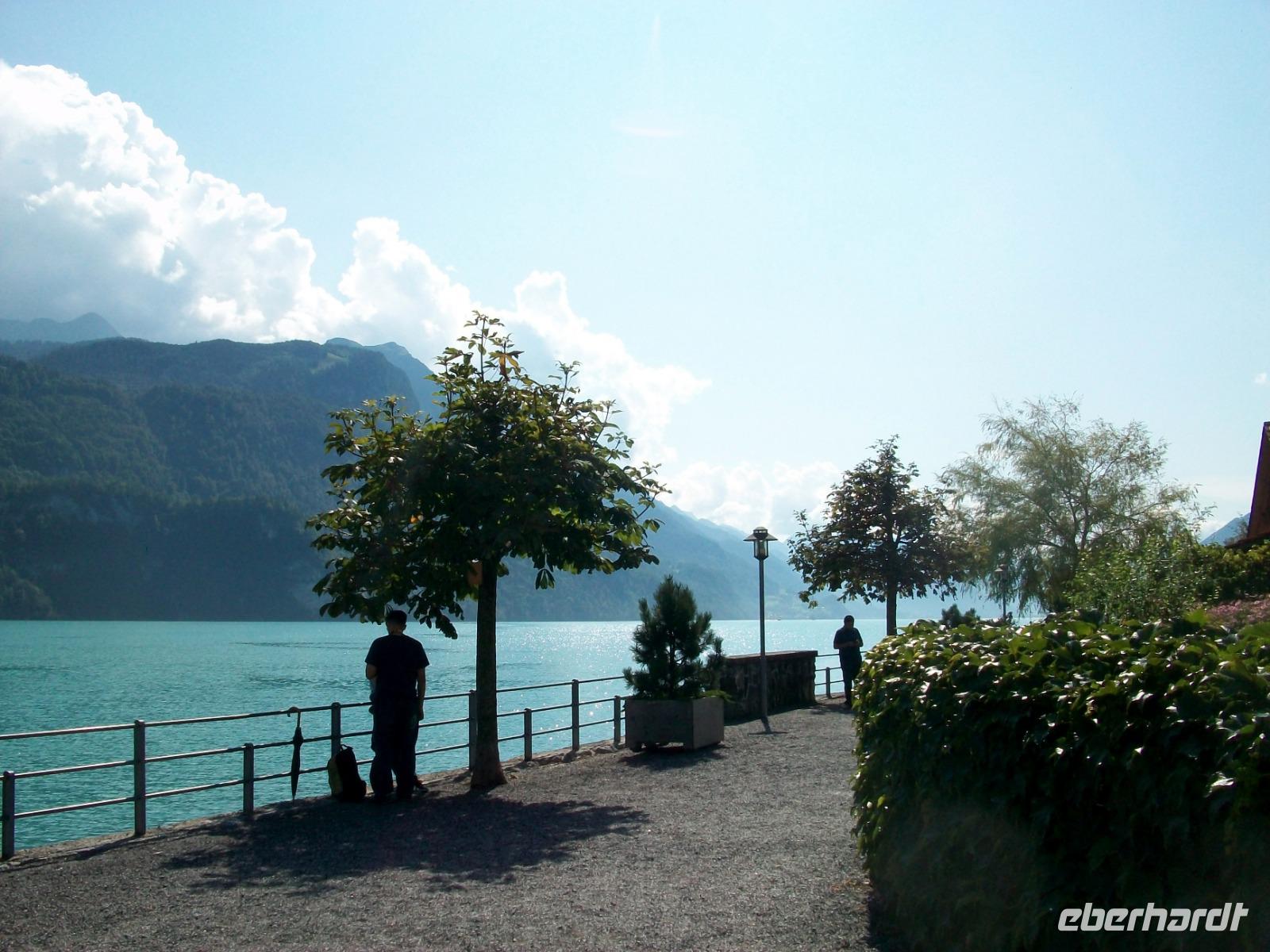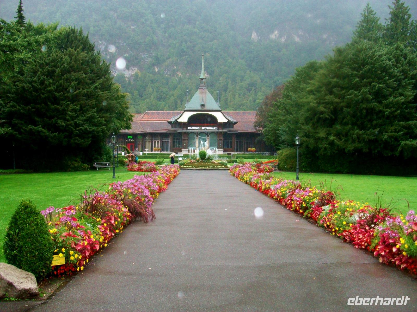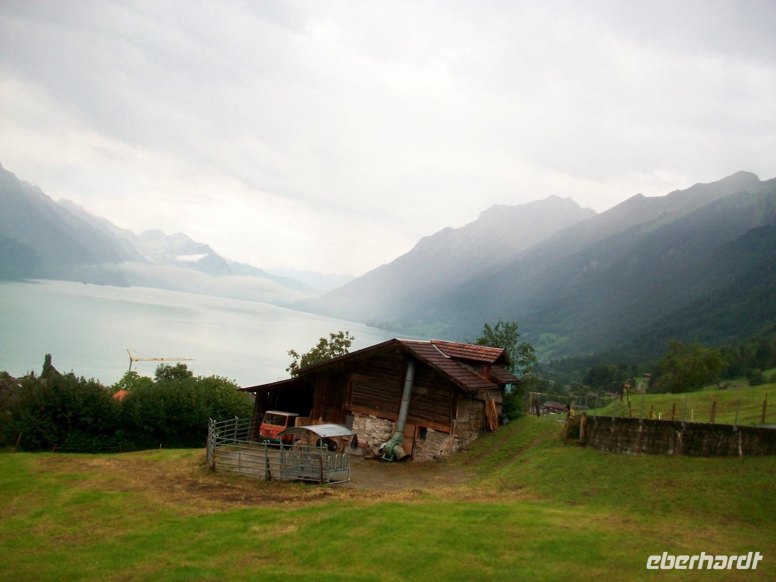 Dicke Wolkensuppe auch bei der Abfahrt, Dauerregen als wir noch einen Abstecher in Interlaken machen, Dunst bei der Fahrt entlang des Brienzer Sees, leider gibt es nichts besseres an diesem Nachmittag zu vermelden. Da tröstet es auch wenig dass es, als wir unser Hotel in Flüeli Ranft erreicht haben, aufgehört hat zu regnen.
