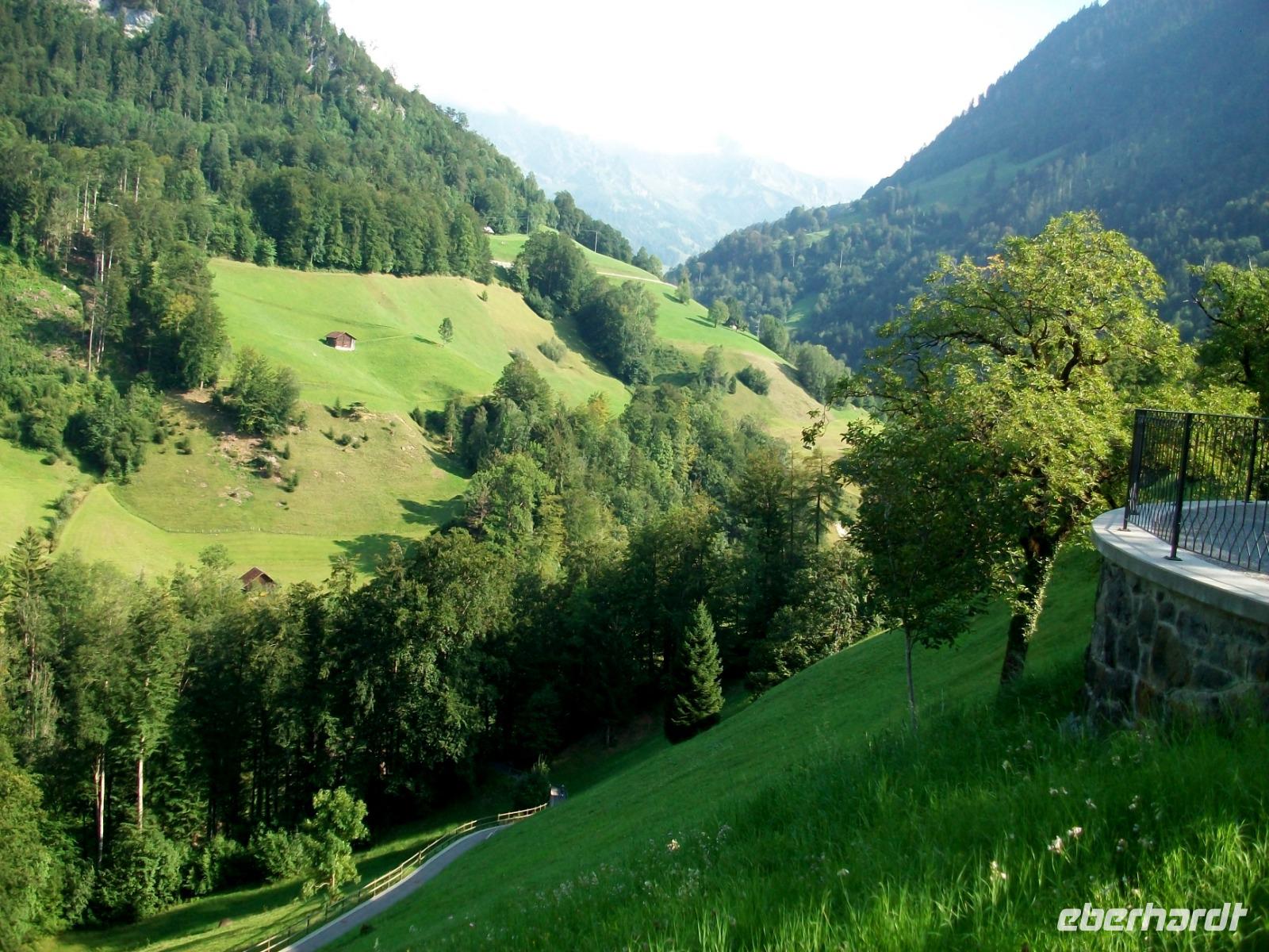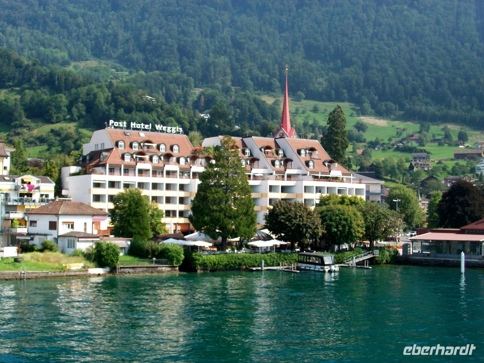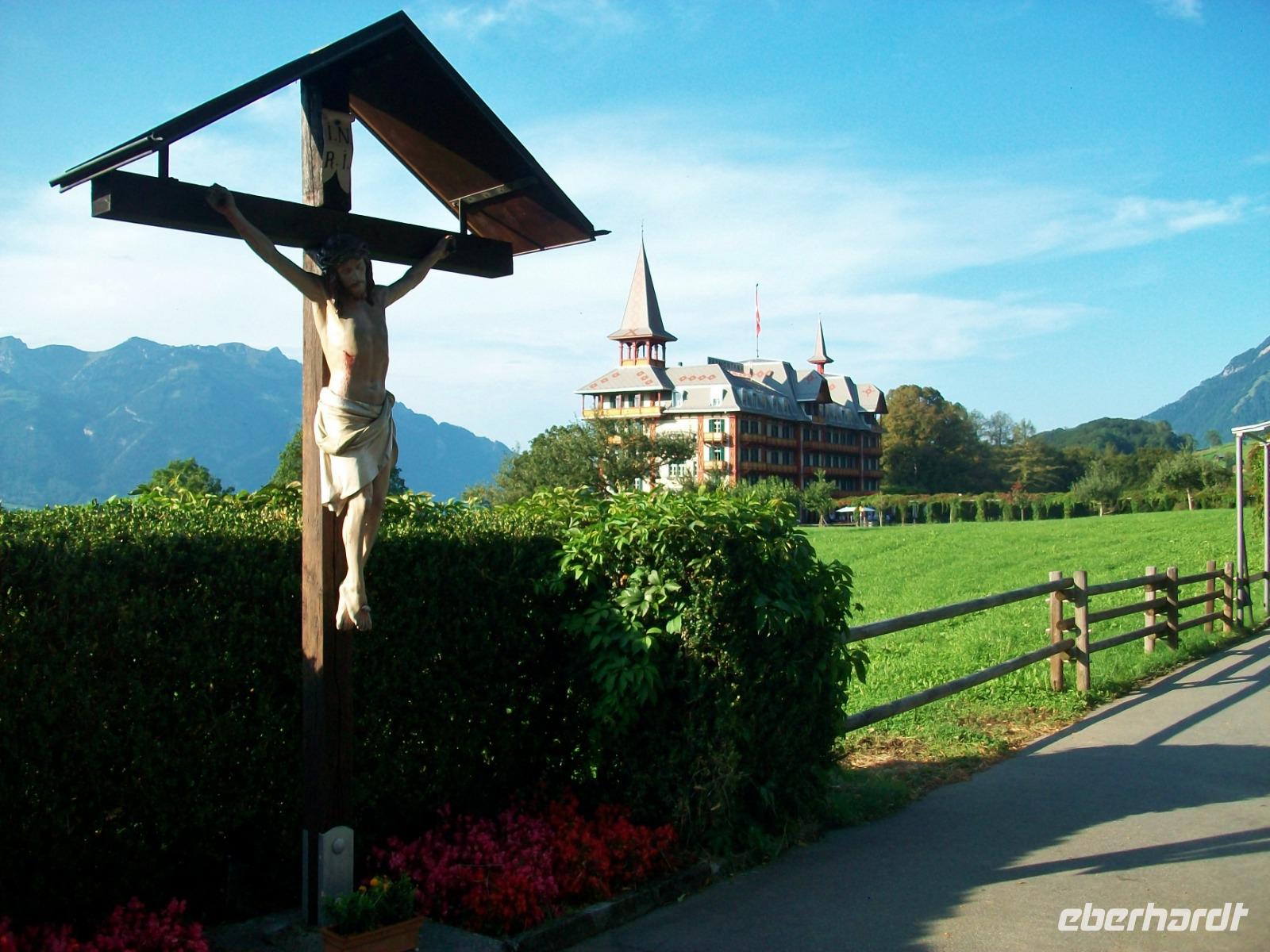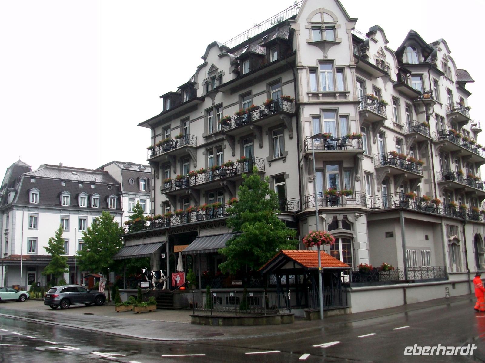 Dicke Wolkensuppe auch bei der Abfahrt, Dauerregen als wir noch einen Abstecher in Interlaken machen, Dunst bei der Fahrt entlang des Brienzer Sees, leider gibt es nichts besseres an diesem Nachmittag zu vermelden. Da tröstet es auch wenig dass es, als wir unser Hotel in Flüeli Ranft erreicht haben, aufgehört hat zu regnen.
