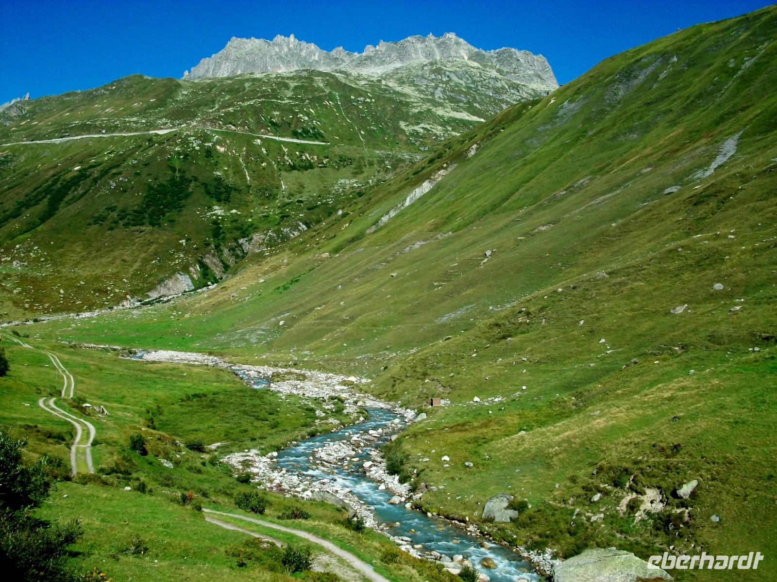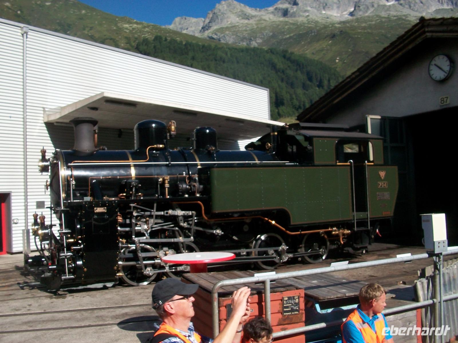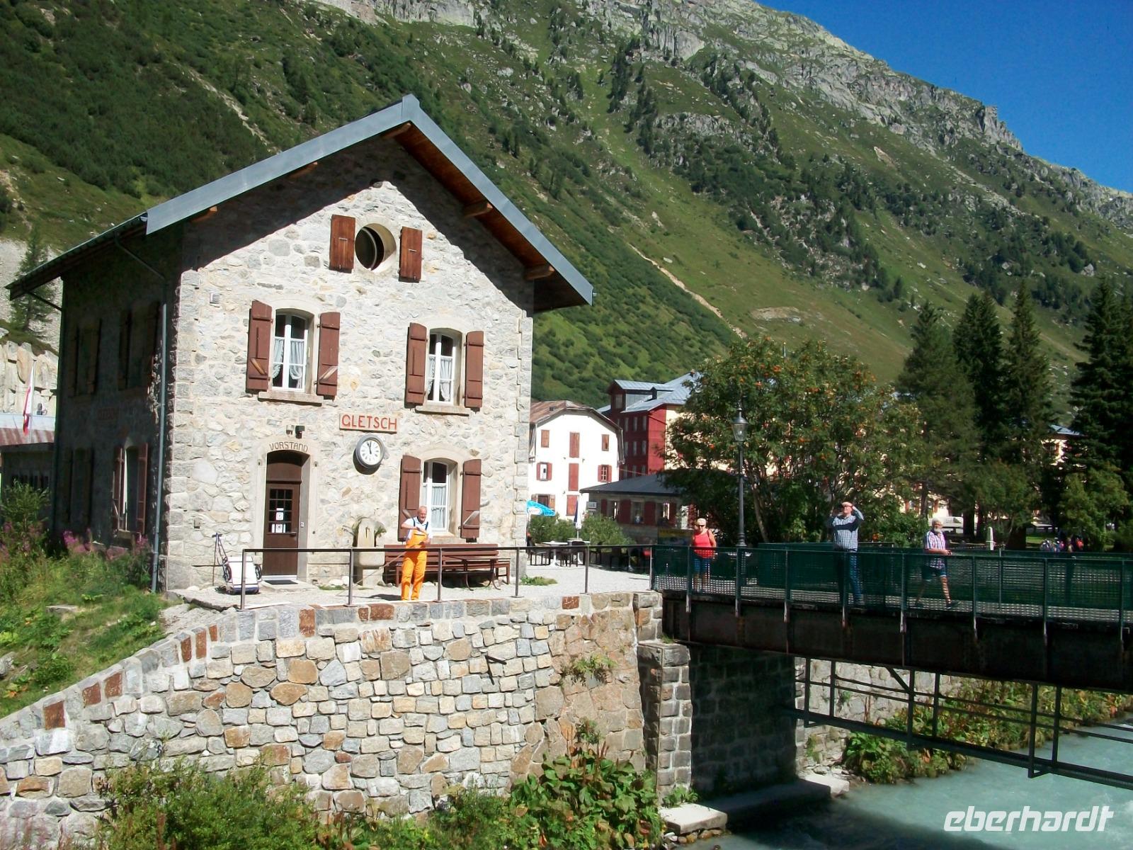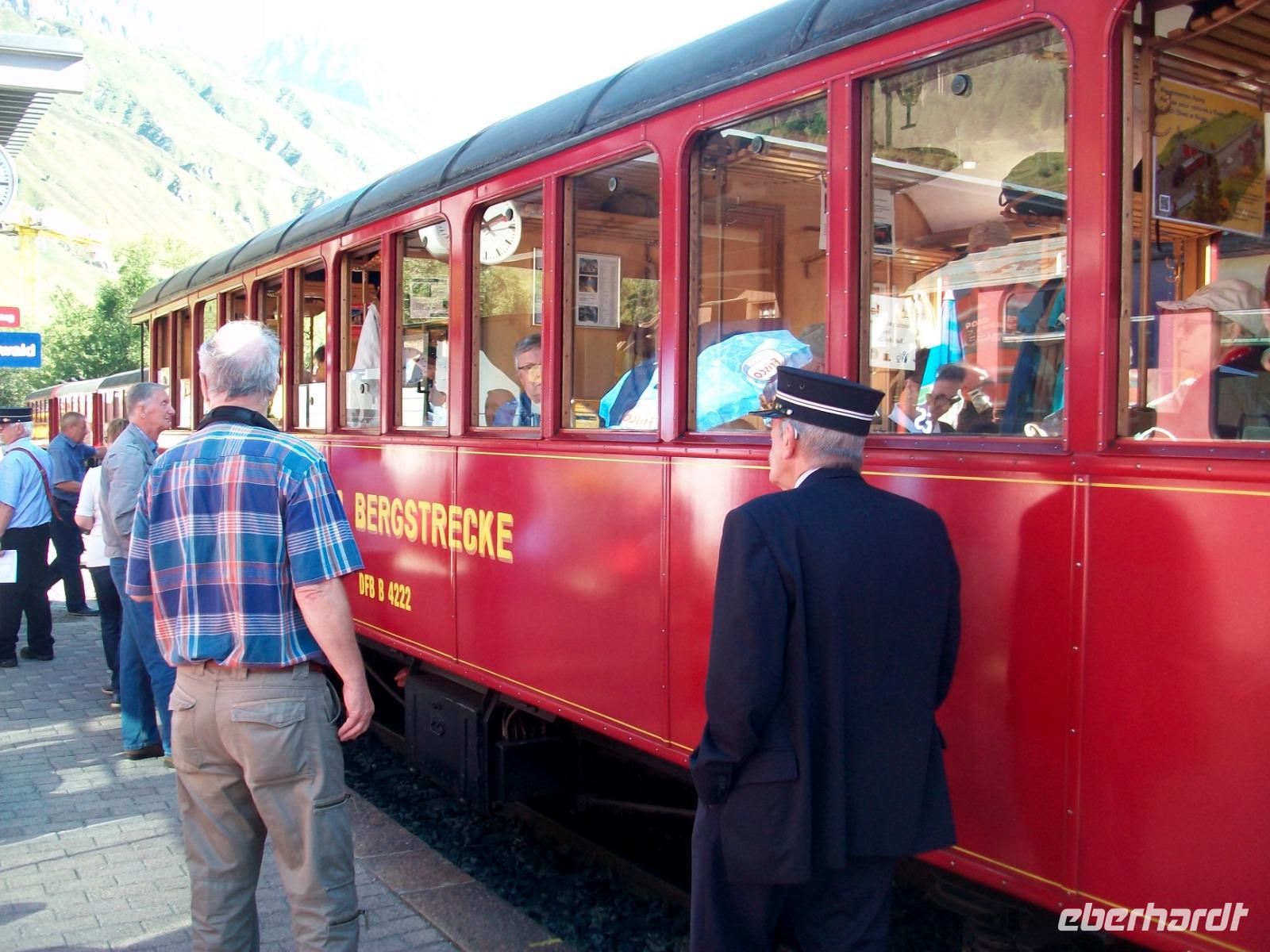 Dort ein etwas längerer Aufenthalt und danach durch den Scheiteltunnel wieder hinunter nach Gletsch. Auf der rechten Seite stürzt sich die junge Rhone hinab zu Tal, wir erahnen den Gletscher den es hier vor Jahren noch gab und nähern uns bald dem Ort Oberwald an, hier endet nun die wirklich eindrucksvolle Fahrt mit der Furka - Dampfbahn.
