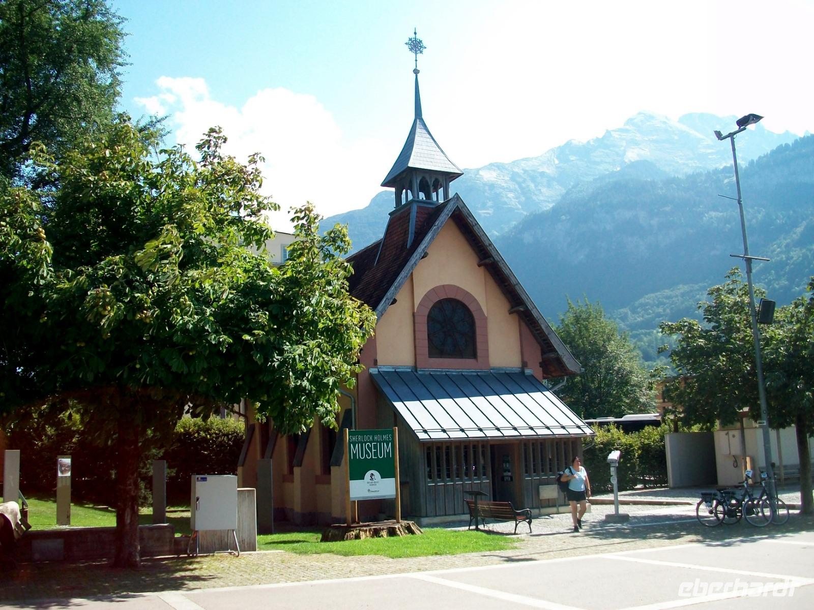 Am Bahnhof gönnen wir uns einen Imbiss und dann wagen wir mit dem Bus den Aufstieg zu einem weiteren Pass. Über spektakuläre Serpentinen gelangen wir hinauf und oben angelangt genießen wir in über 2 000 Metern eine grandiose Aussicht über die großartige Bergwelt der Schweiz. Dann geht es wieder hinab; entlang der zahlreichen Stauseen des Haslitals nähern wir uns Meiringen an. Hier soll ein Jahr lang Sherlock Holmes gelebt haben, so wollte es jedenfalls der Autor Doyle, denn der berühmte Meisterdetektiv war ja eine Phantasiegestalt. Hier gönnen wir uns bei hochsommerlichen Temperaturen noch ein Stündchen Aufenthalt um dann zurück zu fahren zu unserem Hotel.