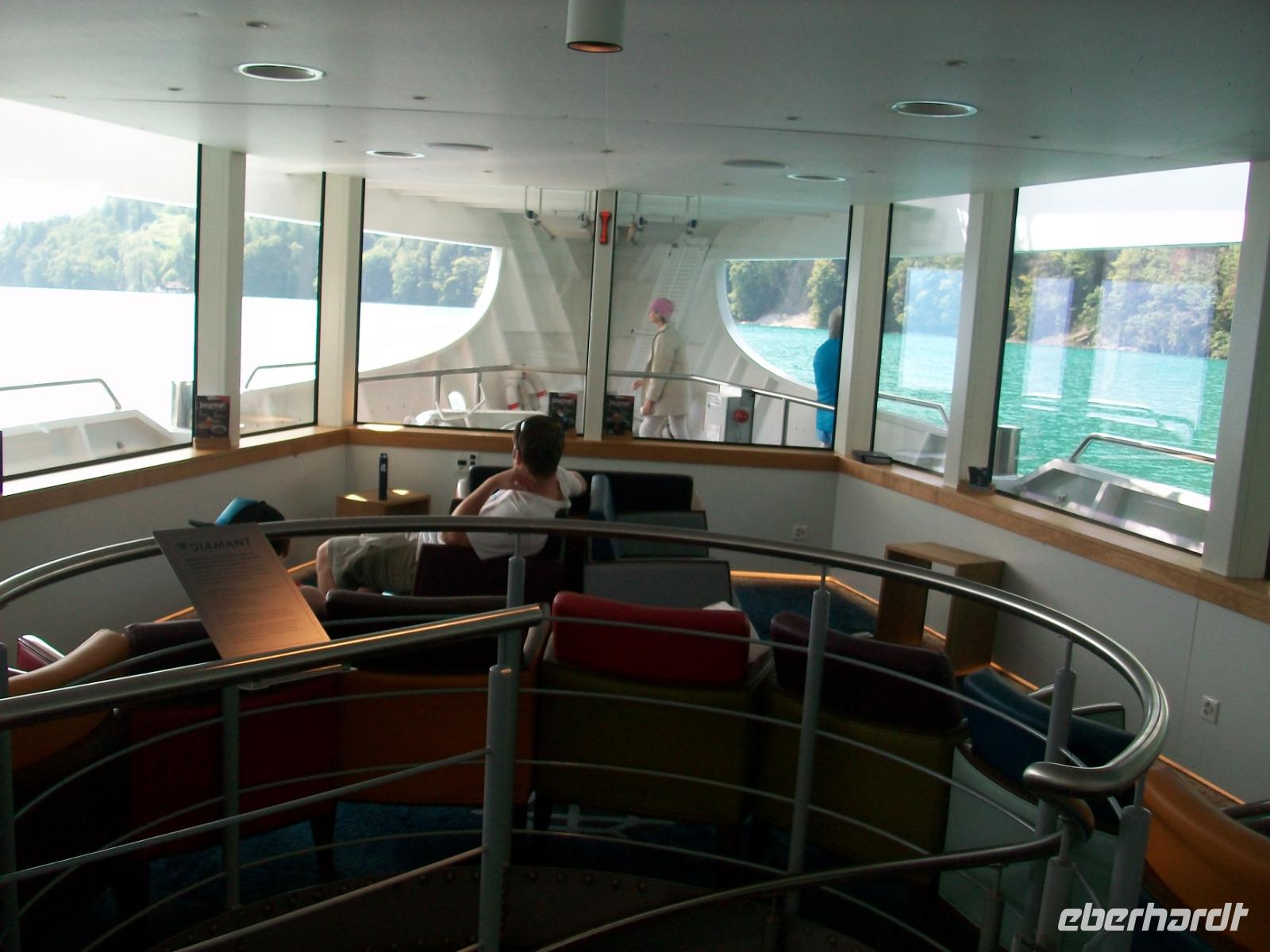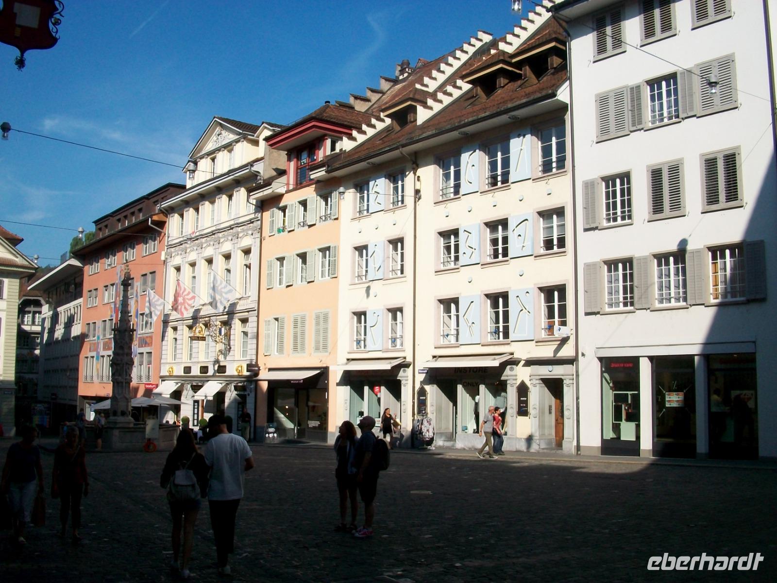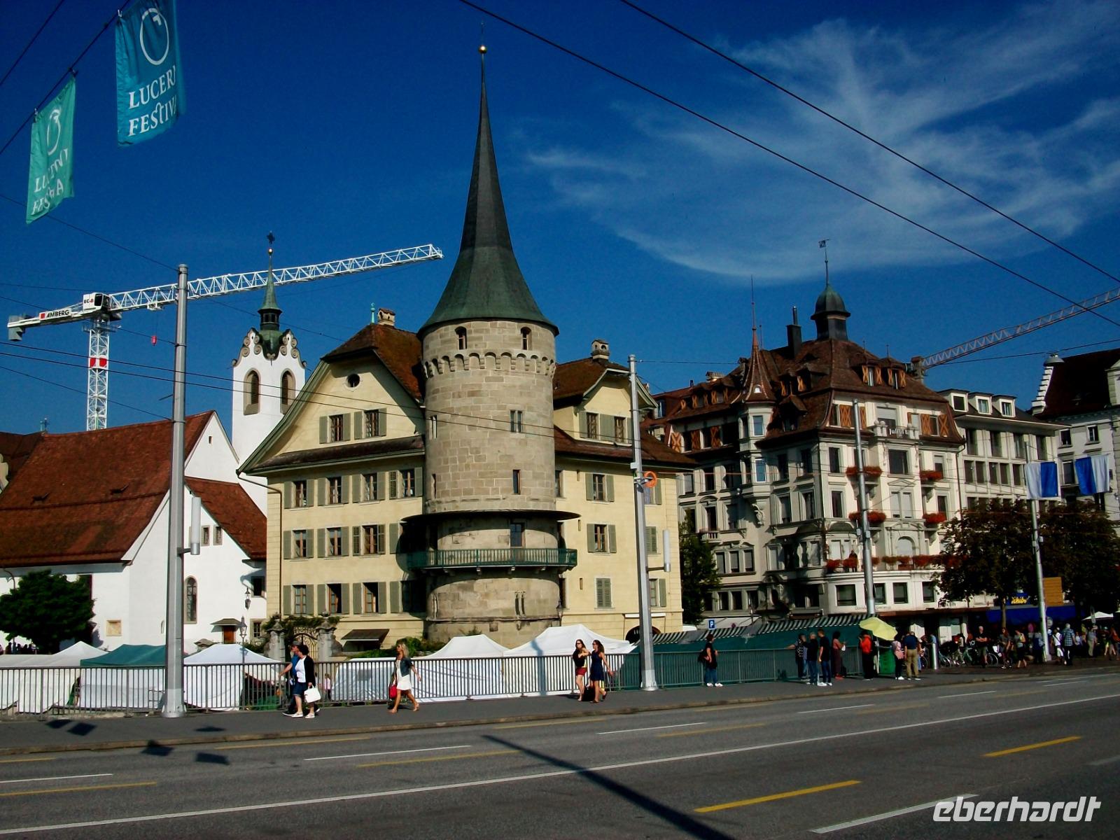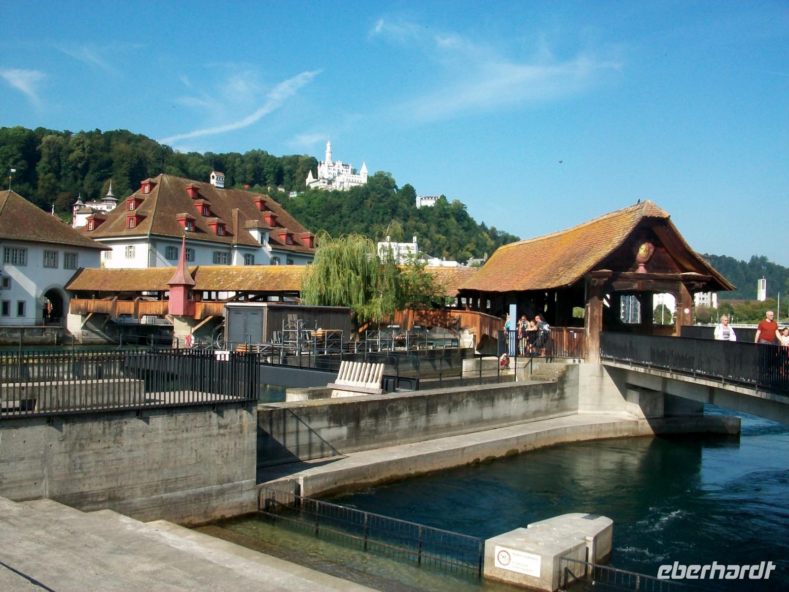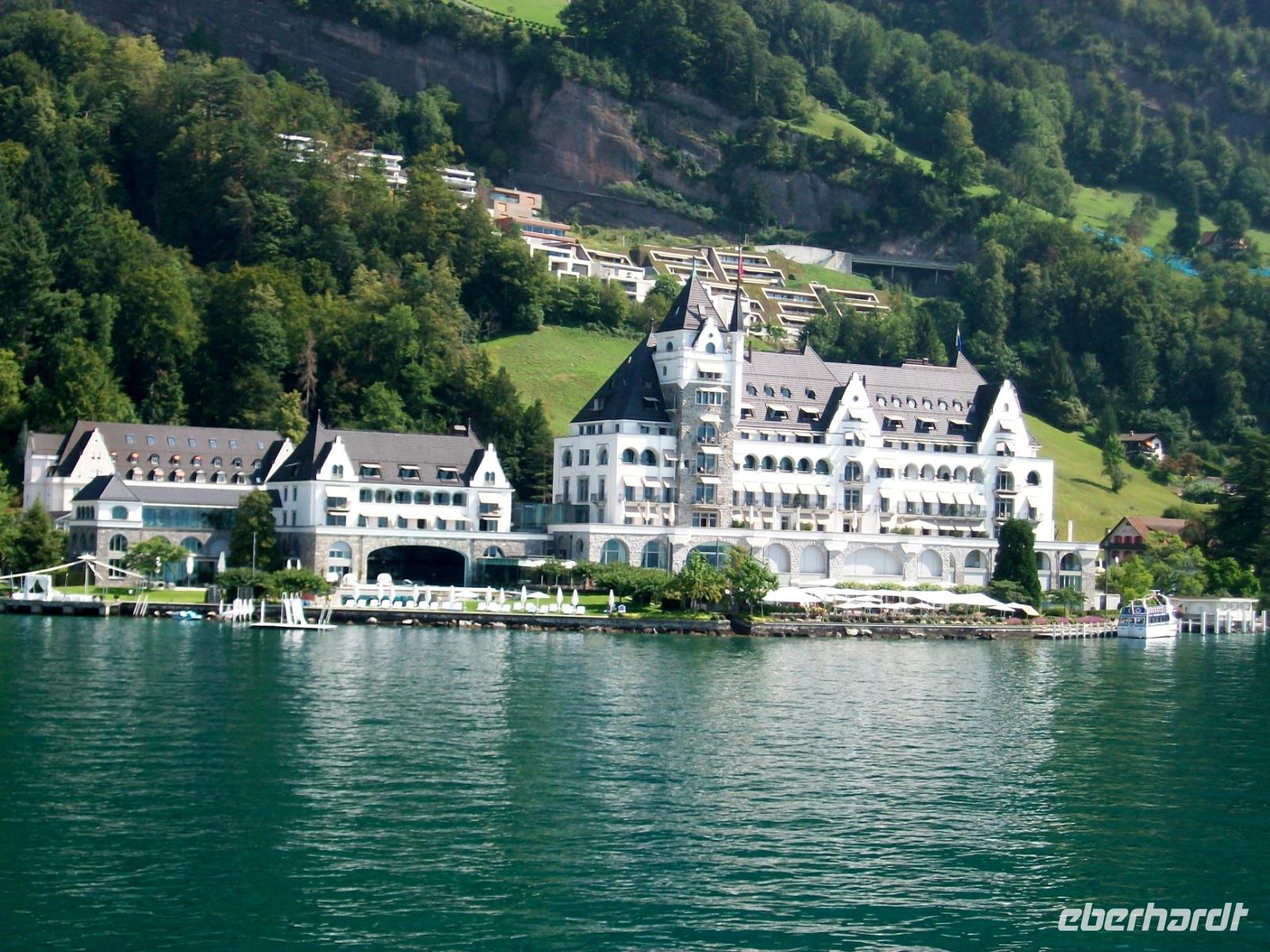 1.9.2019. Der Wetterbericht hat einen Wetterumschwung prognostiziert, mal schauen ob wir heute und morgen noch Glück haben. Der Morgen beginnt noch schön; auch wenn es einige Wolken gibt, der Start in Richtung Luzern verläuft vielversprechend. Wir gelangen am Sarner See entlang auch bald in diese schöne Stadt, hier gehen wir nun wieder zum Schiffsanleger NR. 1 und das rechtzeitige Kommen sichert uns auch heute gute Plätze. Der Himmel bleibt bewölkt als wir mit dem historischen Raddampfer „Schiller" starten, dennoch genießen wir erneut die schönen Impressionen auf dem Vierwaldstätter See. Heute endet die Fahrt nach einer Stunde im schönen Ort Vitznau, schon am Anleger können wir den Dampf der Rigi - Bahn schnuppern. Auch in dieser Bahn ist Platz für uns reserviert und bald geht es aufwärts, geschoben von einer Schweizer Lok und angetrieben von Sibirischer Steinkohle die richtig Dampf macht. Vorbei an schönen Häusern, grünen Wiesen und schroffen Abhängen gelangen wir, gut durchgerüttelt, hinauf zum Kulm. Trotz der Wolken, der Blick hinunter ist nahezu frei und hier oben zwischen Himmel und Erde genießen wir eine schöne Zeit. Dichter, Denker und gekrönte Häupter waren auf der Rigi und auch wir können die schöne Atmosphäre der verschiedenen Ausblicke in vollen Zügen genießen. Oben, gleich beim Funkturm, geht der Blick hinunter zum Zuger See, einmal umgedreht und wir sehen die Erhebungen die vom Vierwaldstätter See aufsteigen - einfach wunderbar. Dann steigen weiße Wolken Gespenstern gleich das Tal hinauf, verdecken kurz die Sicht um dann wie von Geisterhand wieder weggeblasen zu werden. In diesem Wechselspiel vergeht die Zeit wieder viel zu schnell; die Abfahrt zu Tal steht an und abwärts geht es wieder nach Vitznau.