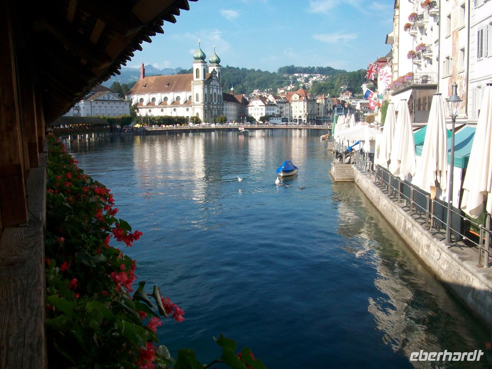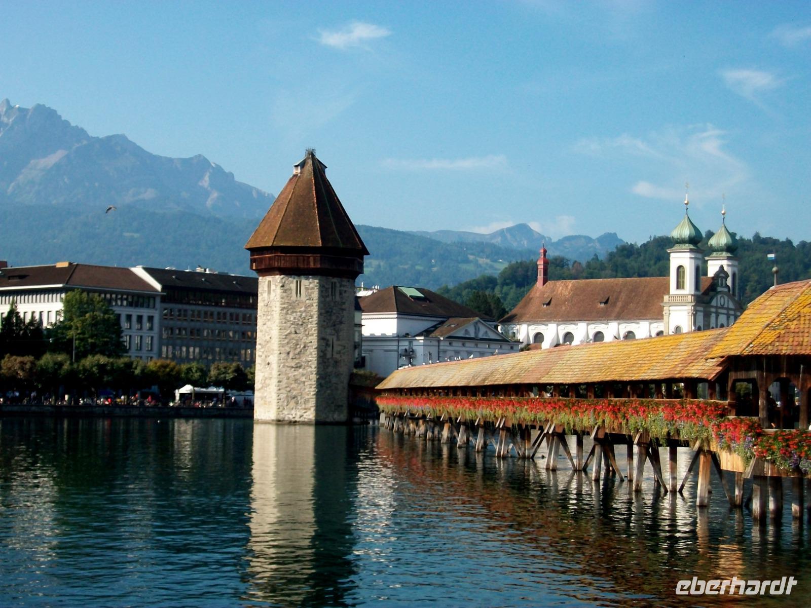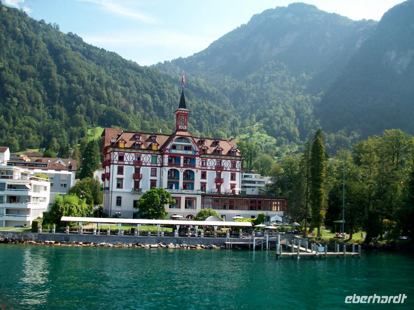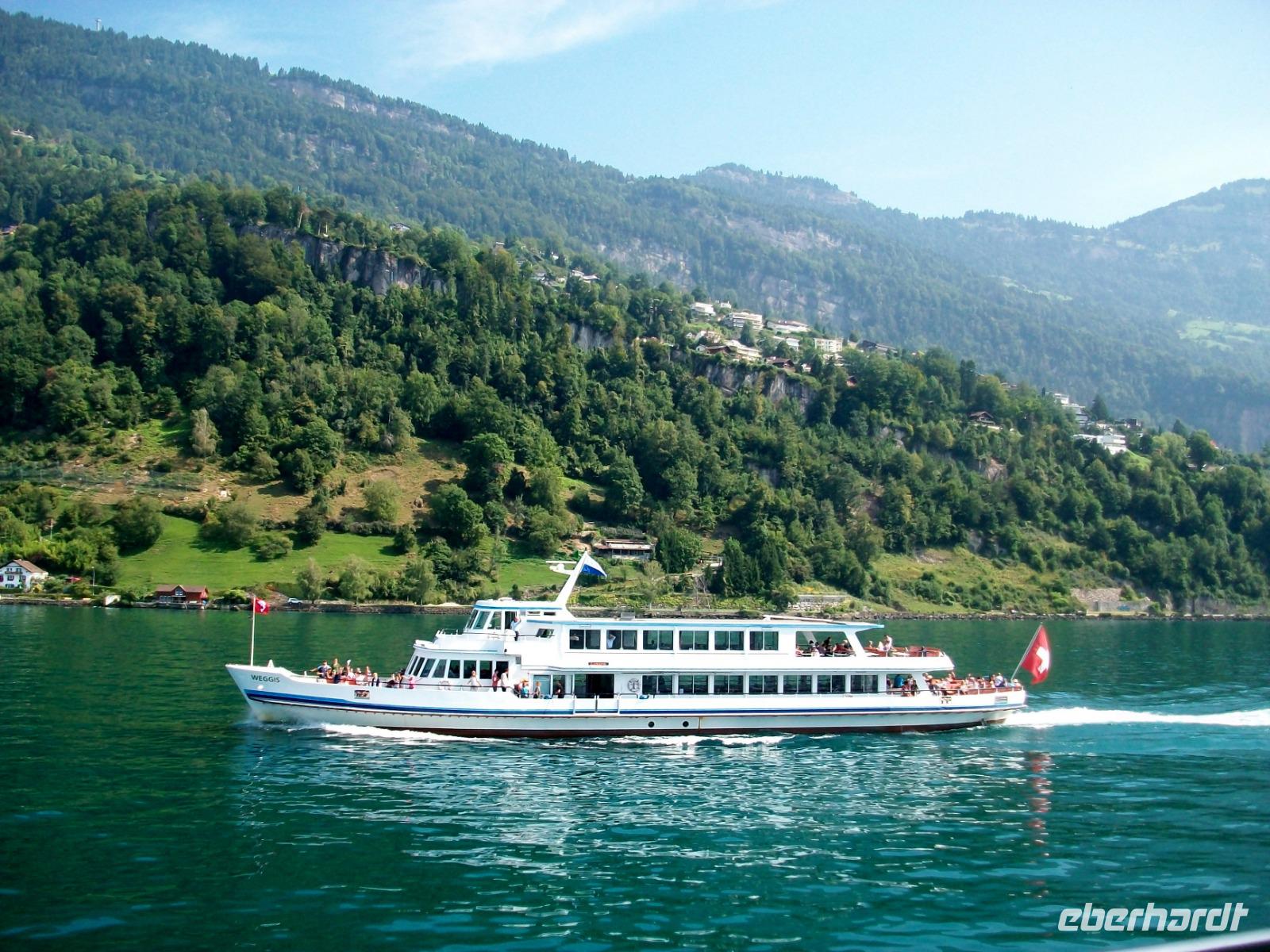 31.8.2019. Auch heute steht uns ein weiterer schöner Tag bevor an dem Petrus wieder sein bestes geben wird. Die Sonne lacht als wir unsere Tour aufnehmen um am schroffen Pilatus vorbei in Richtung Luzern zu fahren. Hier gönnen wir uns eine gute Stunde für diese reizvolle Stadt; ein Gang über die blumengeschmückte Kapellbrücke, eine Stippvisite in die pittoreske Altstadt - dann treffen wir uns am Anleger; hier können wir bald das Schiff betreten. Vom sonnendurchfluteten Oberdeck aus genießen wir in den nächsten Stunden wunderbare Panoramen; steil steigen vom Vierwaldstätter See die Berge an, die Orte an denen das Schiff anlegt können reizvoller nicht sein. Selbst die Geschichte kommt nicht zu kurz: Wir legen am Rütli an, hier wurde einst die Schweiz begründet.