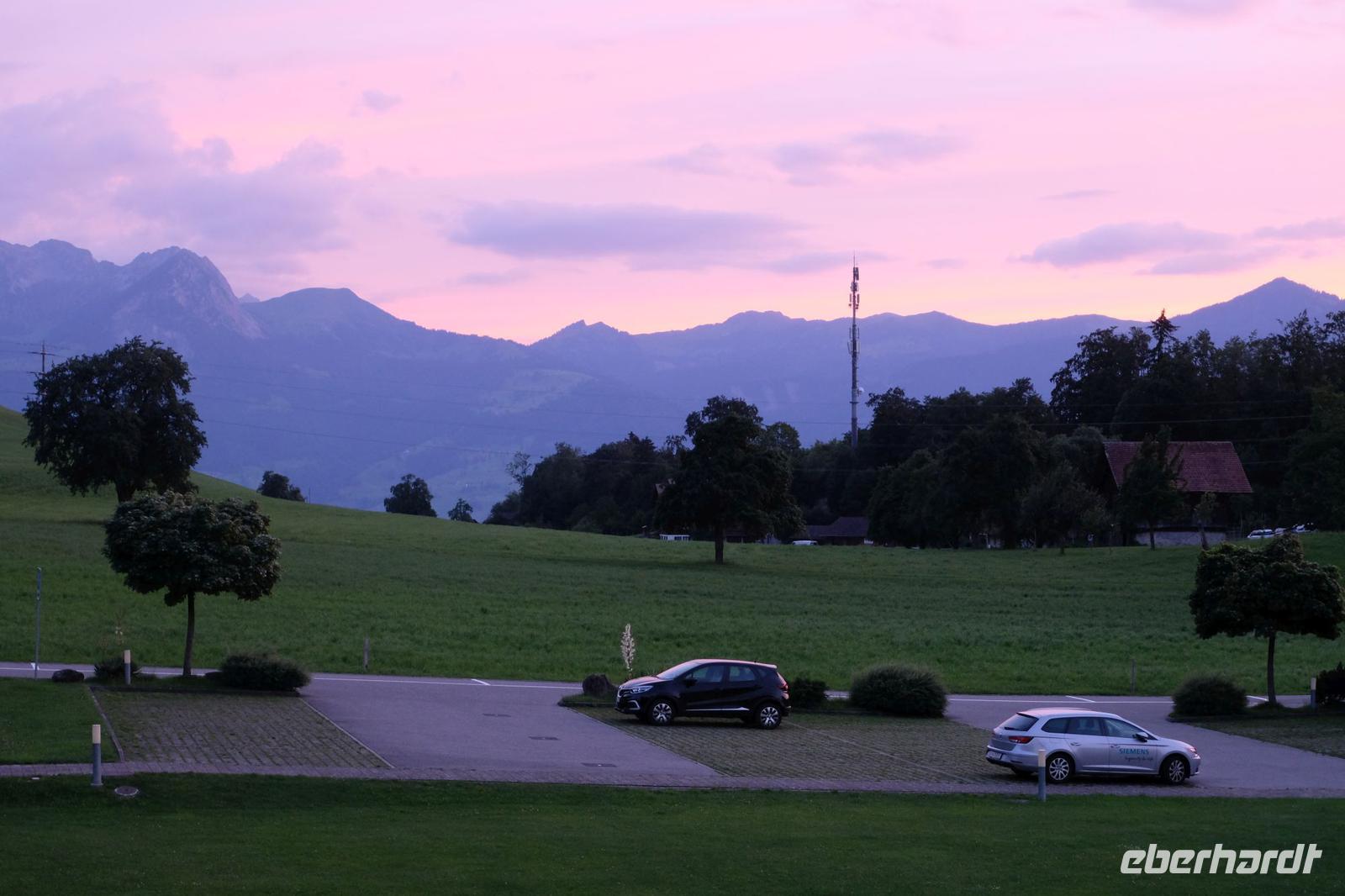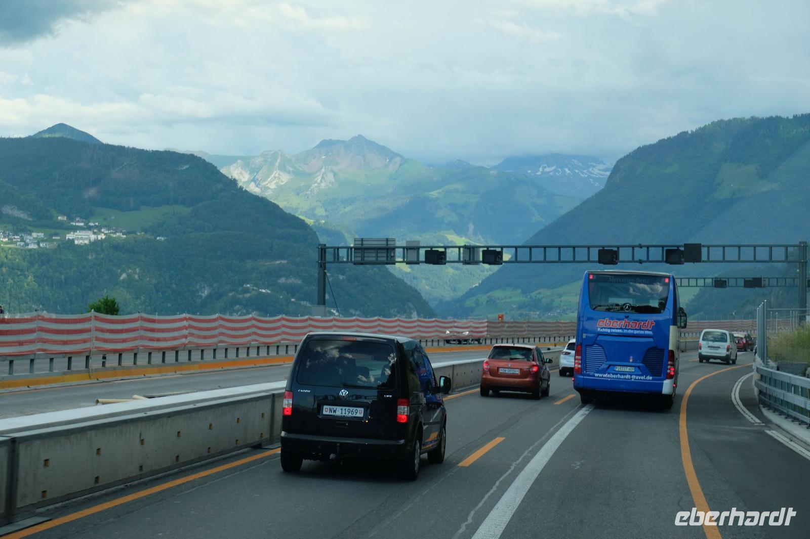 In Dresden begann unsere erste Reise nach langer Zeit der Abstinenz und des Wartens wegen Corona mit einer großen Vorfreude, nicht nur vom Busfahrer und dem Reiseleiter, sondern auch von unseren Gästen. Über Zustiege in Nossen und Chemnitz führte unsere Route zunächst vorbei an Bayreuth, Nürnberg, Ansbach sowie über Ulm in Richtung Bodensee. Wir fuhren durch den 6,9 km langen Pfändertunnel bis wir bald die Grenze zur Schweiz erreicht hatten. Entlang des Rheins ging die Reise nach Sargans und weiter Richtung Zürich. Links fuhren wir am Walensee vorbei, die Churfirsten grüßten von oben, allerdings bei starkem Regen und ganz dunklen Wolken. Unsere Fahrt führte weiter durch die Zentralschweiz mit der Region des Vierwaldstätter Sees. Am Abend erreichten wir unser Hotel Flüematte in Flüeli Ranft. Dort wurden wir für 6 Nächte untergebracht. Nach dem Check in trafen wir uns zu einem schmackhaftem Abendessen.