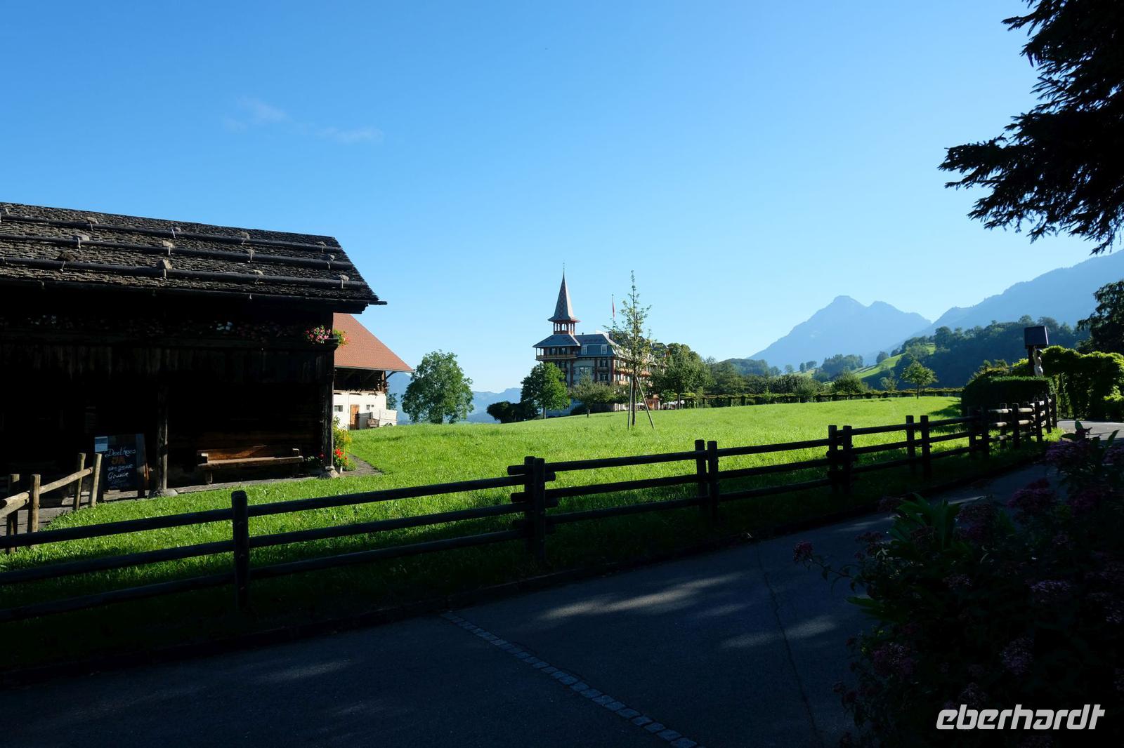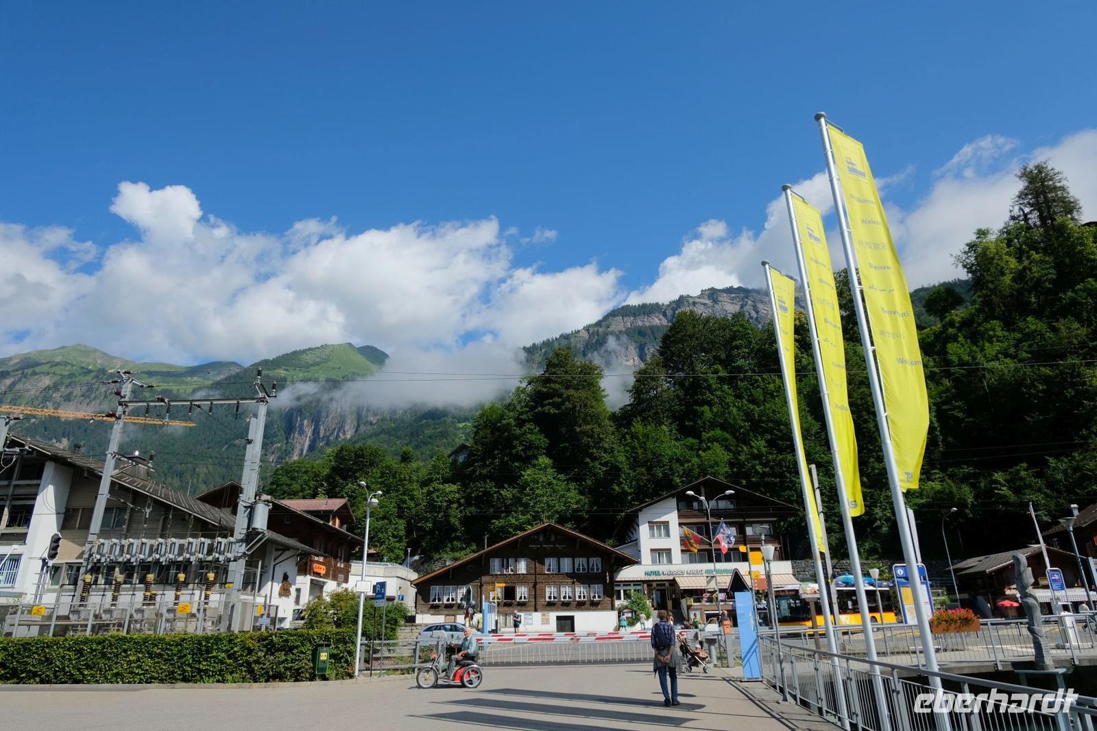 Heute erwartet uns ein weiteres Bahnerlebnis, welches uns ins Berner Oberland nach Wilderswil führte. Hier bestiegen wir die liebevoll gepflegte, nostalgische, elektrische Zahnradbahn und fuhren auf die Schynige Platte auf 1960 Meter. Die Auffahrt verlief neblig und auf der Bergstation angekommen, hatte sich der Nebel ausgebreitet. Wir konnten leider nichts sehen, außerdem nieselte es ganz leicht. Einige Gäste unternahmen trotzdem einen kurzen Spaziergang durch den sehr schön angelegten Alpengarten. Über 650 verschiedene Pflanzen sind hier zu bewundern. Traumhafte Aussichten waren allerding nicht zu genießen und wir erahnten nur die Richtung des Dreigestirns mit Eiger, Mönch und Jungfrau. Am Nachmittag kehrten wir vorzeitig wieder nach Wilderswil zurück und fuhren in den nahegelegenen Ort Interlaken. Interlaken ist mittlerweile ein international anerkannter Ferienort und wichtiger Ausgangspunkt auf das Jungfraujoch. Jeder von uns unternahm einen kleinen Spaziergang durch den mondänen Ferienort. Wir bemerkten allerdings, dass Interlaken sehr unter Corona gelitten hat. Es sind viele Geschäfte geschlossen und kaum ein Tourist war auf der Straße zu sehen. Am späten Nachmittag kehrten wir zurück zum Hotel und genossen das anschließende Abendmenü.