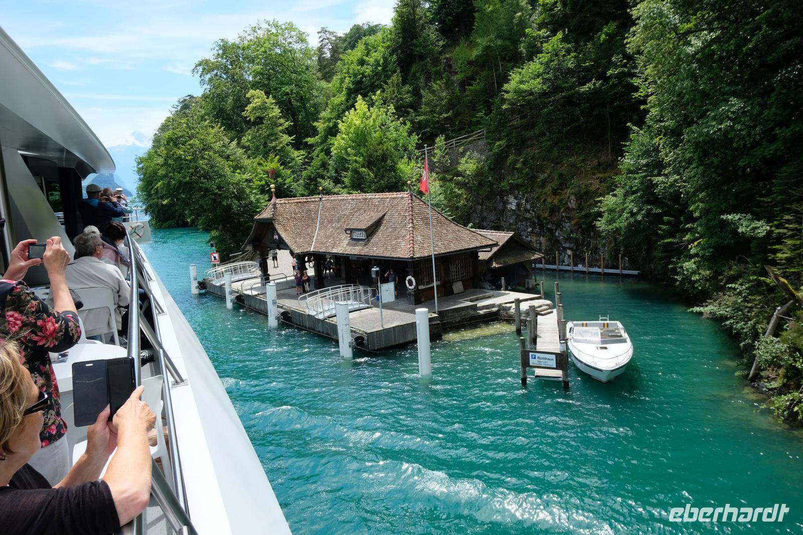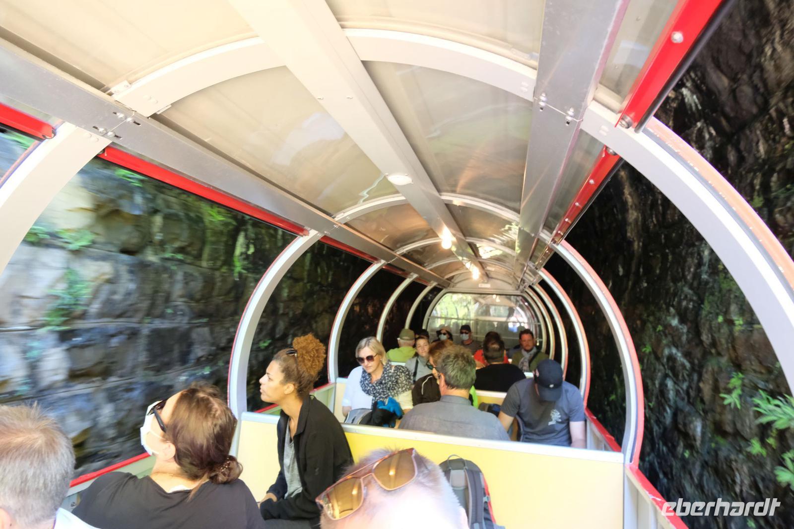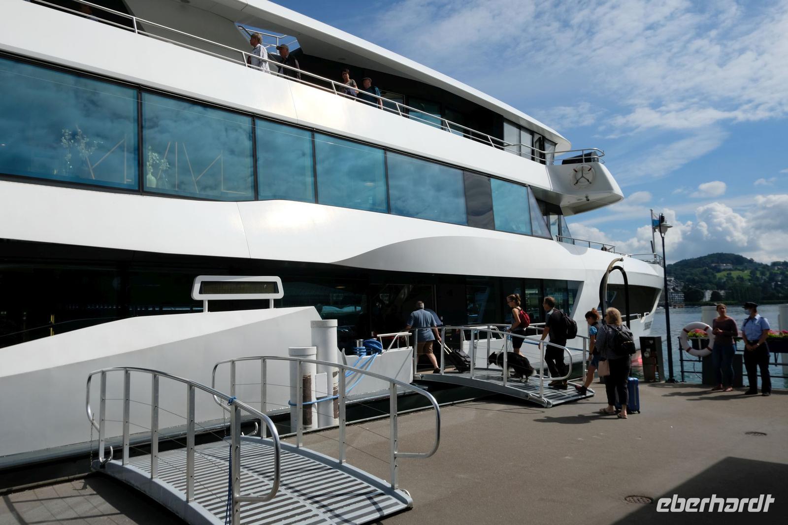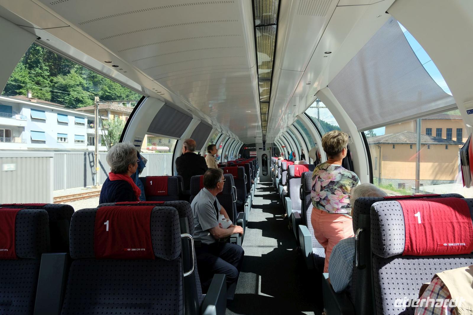 Nach dem Frühstück fuhr uns unser Fahrer Frank nach Luzern. Nach einem kurzen Stadtbummel bewegten wir uns auf einem Schiff in der 1. Klasse nach Flüelen. Wir genossen die herrlichen Uferpromenaden und das in der Sonne blinkende Wasser. In Flüelen wechseln wir das Transportmittel und steigen in den Gotthard Panorama Express 1. Klasse. Die Plätze waren für unsere Fahrt auf der alten Gotthard-Bahnstrecke schon reserviert.