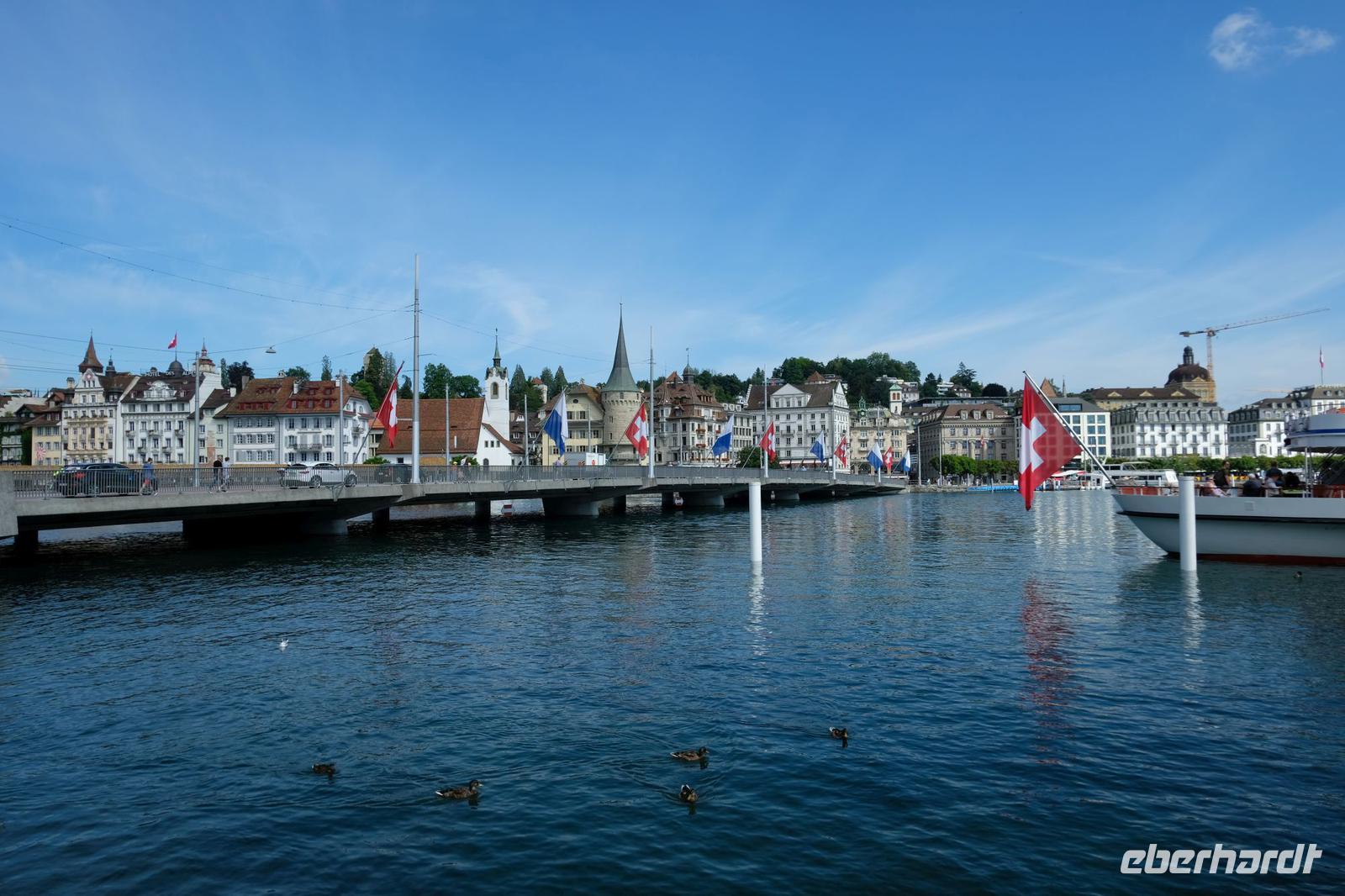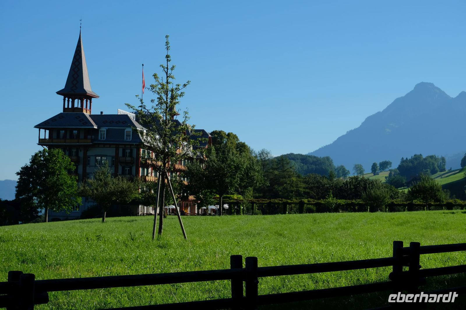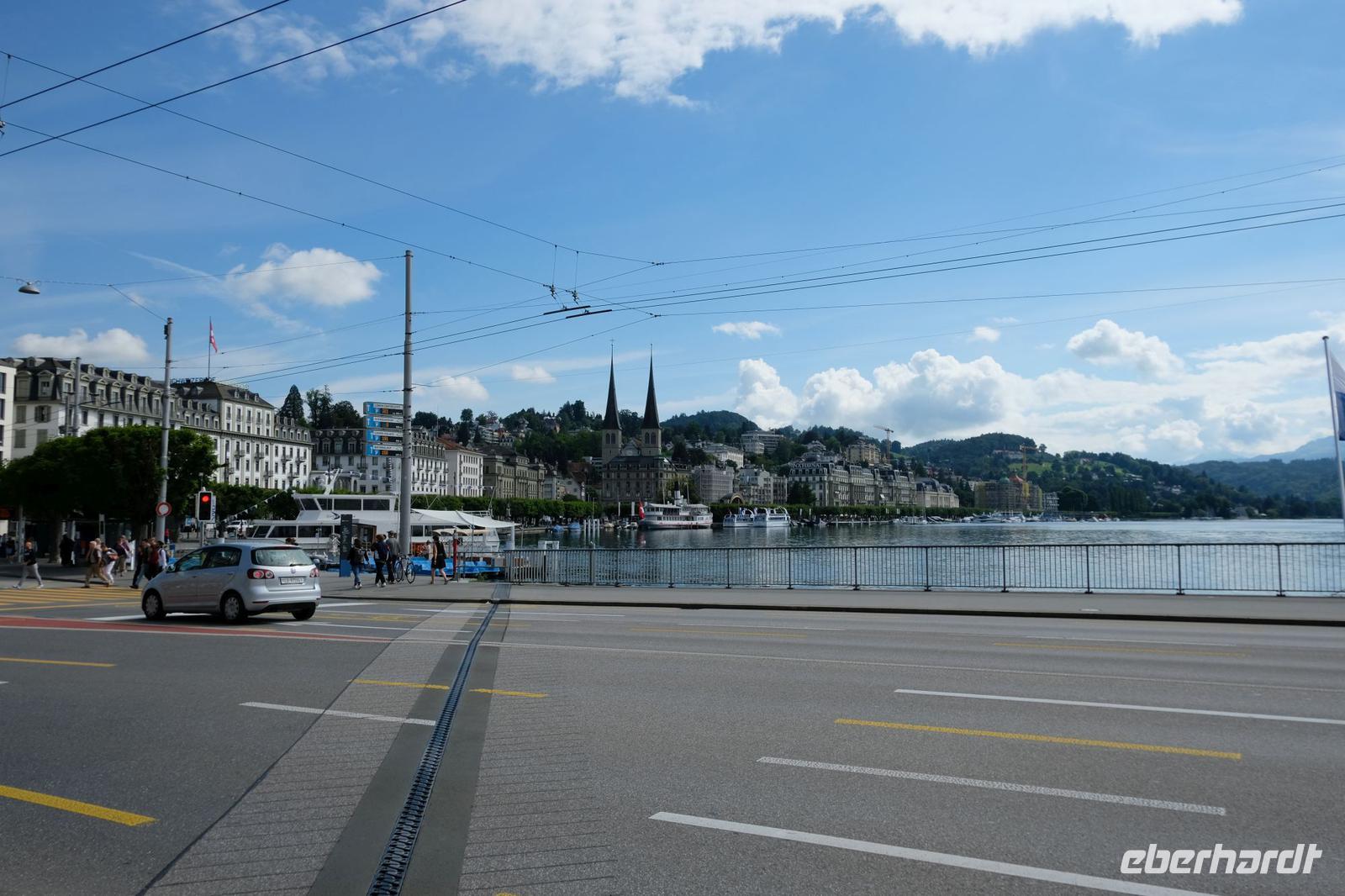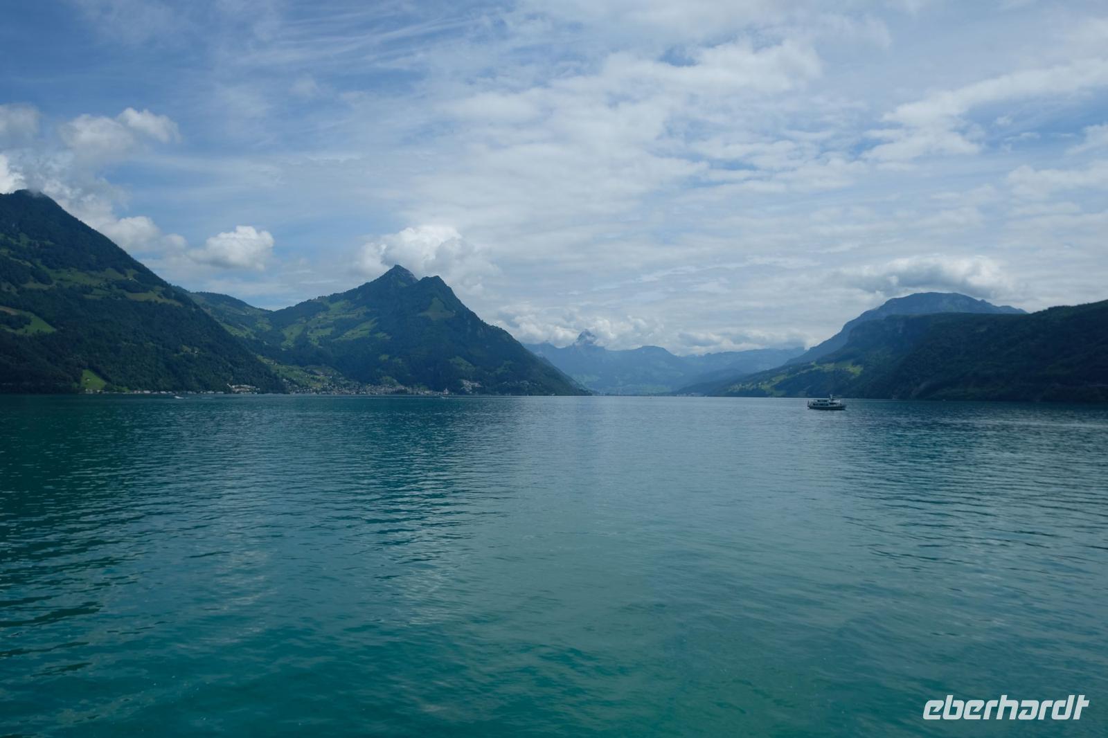 Zunächst fuhren wir wieder bei Sonnenschein nach Luzern. Von hier aus ging es mit dem nostalgischen Raddampfer „Uri" über den sonnenüberfluteten Vierwaldstätter See bis Vitznau. Vom Wasser aus bestaunten wir das Bergpanorama um uns. Gut zu sehen waren die Rigi, der Pilatus, das Stanserhorn sowie der Bürgenstock. In Vitznau stiegen wir um in die Vitznau-Rigi-Bahn und erklommen die Königin der Berge. Der historische Zug windet sich mit der Dampflok ganz gemächlich durch Wälder und Wiesen und bringt uns auf die Rigi in 1.800 m Höhe. Wir konnten eine fantastische Sicht auf die Zentralschweizer Seen und die Berge der Berner Alpen geniesen. Nach dem wir den Ausblick ausgiebig in uns aufgenommen hatten, fuhren wir mit dem elektrisierten Zug über Rigi-Staffelhöhe und Rigi-Kaltbad zurück nach Vitznau. Die Busrückfahrt erfolgte immer entlang des Seeufers bis nach Küssnacht. Hier begaben wir uns auf die Spuren von Wilhelm Tell und legten einen kleinen Zwischenstopp an der Hohlen Gasse ein. Weiter entlang des Sees hielten wir nochmals kurz an der Astrid-Kapelle und erreichten Luzern. Im Hotel wartete wieder ein schmackhaftes Abendessen auf uns.