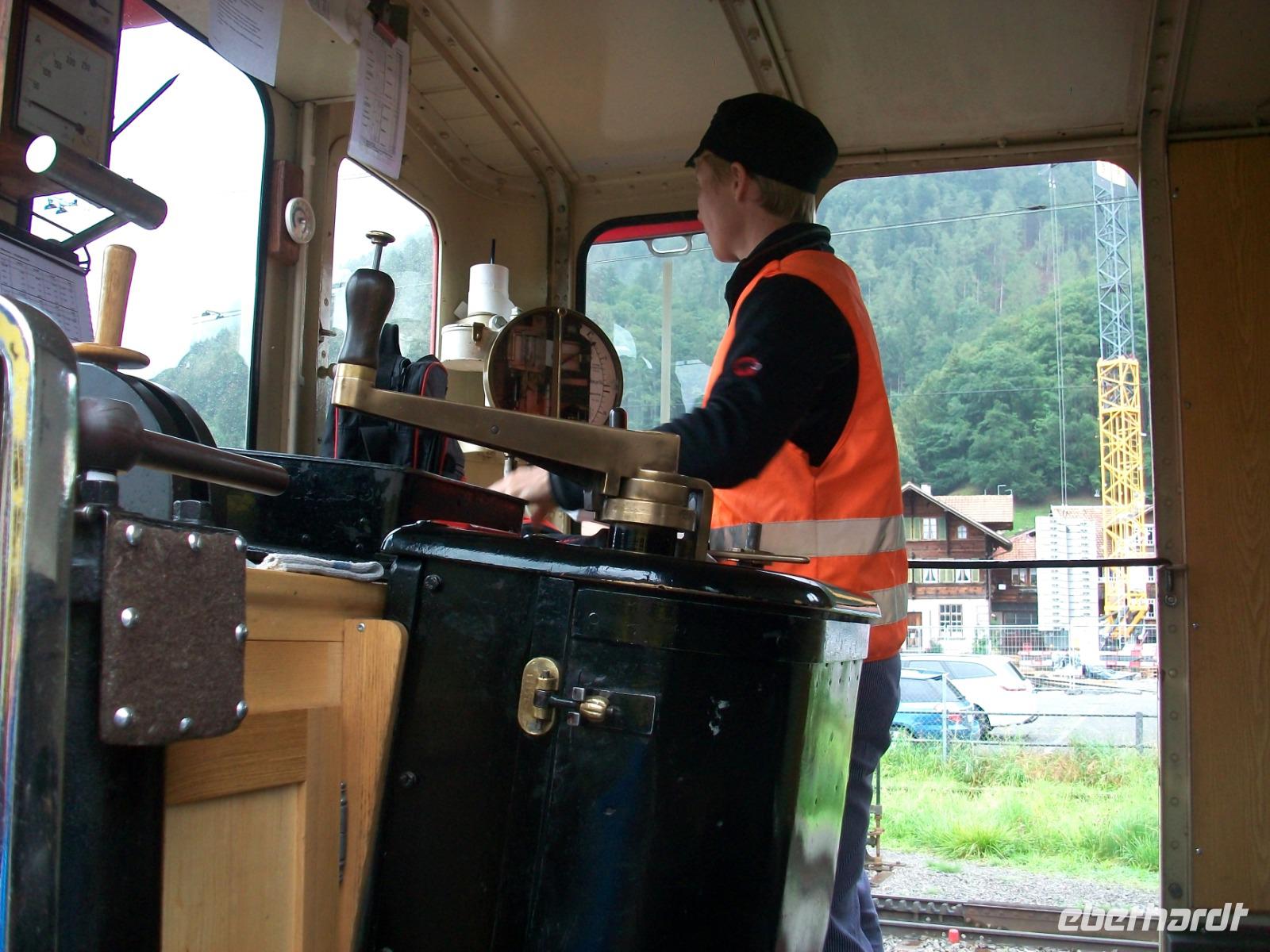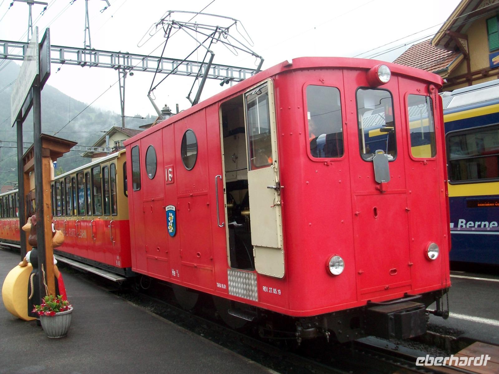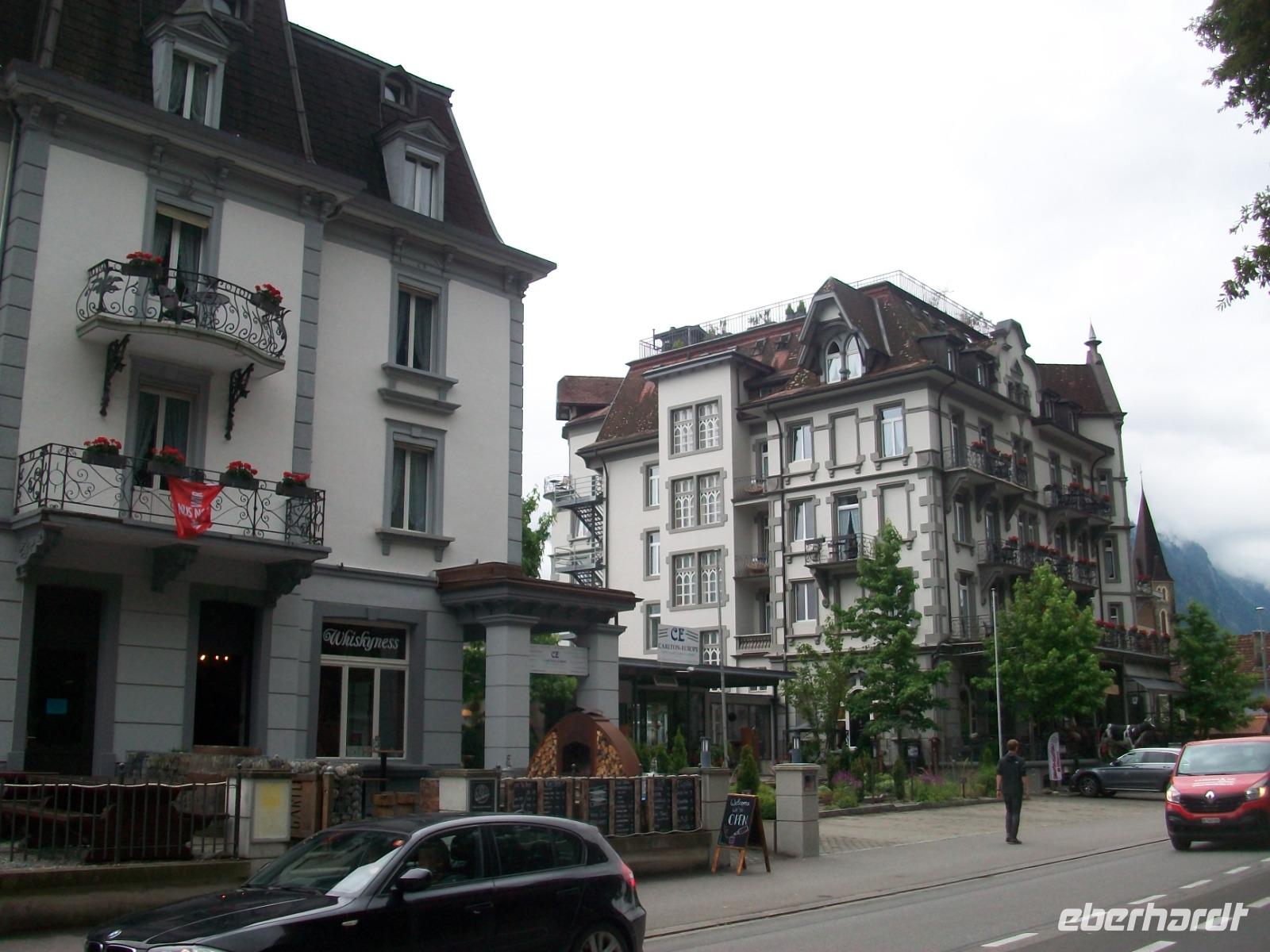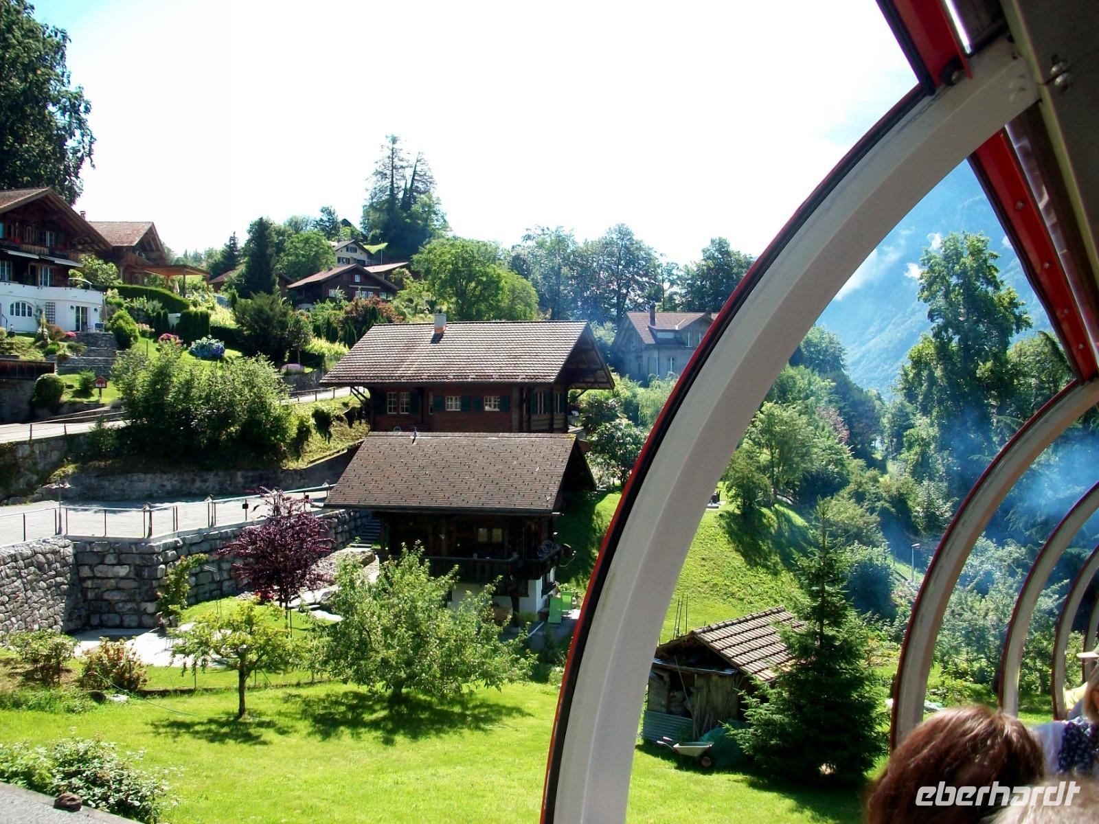 3.7.2020. Leider hat der Wetterbericht rechtbehalten: Ein Tief hat uns am heutigen Tag im Griff. Noch gestern weckte uns die Morgensonne, heute hängen bleigraue und regenschwere Wolken über dem Tal und an den Bergen. Dennoch lassen wir uns davon nicht beeindrucken und starten zu einem weiteren Höhepunkt unserer Tour. Erneut führt uns der Weg über den Brünigpass und hinunter zum Brienzer See um, nach kurzer Fahrt an Interlaken vorbei, den kleinen Ort Wilderswil zu erreichen. Wir sind etwas eher da damit sich die Eisenbahnfreunde mit der Technik der Bahn beschäftigen und auch einen Blick ins Depot hinein werfen können. Aber das Wetter wird leider nicht besser; dennoch freuen wir uns auf die Bergfahrt die uns ein weiteres Mal zeigt, was die Ingenieure der Schweiz zur damaligen Zeit geleistet haben. Es geht mithilfe der Zahnradtechnik steil bergan, der dichte Baumbestand weicht der hochalpinen Flora und, oben auf rund 2 000 Metern angelangt, sind wir direkt in den Wolken. Aber es regnet nicht, wenn auch ein kalter Wind durch die Sachen dringt; einen Höhepunkt schauen wir uns hier oben dennoch an: den Alpengarten. Fleißige Hände haben ihn angelegt, es gibt über 600 Pflanzenarten zu betrachten die alle sorgsam mit Schildern versehen wurden. Die gigantische Bergkulisse können wir zumindest auf den Bilden und Werbeplakaten bewundern, es sind die Aussichten die uns heute leider verwehrt blieben. Unsere Stimmung hat sich dadurch aber kaum eingetrübt; gegen das Wetter kann man nichts machen. Wenn es am Nachmittag auch keine Sonne gibt, wir gönnen uns dennoch, hier unten im Tal wieder bei angenehmen Temperaturen, einen Aufenthalt im Ort Interlaken der auch einiges zu bieten hat. Entlang der Höhenmatte sehen wir uns die Architektur des ausgehenden 19. Jahrhunderts an, auch an Moderne fehlt es nicht und bei einem Kaffee in einem der zahlreichen und mäßig besuchten Restaurants gönnen wir uns hier eine schöne Zeit. Die letzte schöne Impression bringt uns eine Fahrt entlang des Ufers des Brienzer Sees, wir bewundern die alten Häuser des Oberlandes und sehen auch die Holzschnitzkunst für welche besonders der Ort Brienz weltberühmt ist.