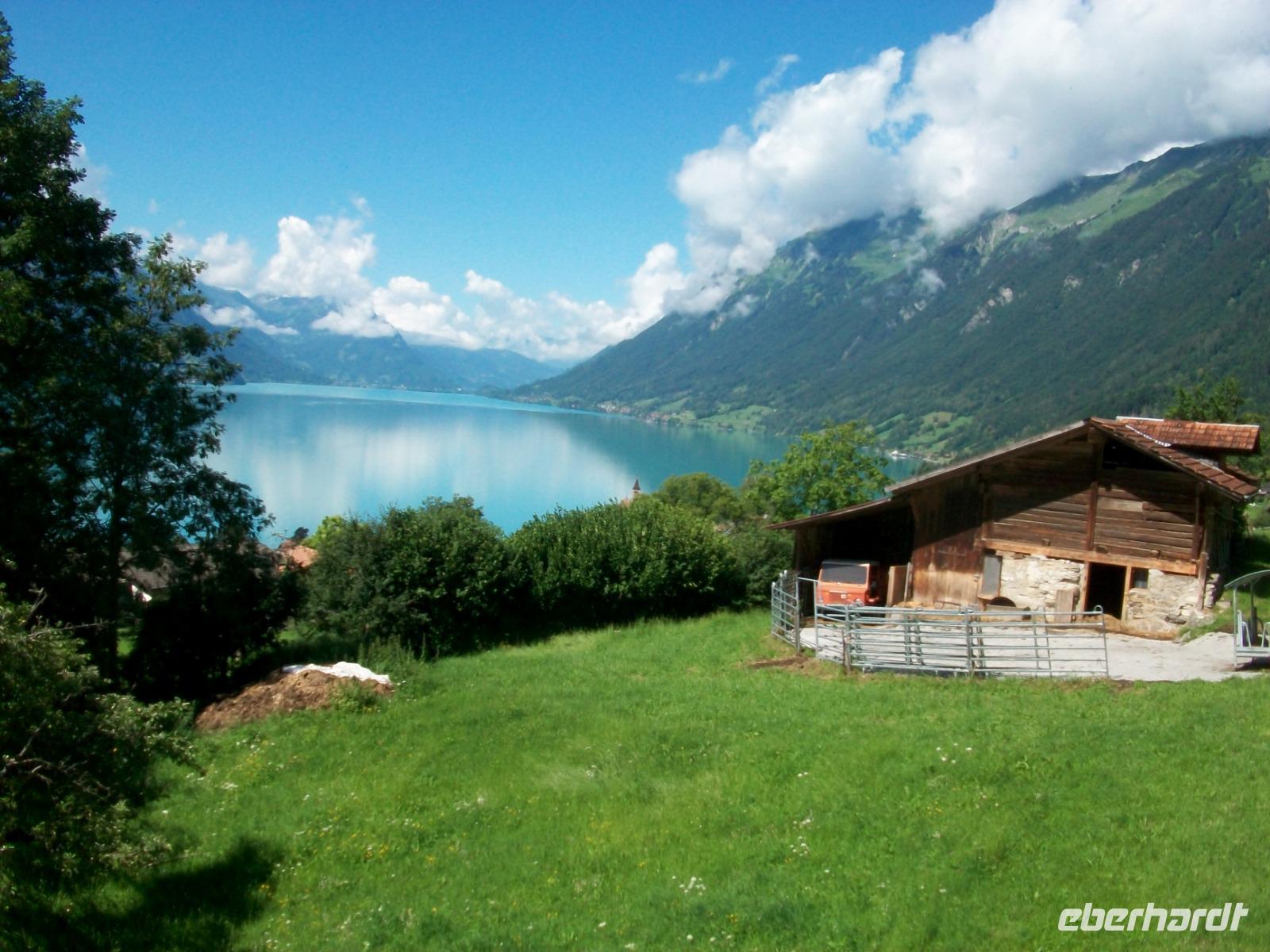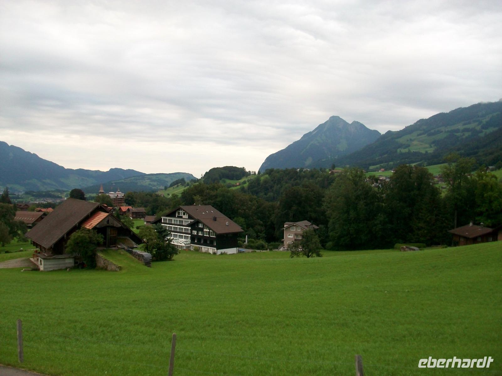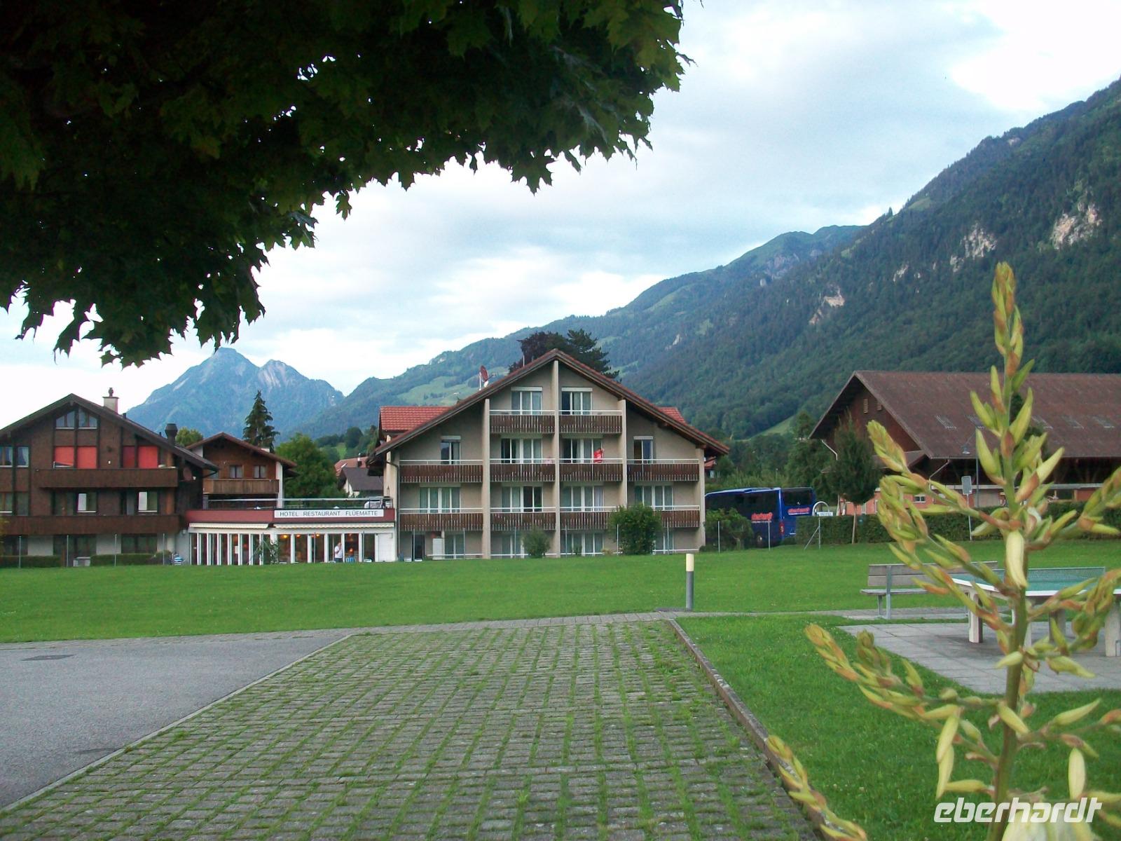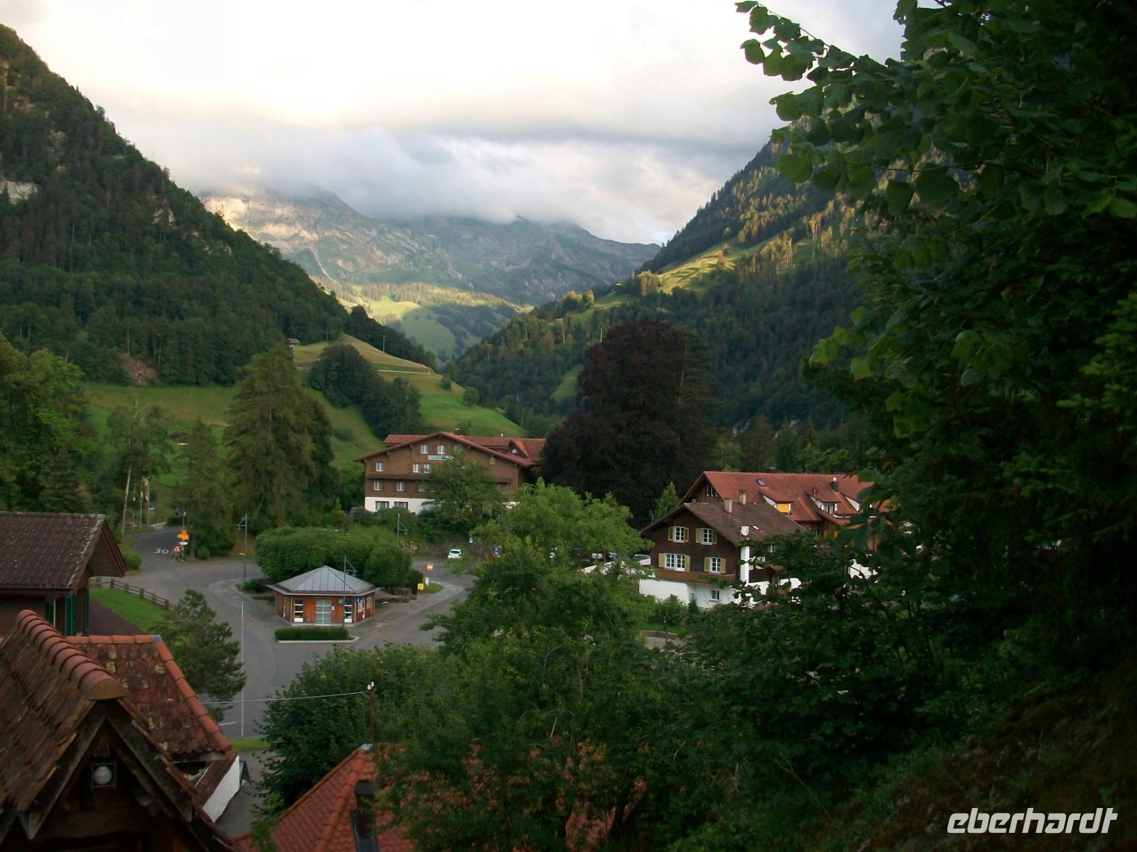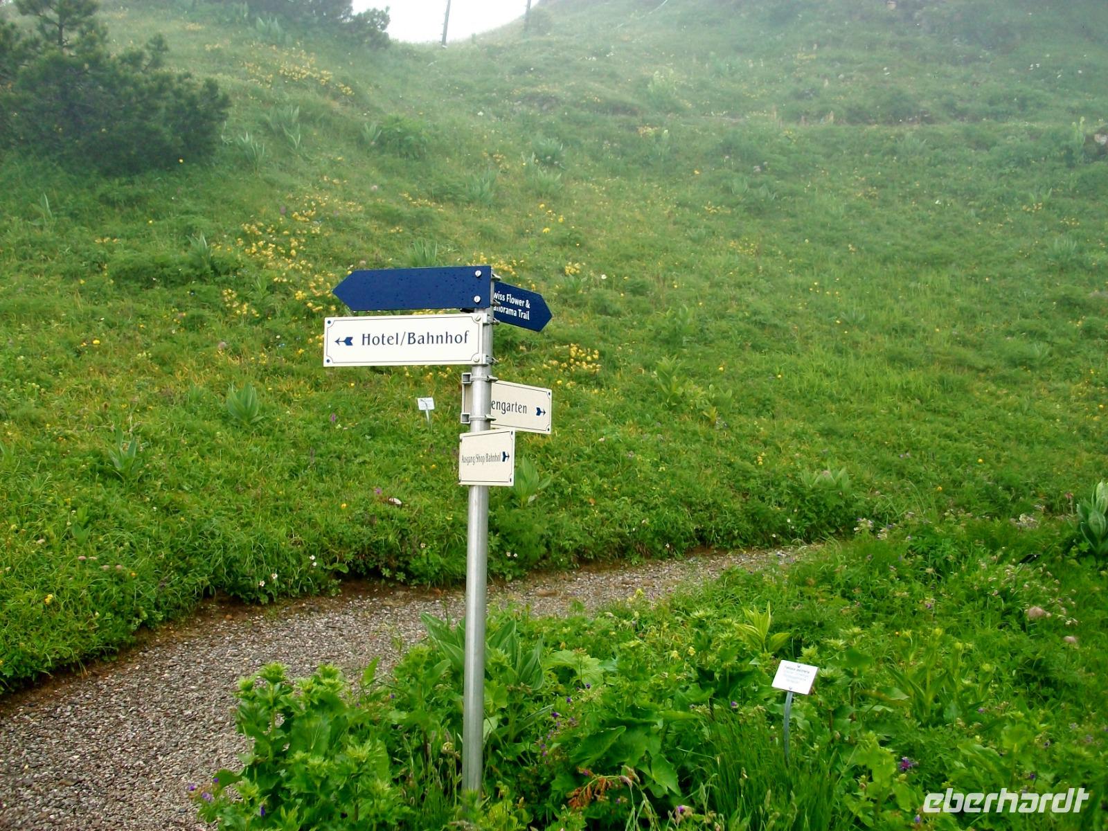 3.7.2020. Leider hat der Wetterbericht rechtbehalten: Ein Tief hat uns am heutigen Tag im Griff. Noch gestern weckte uns die Morgensonne, heute hängen bleigraue und regenschwere Wolken über dem Tal und an den Bergen. Dennoch lassen wir uns davon nicht beeindrucken und starten zu einem weiteren Höhepunkt unserer Tour. Erneut führt uns der Weg über den Brünigpass und hinunter zum Brienzer See um, nach kurzer Fahrt an Interlaken vorbei, den kleinen Ort Wilderswil zu erreichen. Wir sind etwas eher da damit sich die Eisenbahnfreunde mit der Technik der Bahn beschäftigen und auch einen Blick ins Depot hinein werfen können. Aber das Wetter wird leider nicht besser; dennoch freuen wir uns auf die Bergfahrt die uns ein weiteres Mal zeigt, was die Ingenieure der Schweiz zur damaligen Zeit geleistet haben. Es geht mithilfe der Zahnradtechnik steil bergan, der dichte Baumbestand weicht der hochalpinen Flora und, oben auf rund 2 000 Metern angelangt, sind wir direkt in den Wolken. Aber es regnet nicht, wenn auch ein kalter Wind durch die Sachen dringt; einen Höhepunkt schauen wir uns hier oben dennoch an: den Alpengarten. Fleißige Hände haben ihn angelegt, es gibt über 600 Pflanzenarten zu betrachten die alle sorgsam mit Schildern versehen wurden. Die gigantische Bergkulisse können wir zumindest auf den Bilden und Werbeplakaten bewundern, es sind die Aussichten die uns heute leider verwehrt blieben. Unsere Stimmung hat sich dadurch aber kaum eingetrübt; gegen das Wetter kann man nichts machen. Wenn es am Nachmittag auch keine Sonne gibt, wir gönnen uns dennoch, hier unten im Tal wieder bei angenehmen Temperaturen, einen Aufenthalt im Ort Interlaken der auch einiges zu bieten hat. Entlang der Höhenmatte sehen wir uns die Architektur des ausgehenden 19. Jahrhunderts an, auch an Moderne fehlt es nicht und bei einem Kaffee in einem der zahlreichen und mäßig besuchten Restaurants gönnen wir uns hier eine schöne Zeit. Die letzte schöne Impression bringt uns eine Fahrt entlang des Ufers des Brienzer Sees, wir bewundern die alten Häuser des Oberlandes und sehen auch die Holzschnitzkunst für welche besonders der Ort Brienz weltberühmt ist.