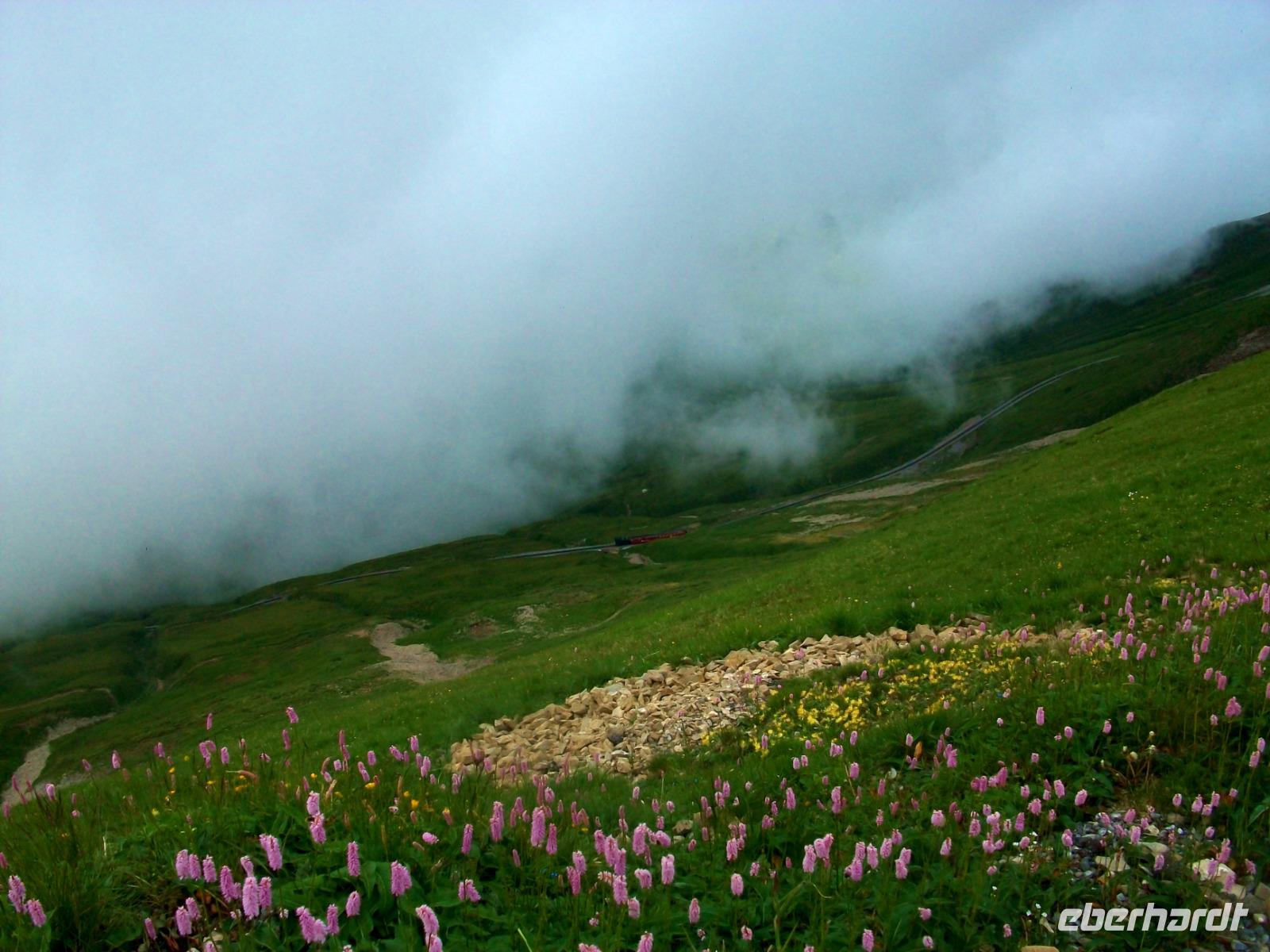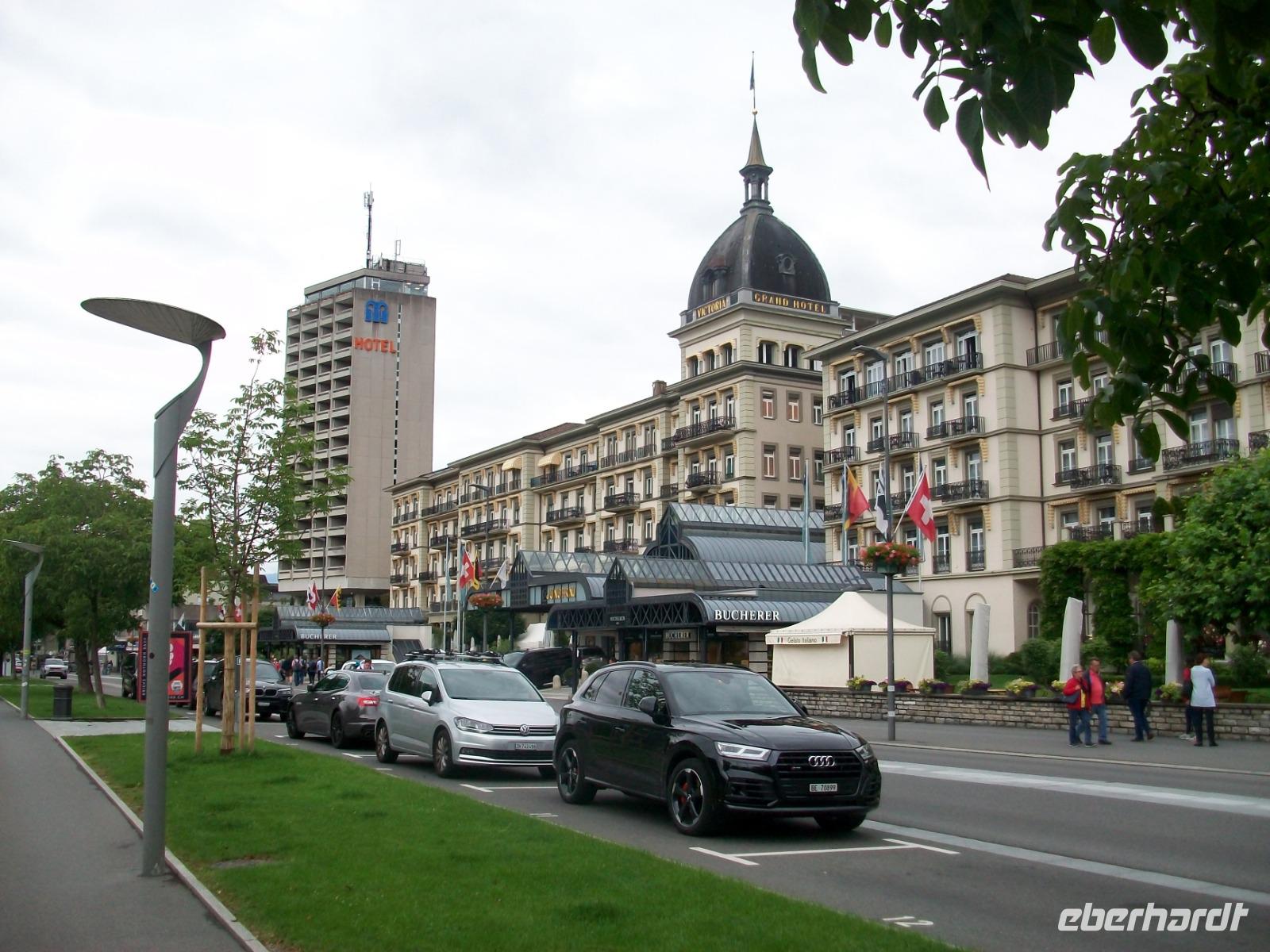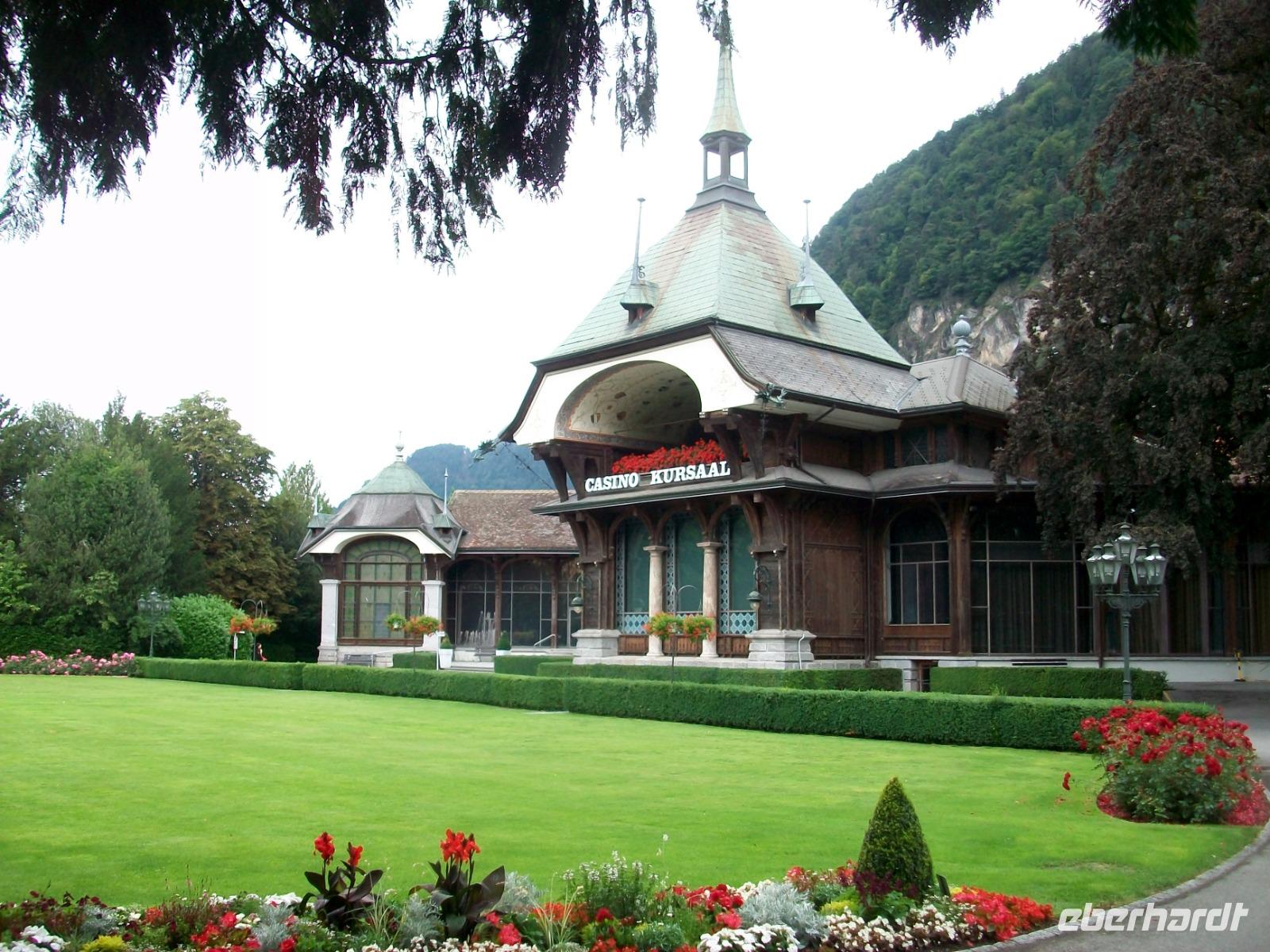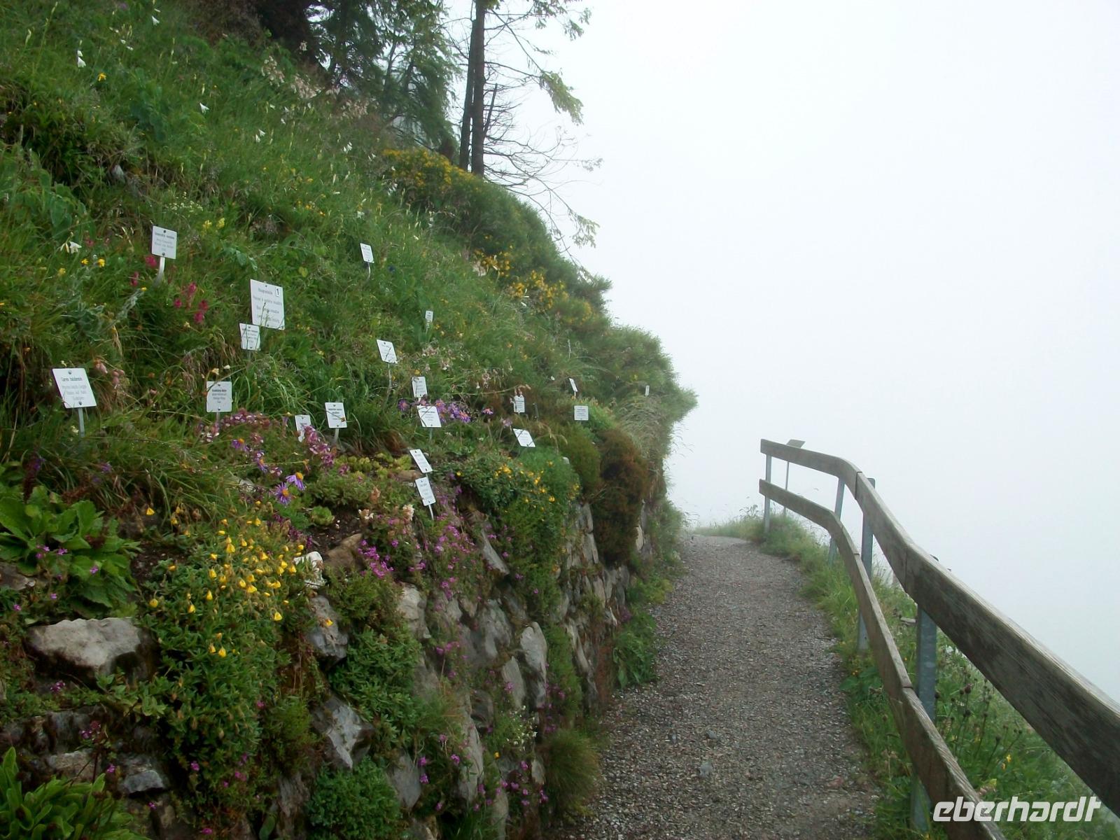 3.7.2020. Leider hat der Wetterbericht rechtbehalten: Ein Tief hat uns am heutigen Tag im Griff. Noch gestern weckte uns die Morgensonne, heute hängen bleigraue und regenschwere Wolken über dem Tal und an den Bergen. Dennoch lassen wir uns davon nicht beeindrucken und starten zu einem weiteren Höhepunkt unserer Tour. Erneut führt uns der Weg über den Brünigpass und hinunter zum Brienzer See um, nach kurzer Fahrt an Interlaken vorbei, den kleinen Ort Wilderswil zu erreichen. Wir sind etwas eher da damit sich die Eisenbahnfreunde mit der Technik der Bahn beschäftigen und auch einen Blick ins Depot hinein werfen können. Aber das Wetter wird leider nicht besser; dennoch freuen wir uns auf die Bergfahrt die uns ein weiteres Mal zeigt, was die Ingenieure der Schweiz zur damaligen Zeit geleistet haben. Es geht mithilfe der Zahnradtechnik steil bergan, der dichte Baumbestand weicht der hochalpinen Flora und, oben auf rund 2 000 Metern angelangt, sind wir direkt in den Wolken. Aber es regnet nicht, wenn auch ein kalter Wind durch die Sachen dringt; einen Höhepunkt schauen wir uns hier oben dennoch an: den Alpengarten. Fleißige Hände haben ihn angelegt, es gibt über 600 Pflanzenarten zu betrachten die alle sorgsam mit Schildern versehen wurden. Die gigantische Bergkulisse können wir zumindest auf den Bilden und Werbeplakaten bewundern, es sind die Aussichten die uns heute leider verwehrt blieben. Unsere Stimmung hat sich dadurch aber kaum eingetrübt; gegen das Wetter kann man nichts machen. Wenn es am Nachmittag auch keine Sonne gibt, wir gönnen uns dennoch, hier unten im Tal wieder bei angenehmen Temperaturen, einen Aufenthalt im Ort Interlaken der auch einiges zu bieten hat. Entlang der Höhenmatte sehen wir uns die Architektur des ausgehenden 19. Jahrhunderts an, auch an Moderne fehlt es nicht und bei einem Kaffee in einem der zahlreichen und mäßig besuchten Restaurants gönnen wir uns hier eine schöne Zeit. Die letzte schöne Impression bringt uns eine Fahrt entlang des Ufers des Brienzer Sees, wir bewundern die alten Häuser des Oberlandes und sehen auch die Holzschnitzkunst für welche besonders der Ort Brienz weltberühmt ist.