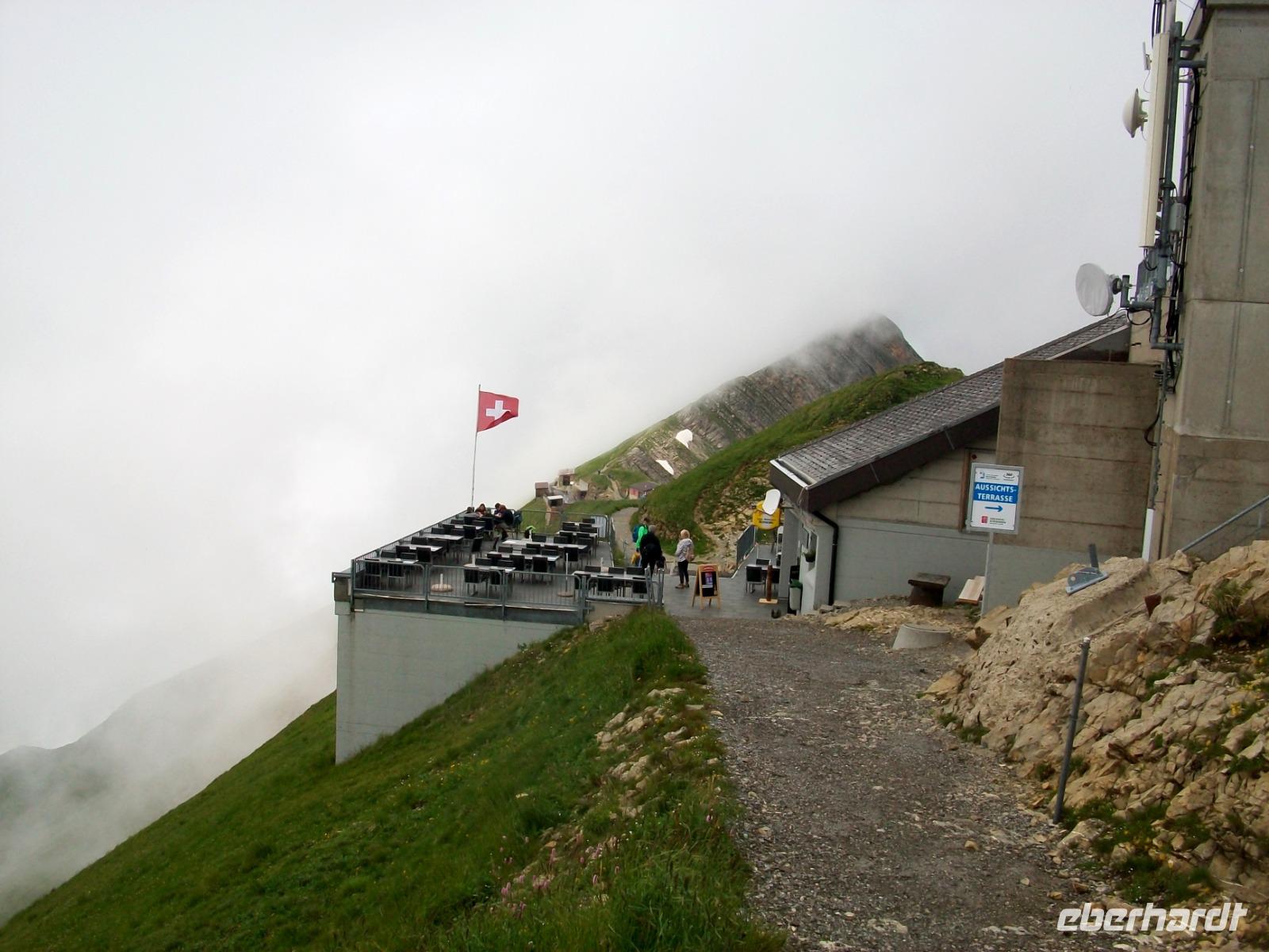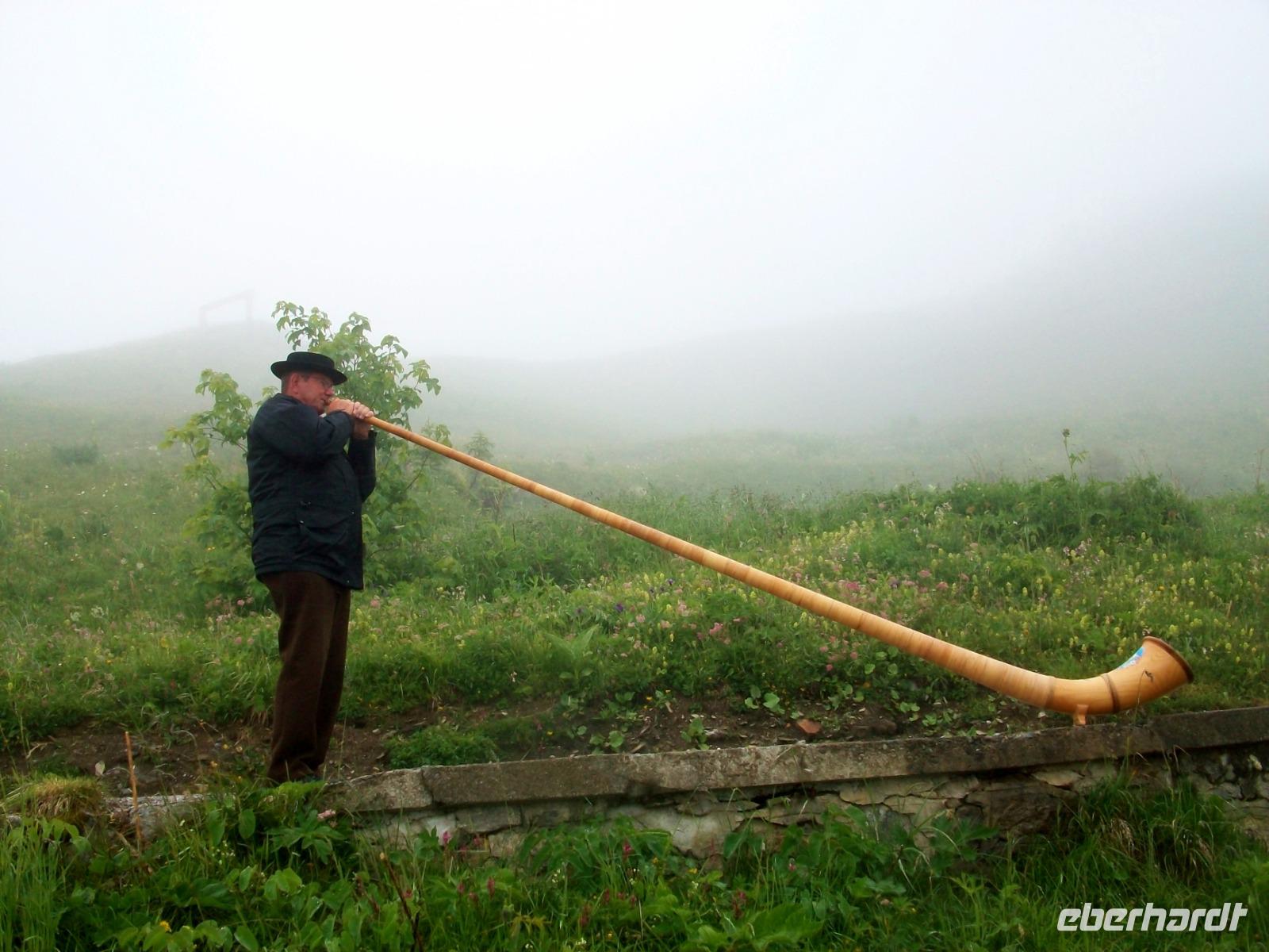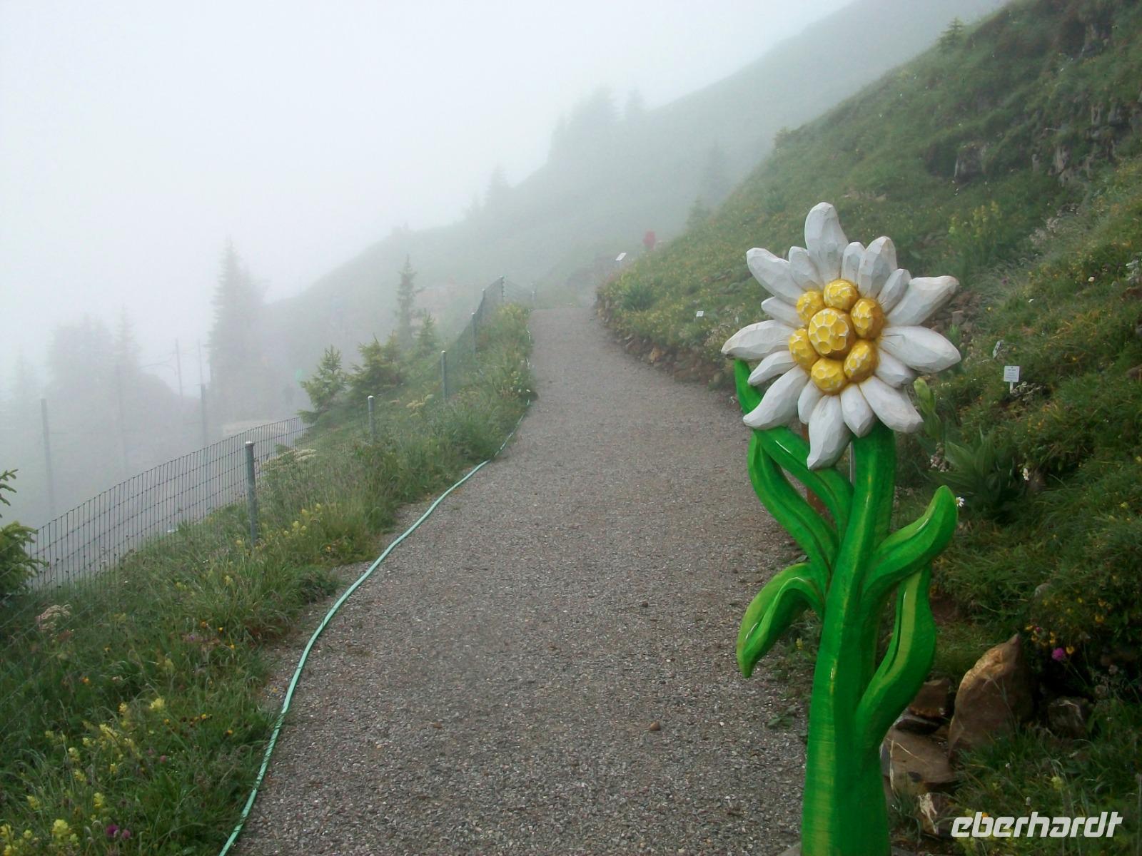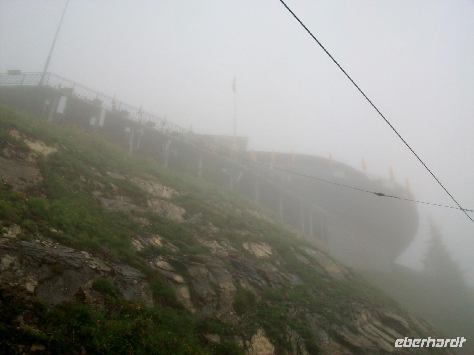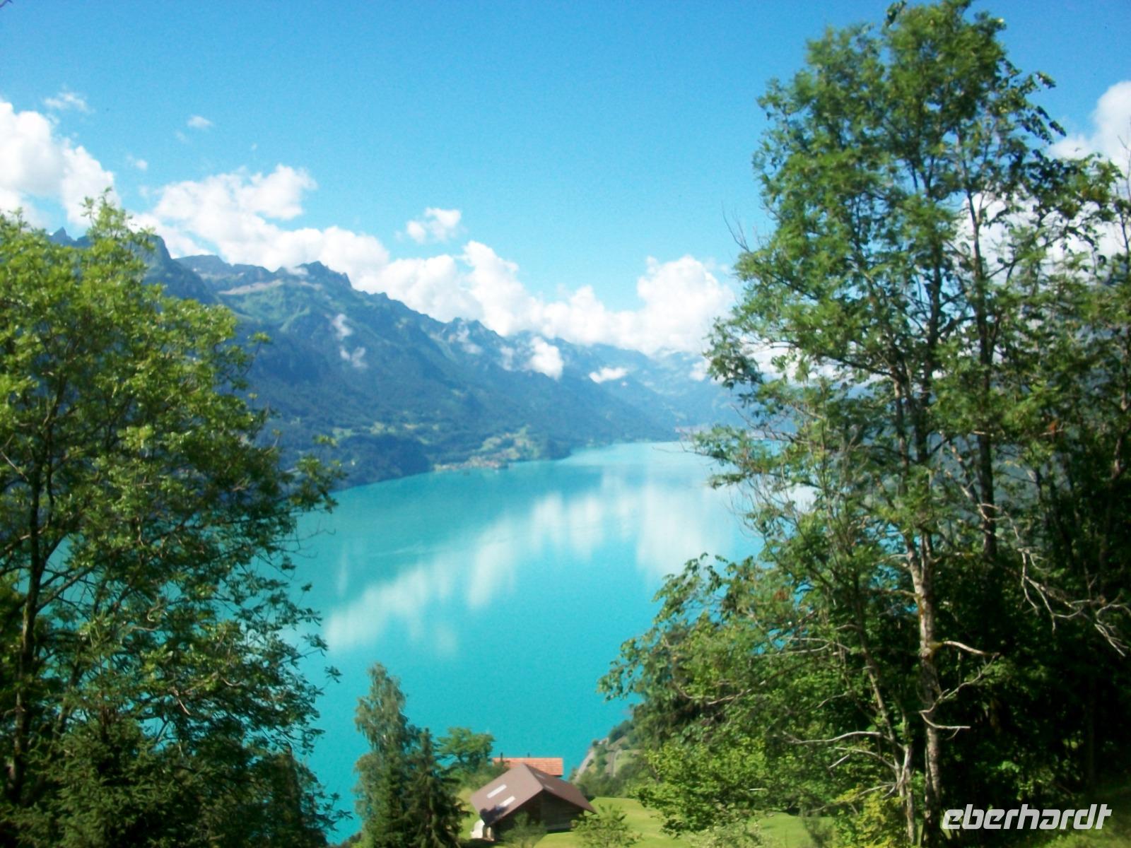 3.7.2020. Leider hat der Wetterbericht rechtbehalten: Ein Tief hat uns am heutigen Tag im Griff. Noch gestern weckte uns die Morgensonne, heute hängen bleigraue und regenschwere Wolken über dem Tal und an den Bergen. Dennoch lassen wir uns davon nicht beeindrucken und starten zu einem weiteren Höhepunkt unserer Tour. Erneut führt uns der Weg über den Brünigpass und hinunter zum Brienzer See um, nach kurzer Fahrt an Interlaken vorbei, den kleinen Ort Wilderswil zu erreichen. Wir sind etwas eher da damit sich die Eisenbahnfreunde mit der Technik der Bahn beschäftigen und auch einen Blick ins Depot hinein werfen können. Aber das Wetter wird leider nicht besser; dennoch freuen wir uns auf die Bergfahrt die uns ein weiteres Mal zeigt, was die Ingenieure der Schweiz zur damaligen Zeit geleistet haben. Es geht mithilfe der Zahnradtechnik steil bergan, der dichte Baumbestand weicht der hochalpinen Flora und, oben auf rund 2 000 Metern angelangt, sind wir direkt in den Wolken. Aber es regnet nicht, wenn auch ein kalter Wind durch die Sachen dringt; einen Höhepunkt schauen wir uns hier oben dennoch an: den Alpengarten. Fleißige Hände haben ihn angelegt, es gibt über 600 Pflanzenarten zu betrachten die alle sorgsam mit Schildern versehen wurden. Die gigantische Bergkulisse können wir zumindest auf den Bilden und Werbeplakaten bewundern, es sind die Aussichten die uns heute leider verwehrt blieben. Unsere Stimmung hat sich dadurch aber kaum eingetrübt; gegen das Wetter kann man nichts machen. Wenn es am Nachmittag auch keine Sonne gibt, wir gönnen uns dennoch, hier unten im Tal wieder bei angenehmen Temperaturen, einen Aufenthalt im Ort Interlaken der auch einiges zu bieten hat. Entlang der Höhenmatte sehen wir uns die Architektur des ausgehenden 19. Jahrhunderts an, auch an Moderne fehlt es nicht und bei einem Kaffee in einem der zahlreichen und mäßig besuchten Restaurants gönnen wir uns hier eine schöne Zeit. Die letzte schöne Impression bringt uns eine Fahrt entlang des Ufers des Brienzer Sees, wir bewundern die alten Häuser des Oberlandes und sehen auch die Holzschnitzkunst für welche besonders der Ort Brienz weltberühmt ist.